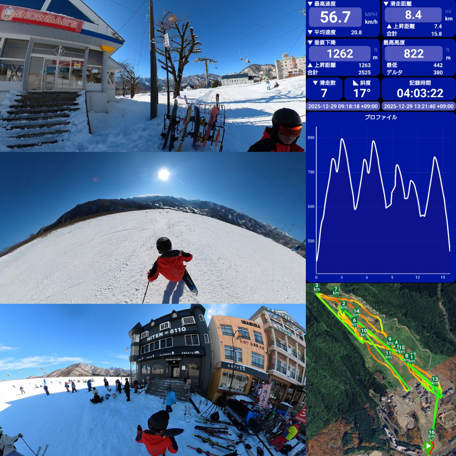 2025/12/29(月) 調べてみると、スキーしに岩原に来たのは2011年3月以来。グリーンシーズンにピットーレ来たりはありますが、シーズン中は15年振り? だだっ広゜く斜度がないので、講習向きではあるんですが。 リゾートセンター1の階段登ったら、オジキがいました。今日はSNOW MANだそうです。 全面カチカチな岩原。硬くてジャガイモだらけで、斜度は緩いのになかなか難攻する朝です。 コース幅が広いのでなんとでも滑れるのが、岩原のメリットなんですが、ただ緩い。 9時半越えてリフト待ちも出来て来ました。中央クワッドで5分ほど。今日は中腹までのコース解放で、山頂もリフト動かす気無し。 コースふさいで滑りづらいってことが無いので、そこは岩原のいいところです。そろそろ暑くなって来ました。 メインバーンのチャレンジ、ウェストから中央クワッドをリピートしてますが、どのリフトも5分~10分待ち。ダブルで掛かってるリフト線も1本運用だったりで、スクールとか団体の多い岩原は、列が伸びたり縮んだりを繰り返してます。 10℃近くまで上がってきたゲレンデ。カチカチで引っかかりまくったバーンも、10時半煮は緩...