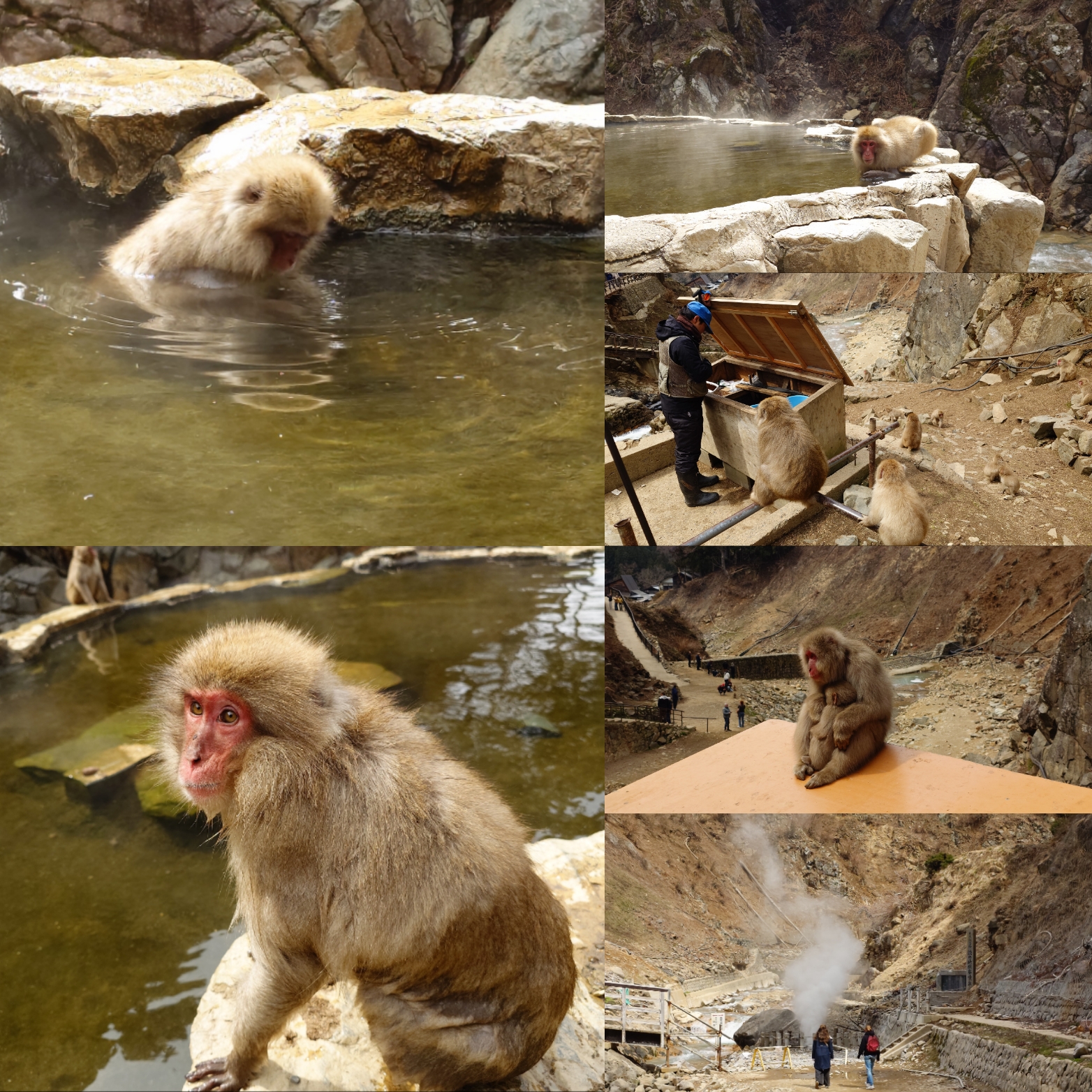 温泉に入る猿を見るのに延々歩き。ビール飲むのに延々歩き
