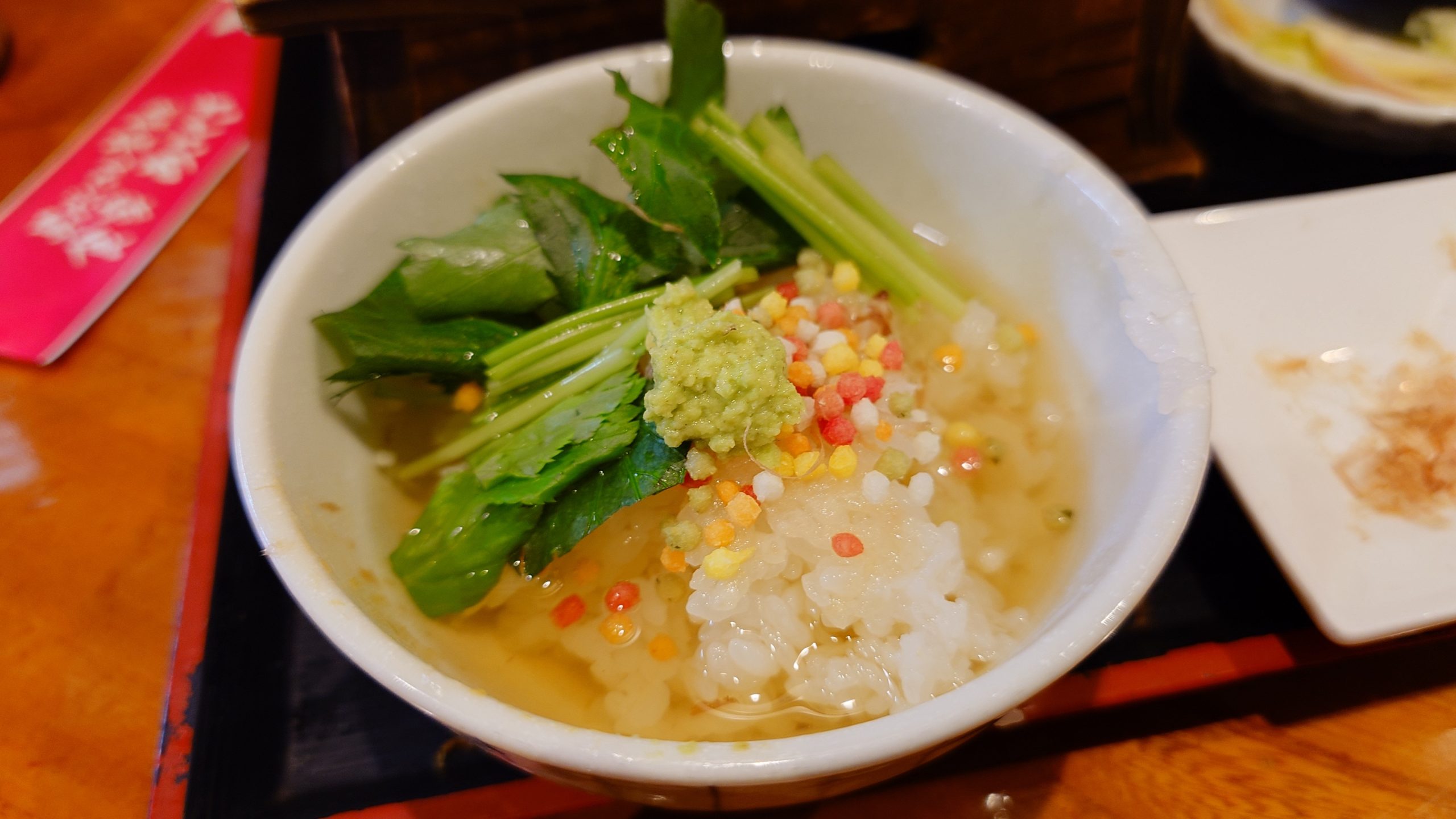 「新米」の文字が踊り、あさくさへ 公開済み 2025年10月3日 · 更新済み 2025年10月5日 湯沢の街も「新米」の文字が踊る季節になりました。こちらあさくさも。なので釜炊き白米がいただけるわさび釜飯です。つやつやきれいな炊き立てご飯をそのままで一膳。おかかで二膳。出汁茶漬けで一膳。ここのわさびがツーンと強烈で、これがまたご飯を引き立てます。最後は残したお出汁をいただいてフィニッシュ。柚子胡椒風味の十全茄子のお漬け物がまた美味しいです。