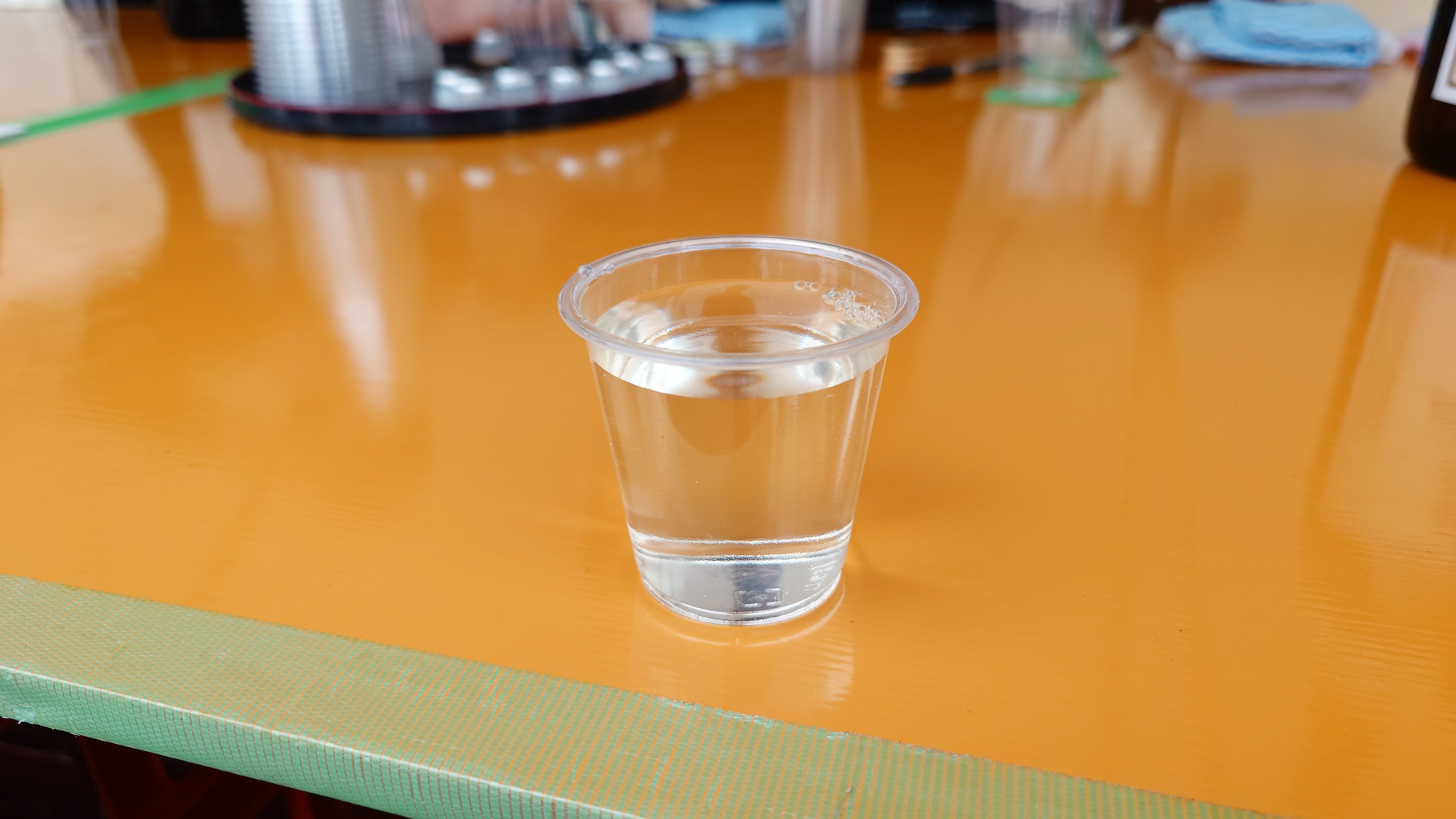 お腹もパンパンなので、新酒の量り売り純米大吟醸から。さすがにフルーティー。お猪口一杯分で200円。お得すぎる。