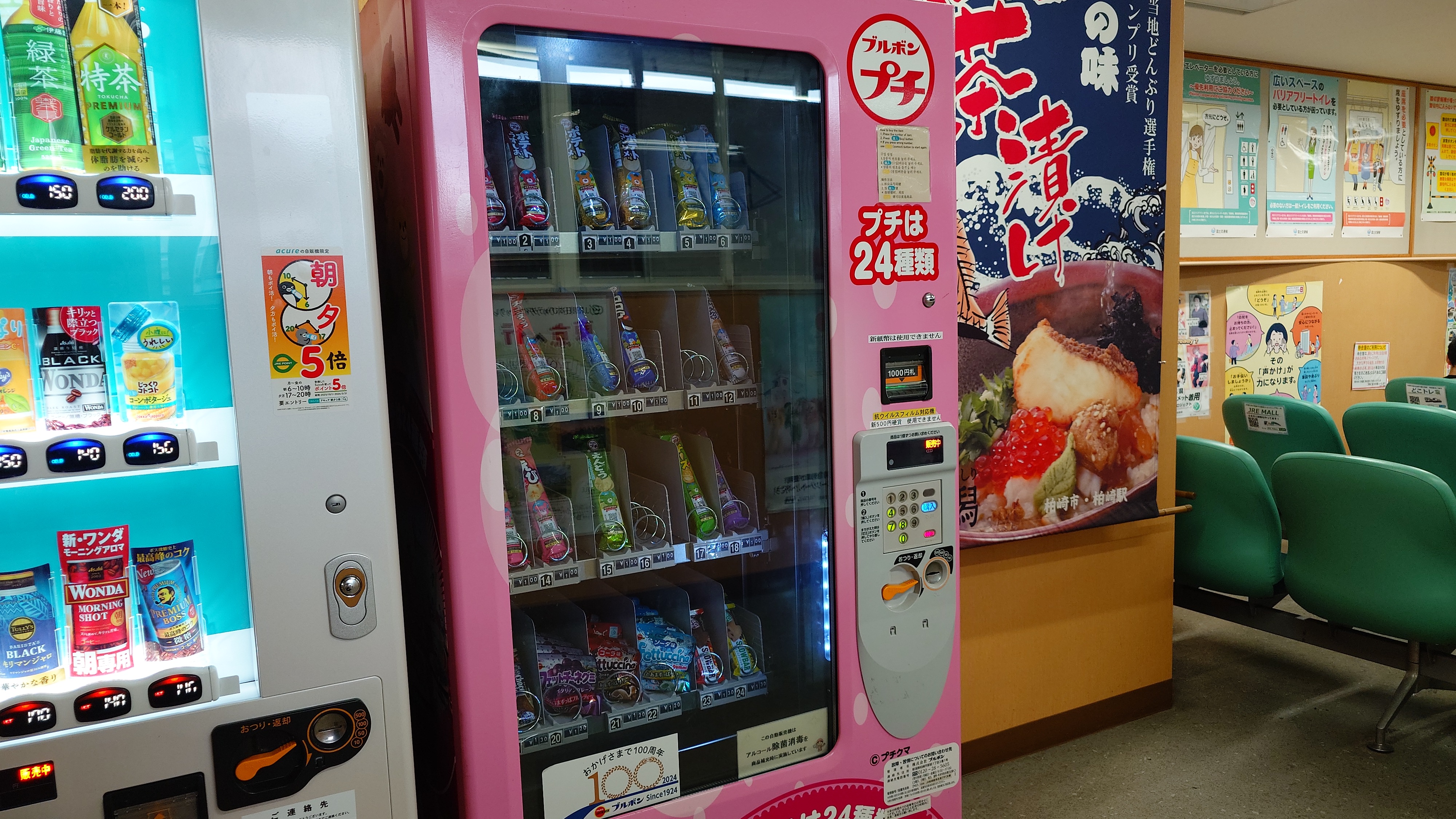 柏崎と言えばブルボン。古いデザインの駅前に聳え建つ本社ビルです。駅ナカにはプチ販売機、そりゃ置きますよね。ただ、いくつか歯ぬけ。昔なら、お膝元で歯抜けとはと営業やベンダーが叱られたものですが、最近はハラスメントとか下請け法とかで指導者しづらいのでしょうか。知らんけど。