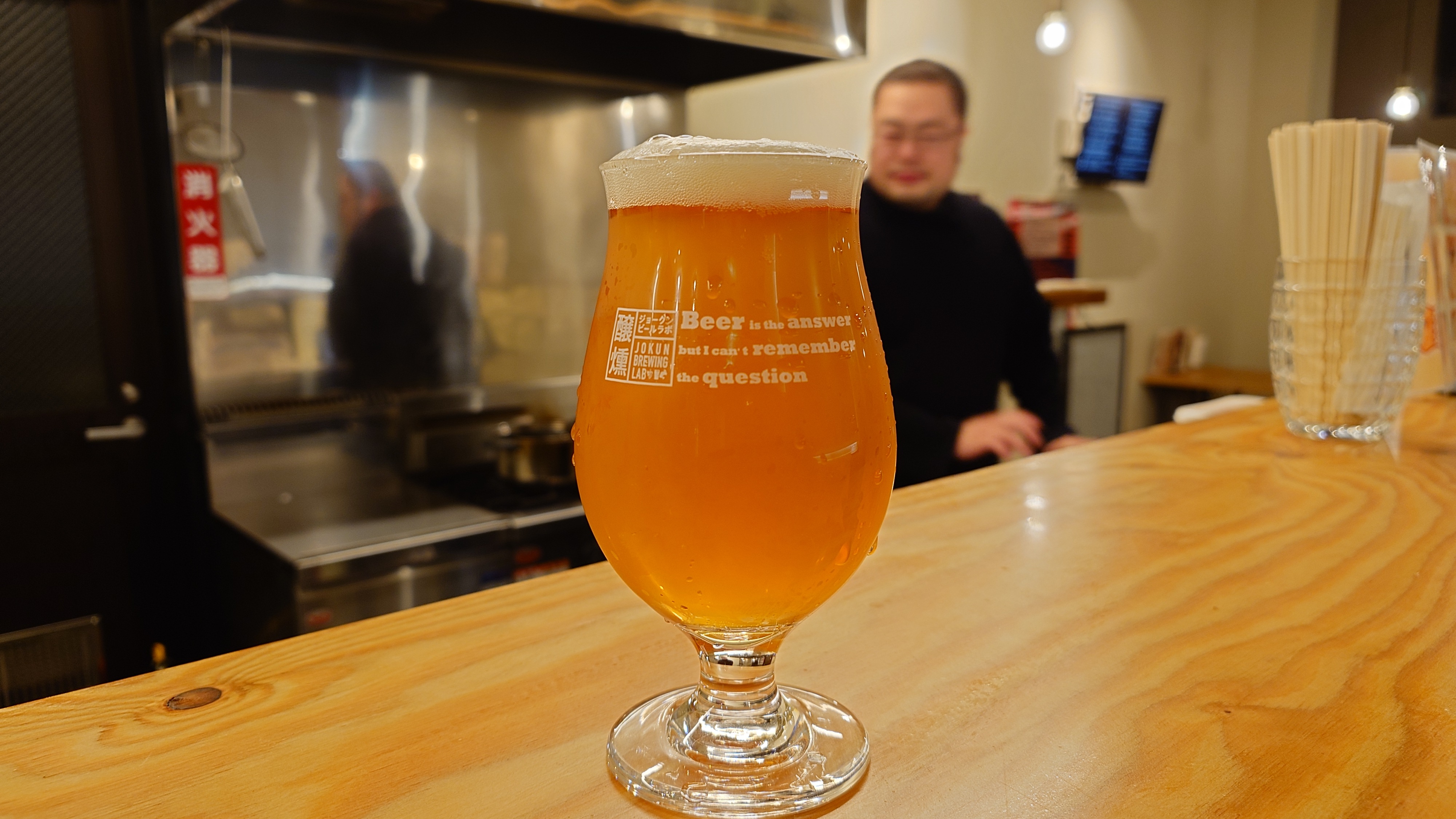 湯沢に帰ってきて、まだ6時前。開けてるはずのジョークンに行ったら、柏崎帰りでちゃんと開けてました。一杯目は酒HAZY IPA。昼の越の誉ではなく、〆張鶴の宮尾だったか?忘れました。
