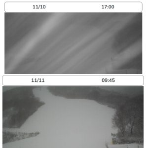 昨日夕方ぎからの降雪で、かぐらが再び雪景色に。あいにく越後湯沢の町なかは降らず、苗場ほか湯沢の各ゲレンデはまだの様です。来週半ばには冷え込み、雪っぽいのでスノーマシン回せるマイナスまで下がりそうです。11/22オープン予定ですが、今年はどうでしょう。