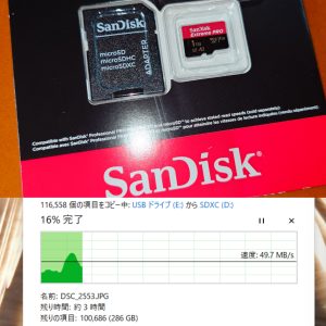 XPERIA5Vで使っているmicroSDXC512GBカードが、この数日で3回マウント外れたので、遂に1TB化。あと2週間待てばBlackFridayセールなので、安くなるのかも知れませんが、手遅れになるまでに換装を決意。10月半ばからメモリ価格が高騰し始めてますし。かなり高速なSanDisk Extreme Pro 1TBで¥17k弱でした。