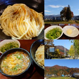 秋晴れの湯沢です。買い物もあったので、国道沿いの維新本店。アプリの季節モノがカレーだったのですが、お店に入ると越後味噌つけ麺に替わってました。ラーメンも良いけど、もちもち麺にはつけ麺ですね。