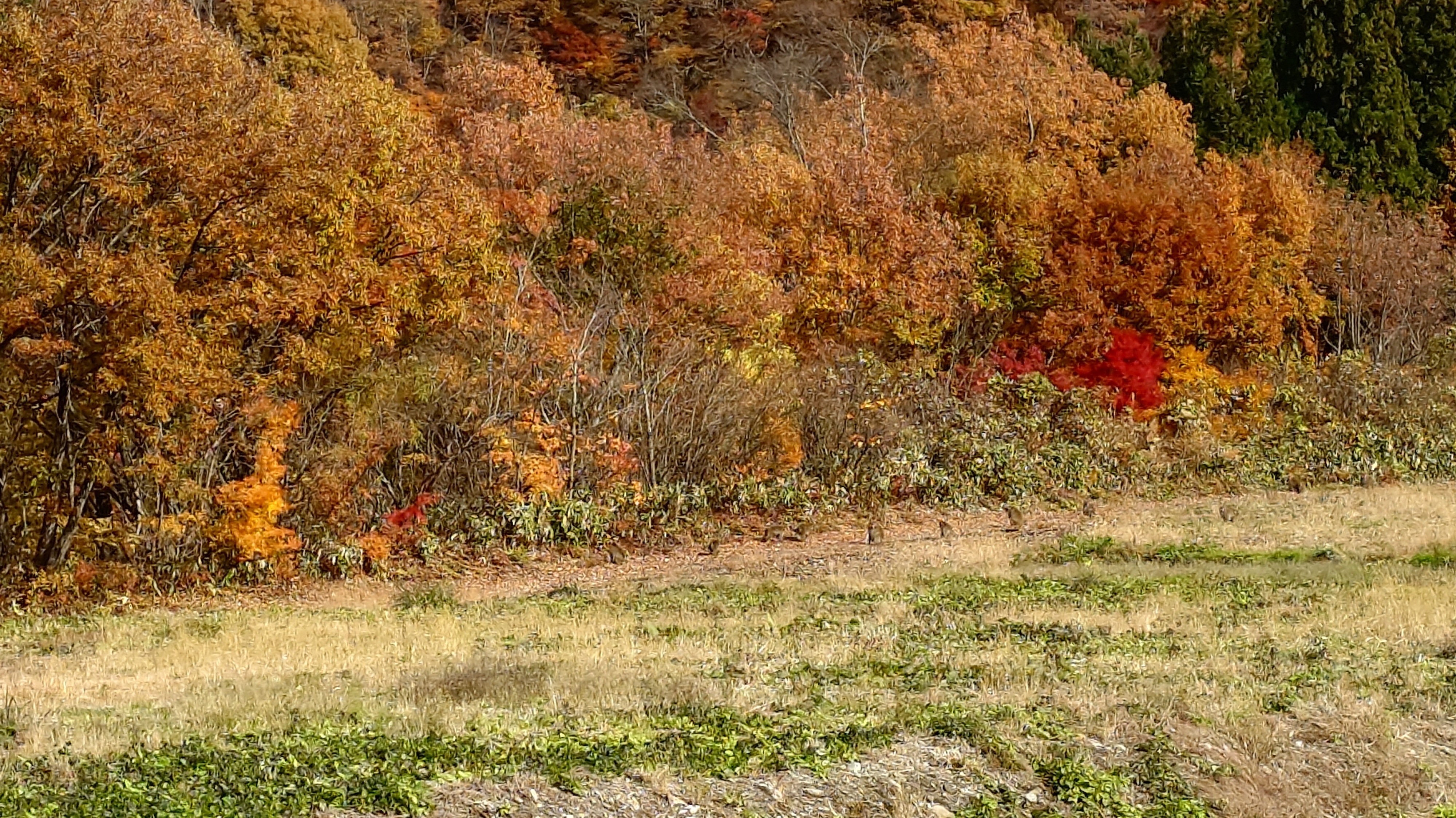 大源太に向かって旭原まで来たところで、動く集団。猿の団体様です。かなり遠くで移動してたので、まだ安全ですが、近くだと怖い。子供含めて20頭を超えていたので、絡まれたらカラーギャングより怖い輩です。