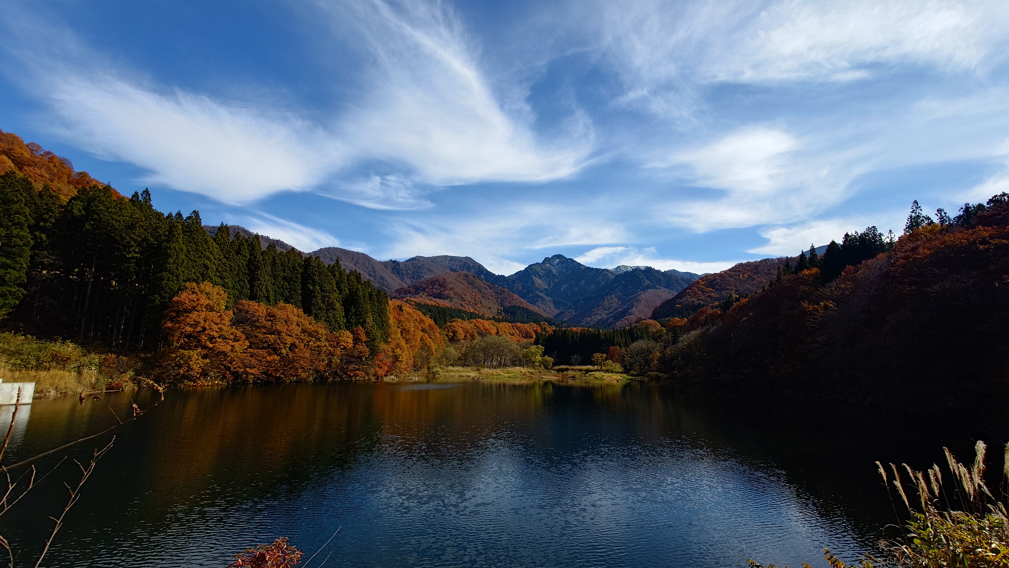 よく晴れたこの週末。下界では風も弱く、大源太湖も凪かなと来てみましたが、意外に風があってべた凪というわけにはいきませんでした。