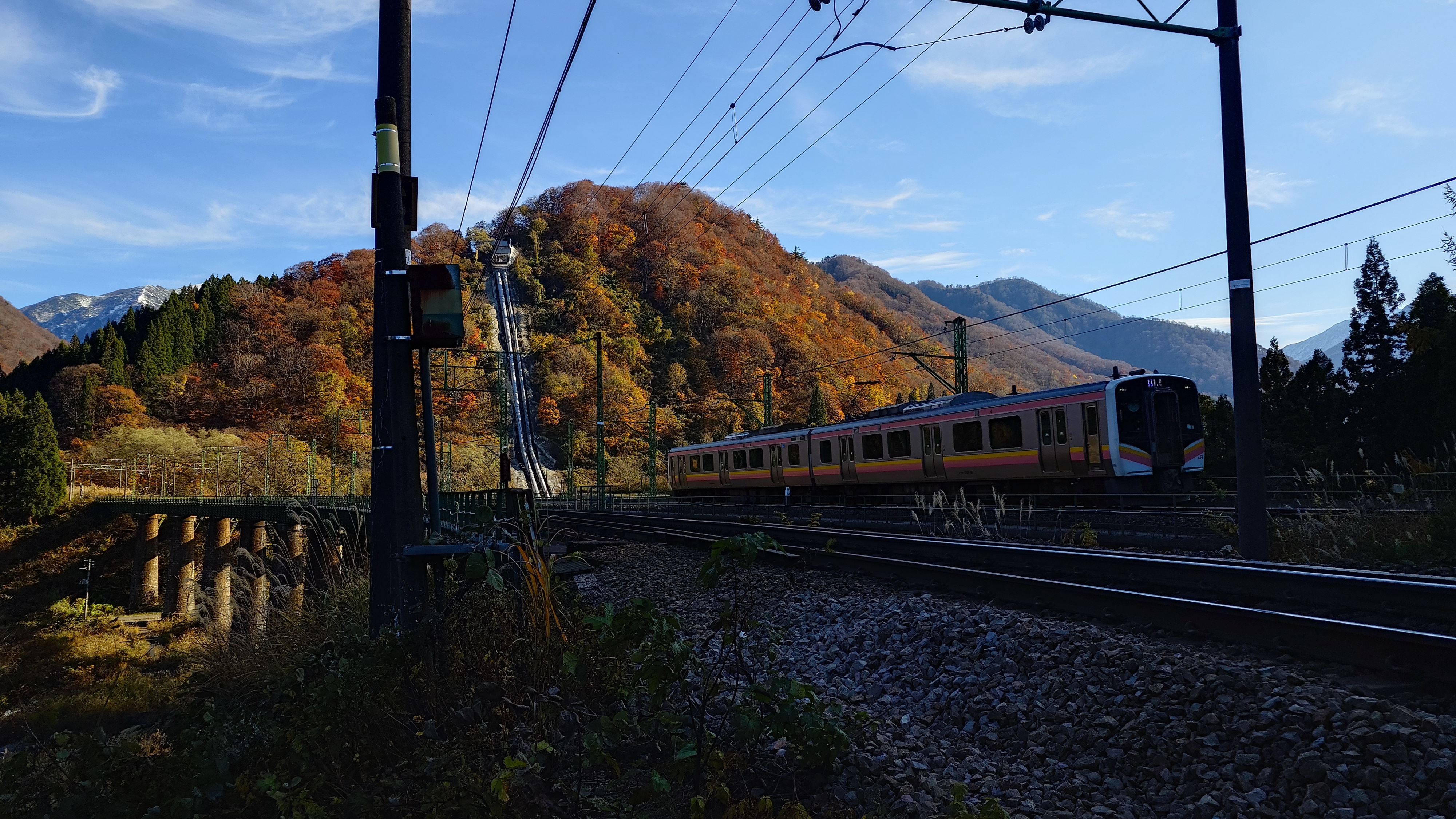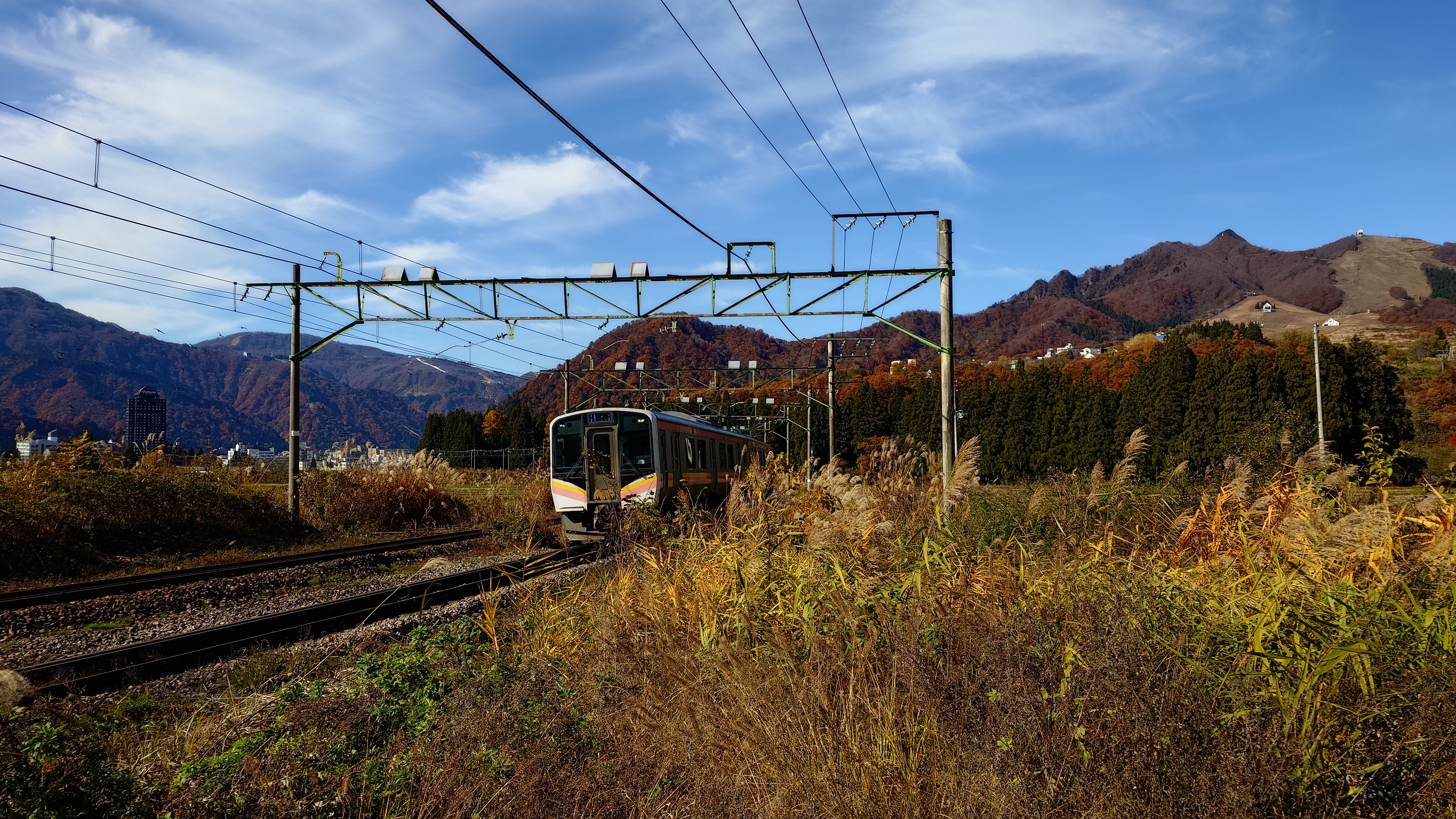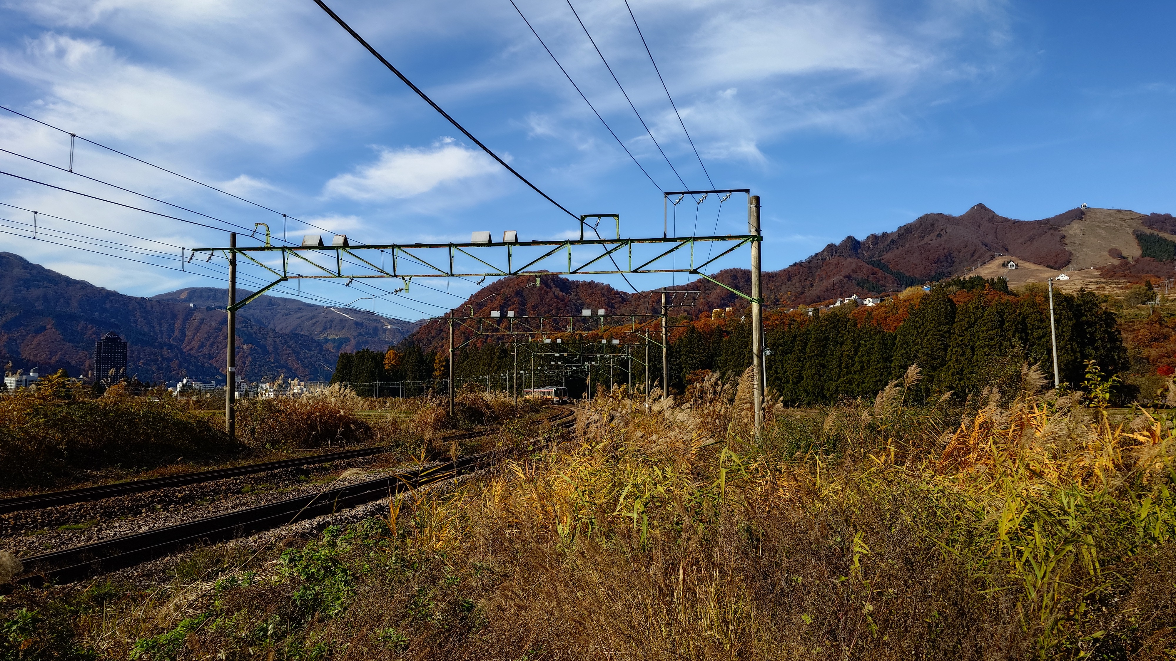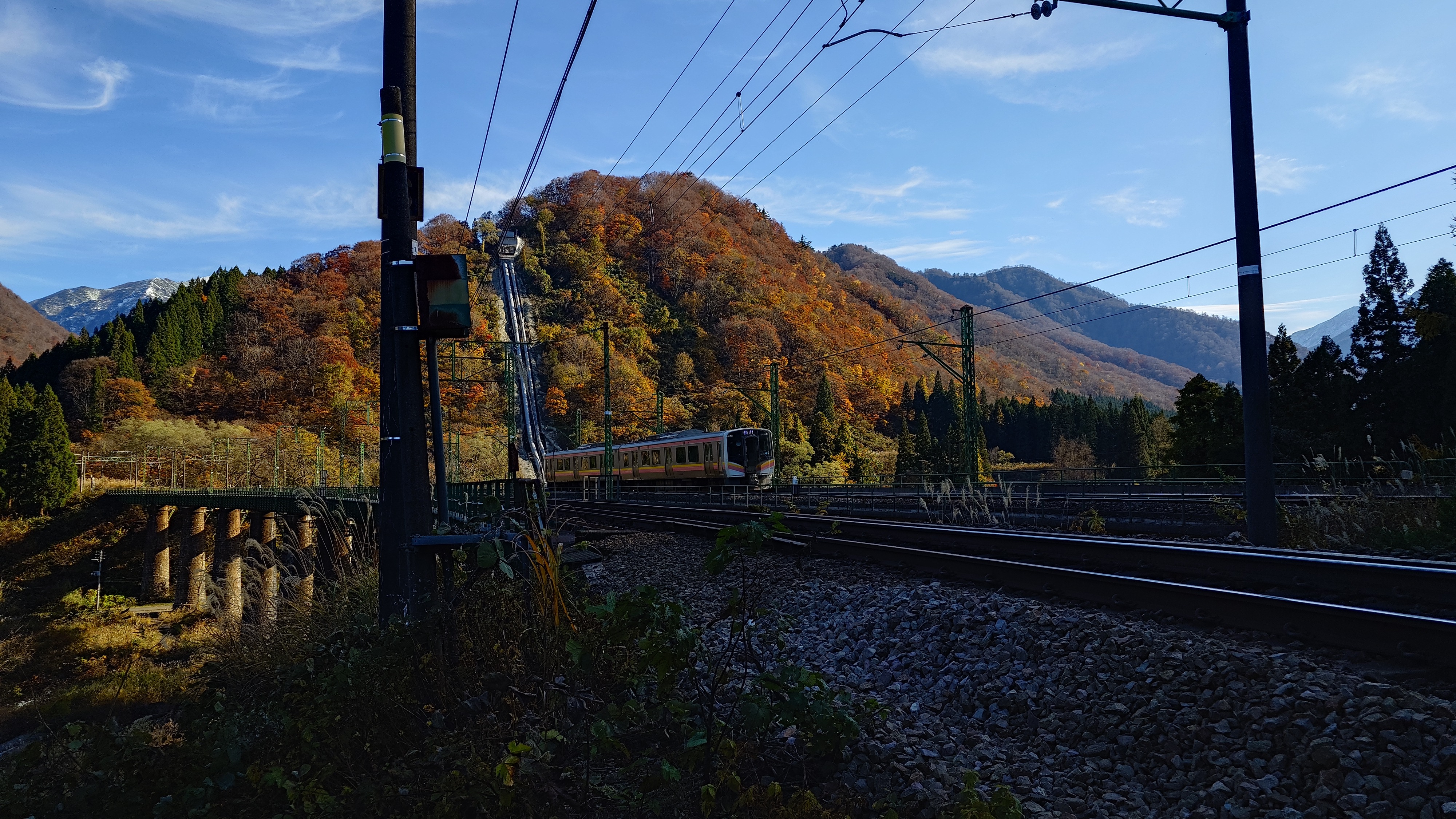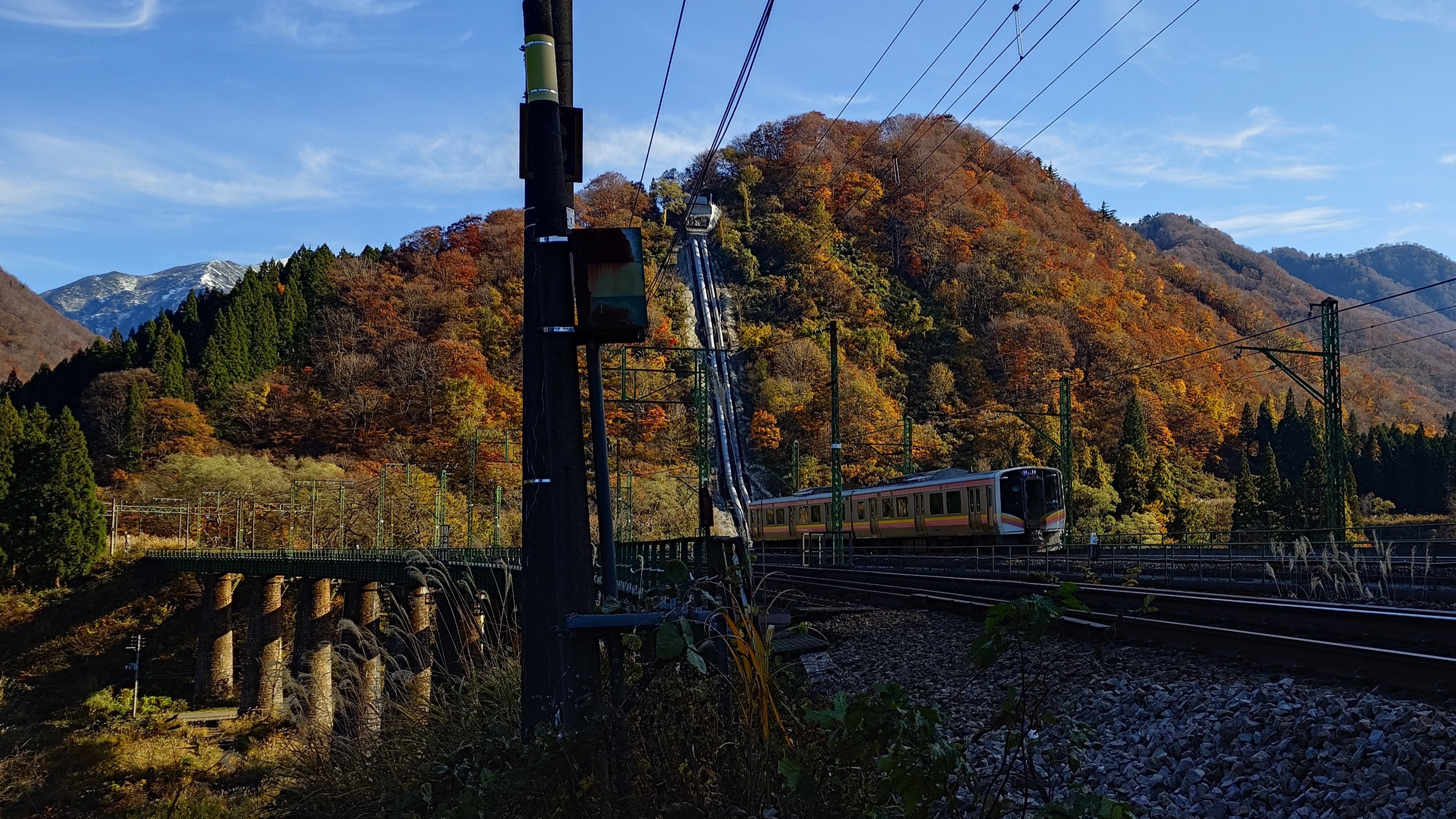 大源太から下りてきて、上越線が走ってくる時刻だったので大ループでパシャリ。秋色カラーの上越線がすすきにとけてます。