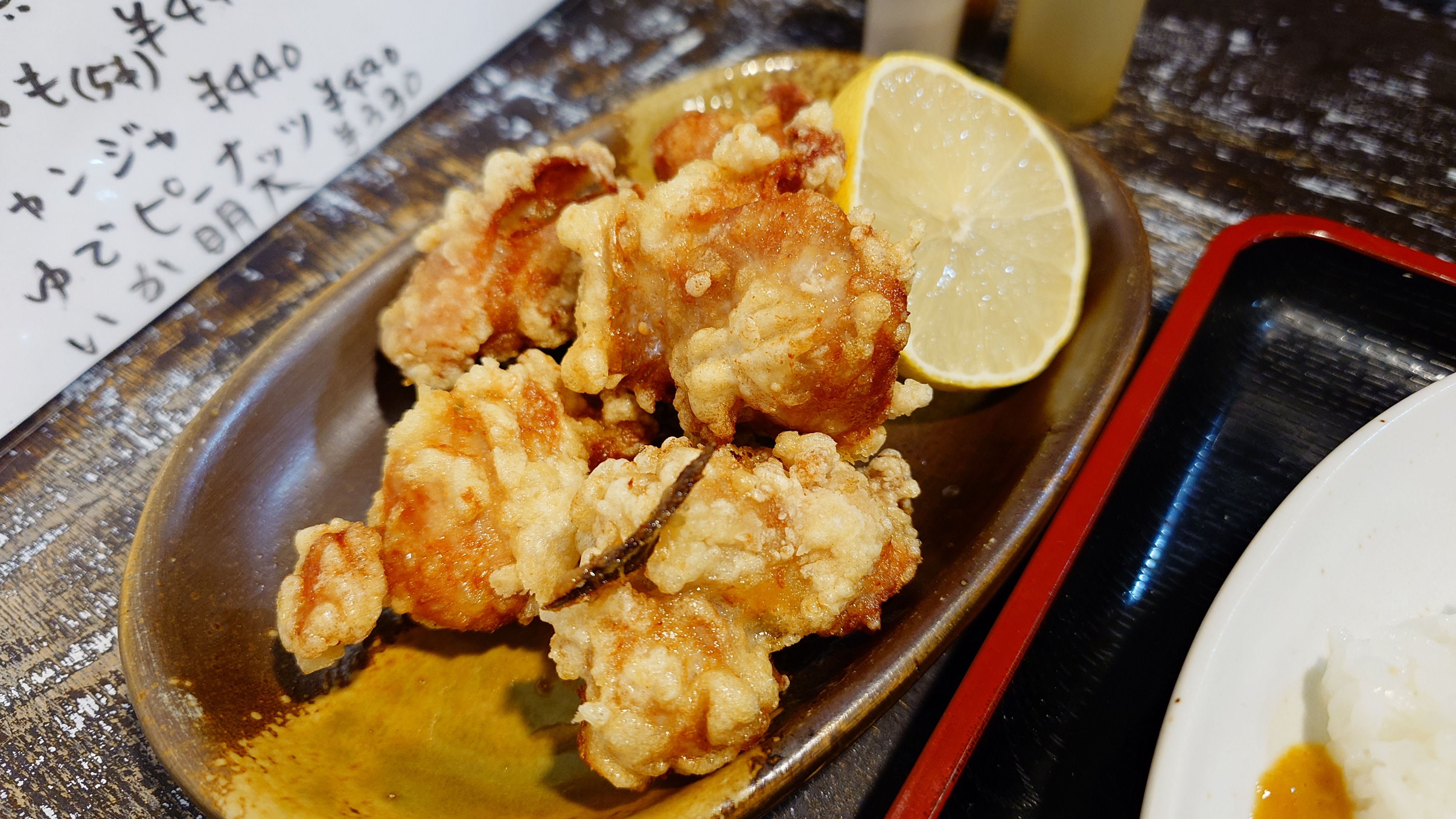 唐揚げは単独でもトッピングでも。カリッと揚がってジューシーです。