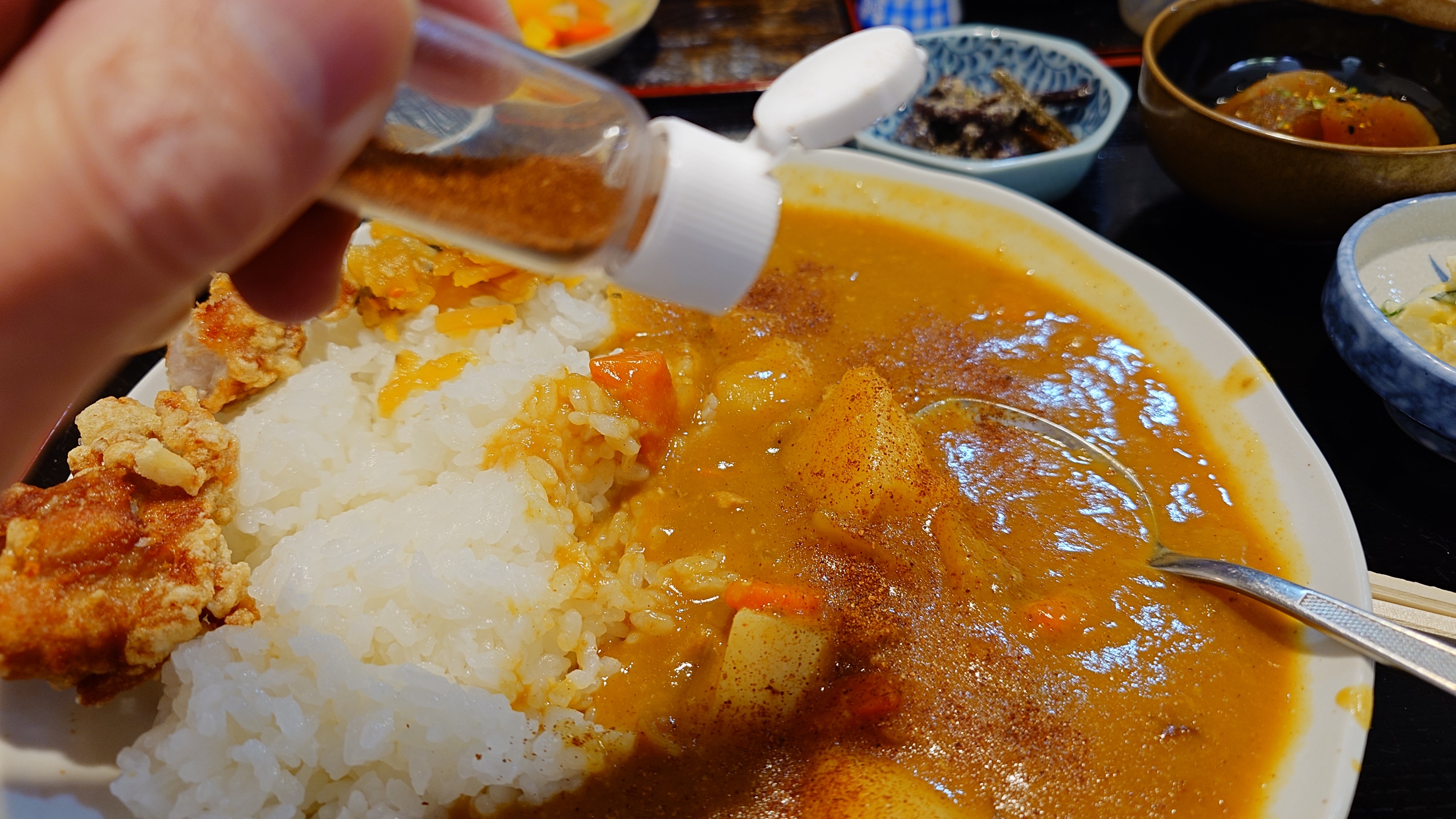 相変わらず小鉢が多い。大根もこんにゃくもしみてて美味しいところに、根菜たっぷり家のカレー。辛さは手持ちのmyハバネロでブースト。ピリピリじんわり辛いカレーに変身です。