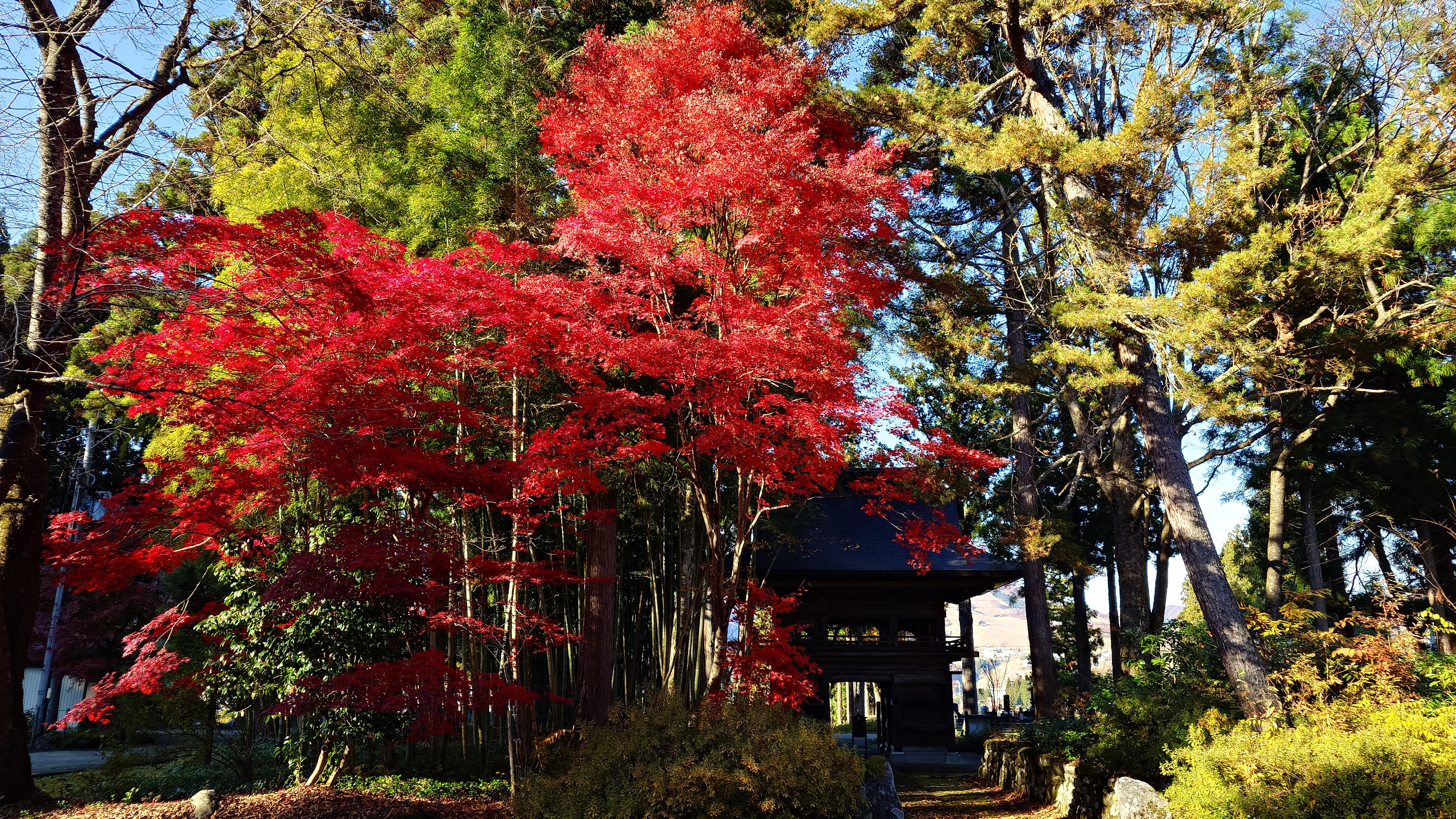 毛渡沢から下りてきて瑞祥庵。こちらは山門入ると楓の木があり、竹林の緑と紅葉の赤のコントラストが拝めます。