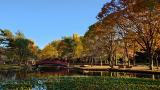 カルチャーセンターの池の落ち葉もまっ黄色。