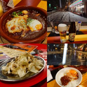 お通しの塩ダレ海苔キャベツが旨い。そして、デミハンバーグ。終盤に促されるままご飯を注文。そこに玉子とハンバーグをON。デミ玉ハンバーグ丼。これはテッパンでしょう。
