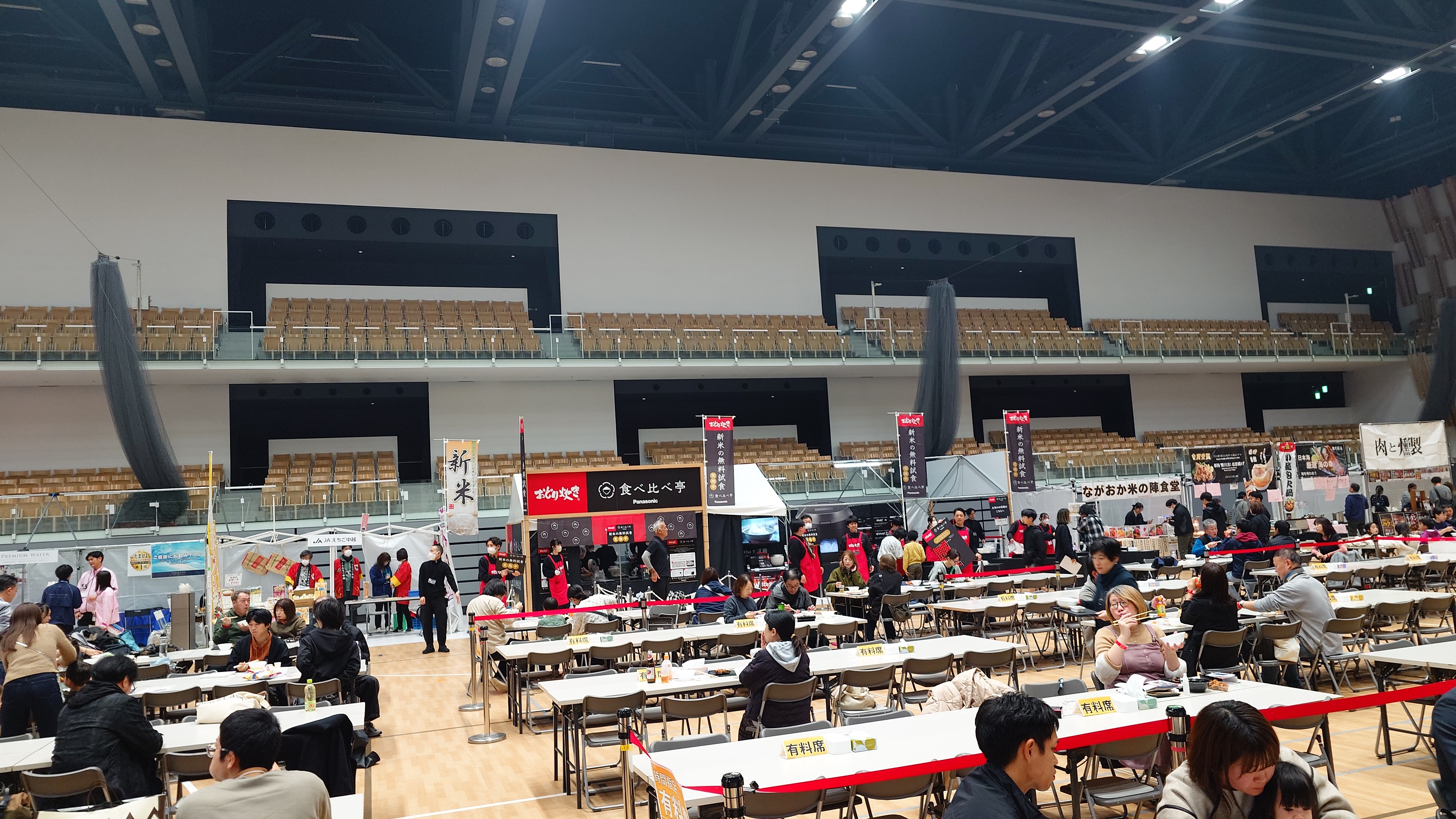 そして、えちごツーデーパス2日目で長岡まで買い物に。アオーレでは、350円で長岡コシヒカリ食べ放題の米の陣というイベントやってます。