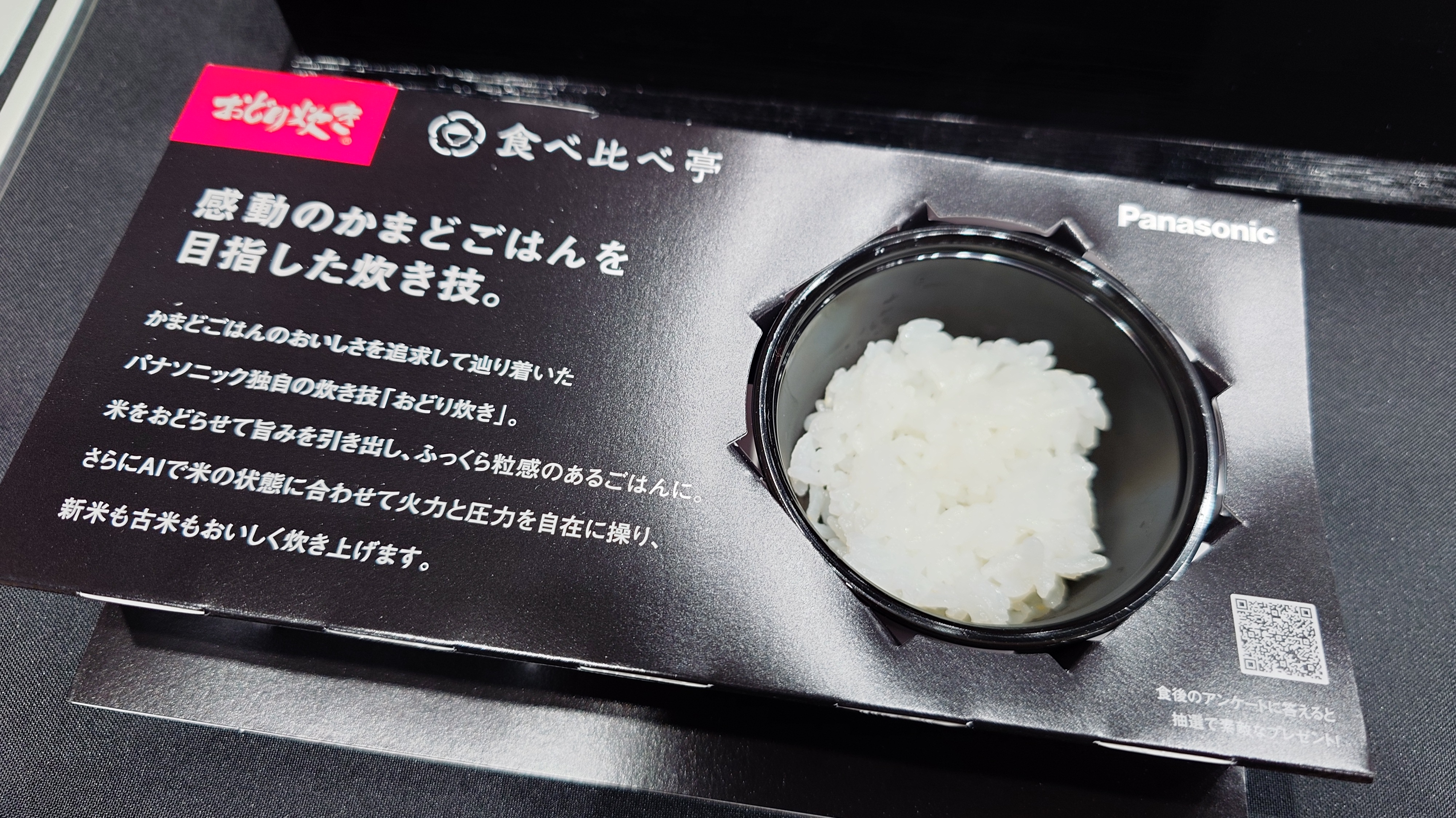 パナソニックのジャーで炊いたご飯の無料試食会やってたので、ひとくちいただきました。この時間は新之助とのことですが、よく炊けてて旨い。ひと口で十分でした。