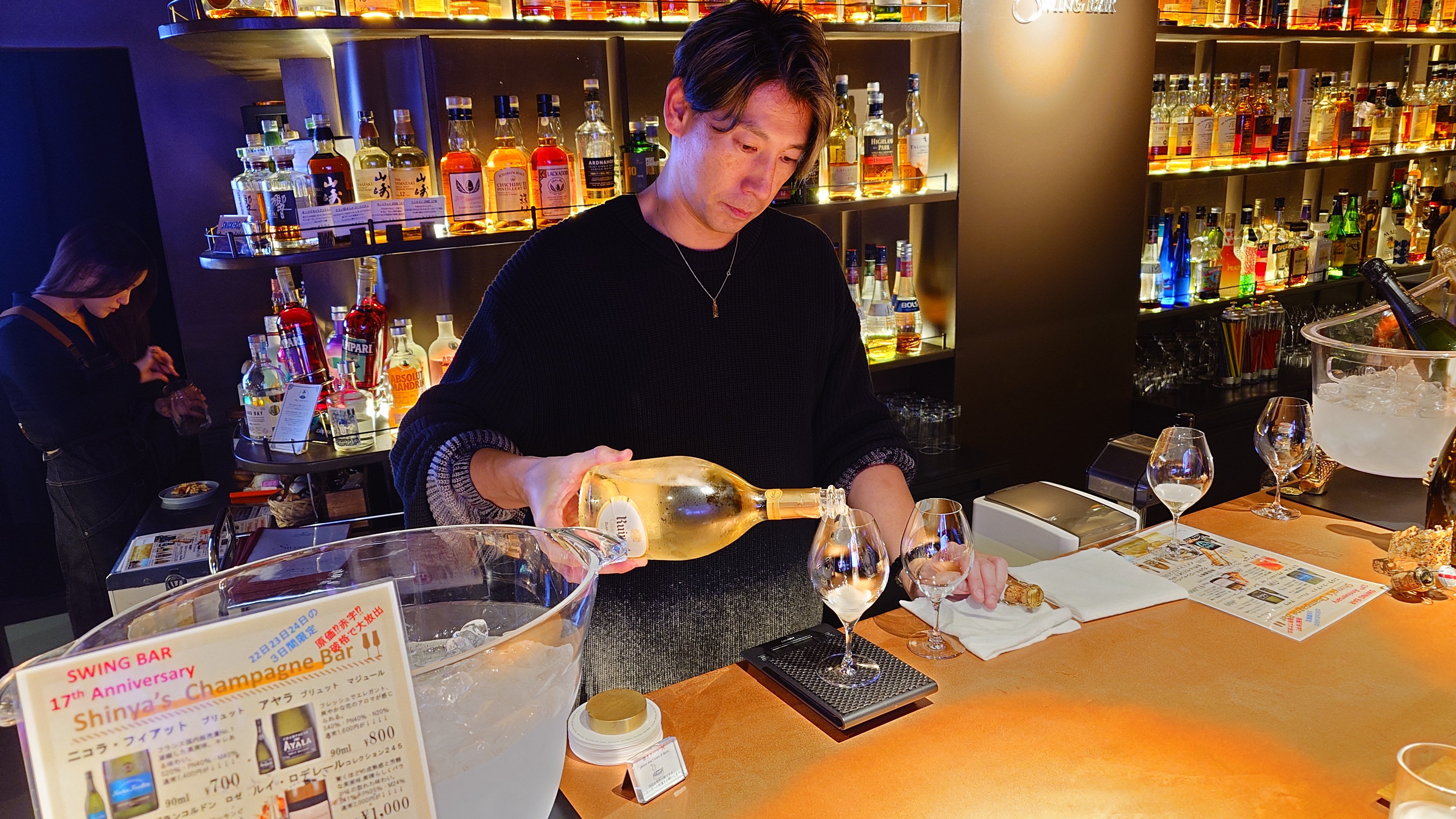 昨夜に続いてSWING BAR17周年。今夜は、マスターのお兄ちゃんのシャンパーニュナイト。そしてナイトはナイトでも、シャンパーニュ騎士団のナイト(騎士)の称号を得たそうです。すごいなあ。