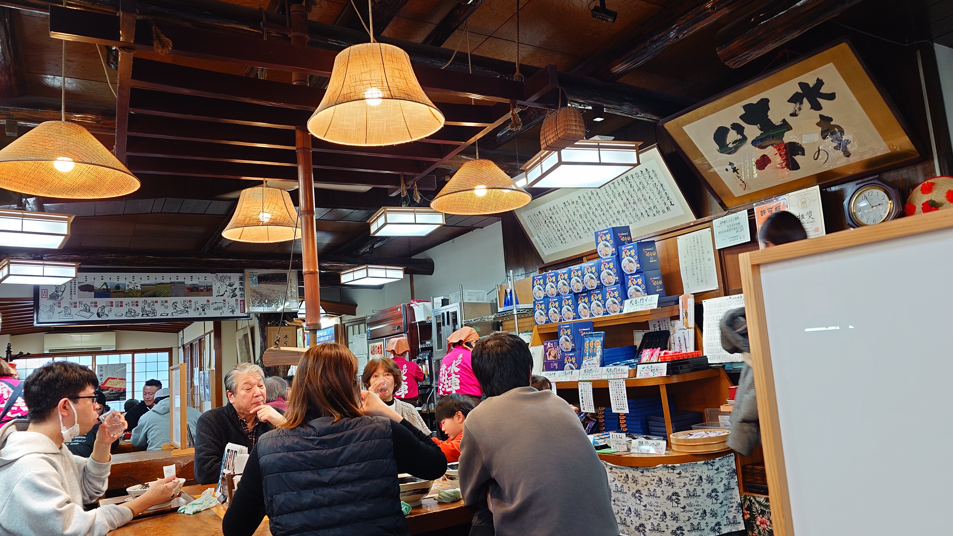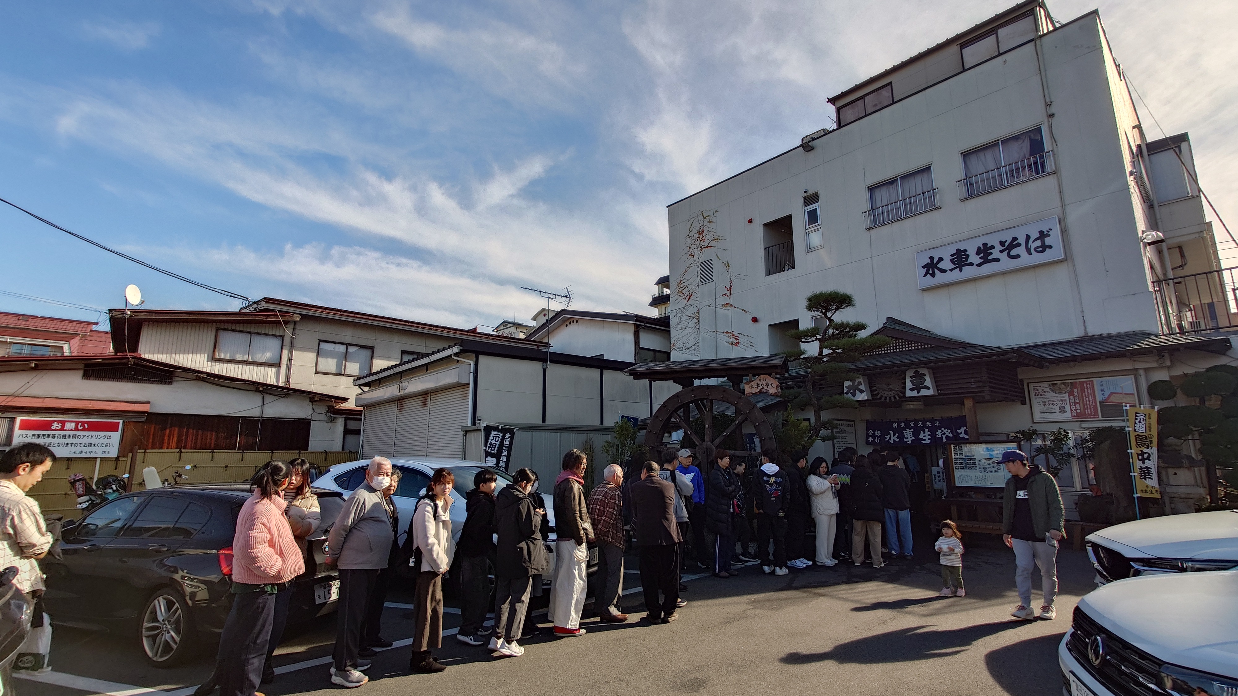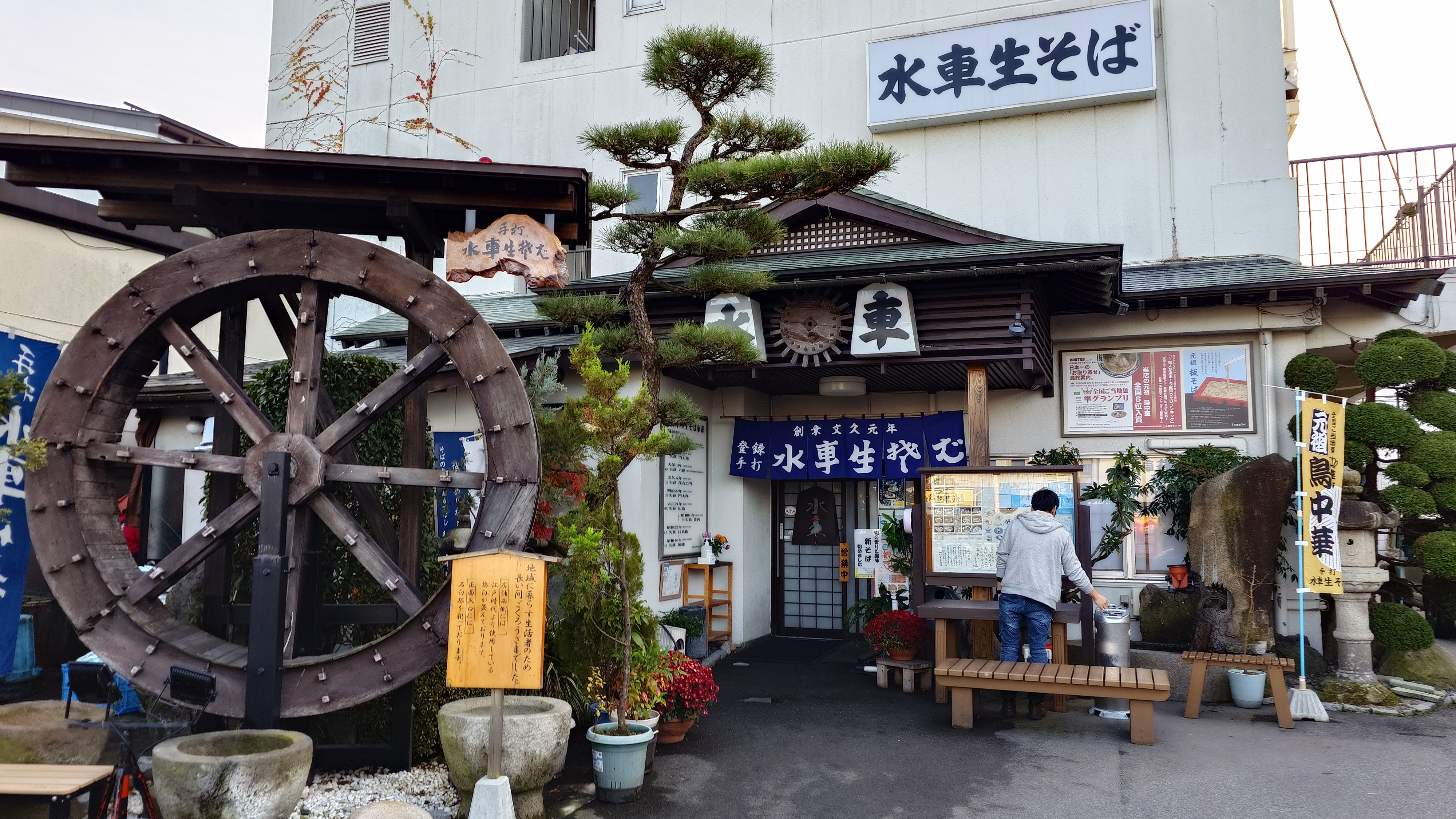 帰り道。先程あきらめた水車そばに寄ったら、さすがに行列は解消されて、数分待ちで着席。即注文で鳥中華がやってきました。