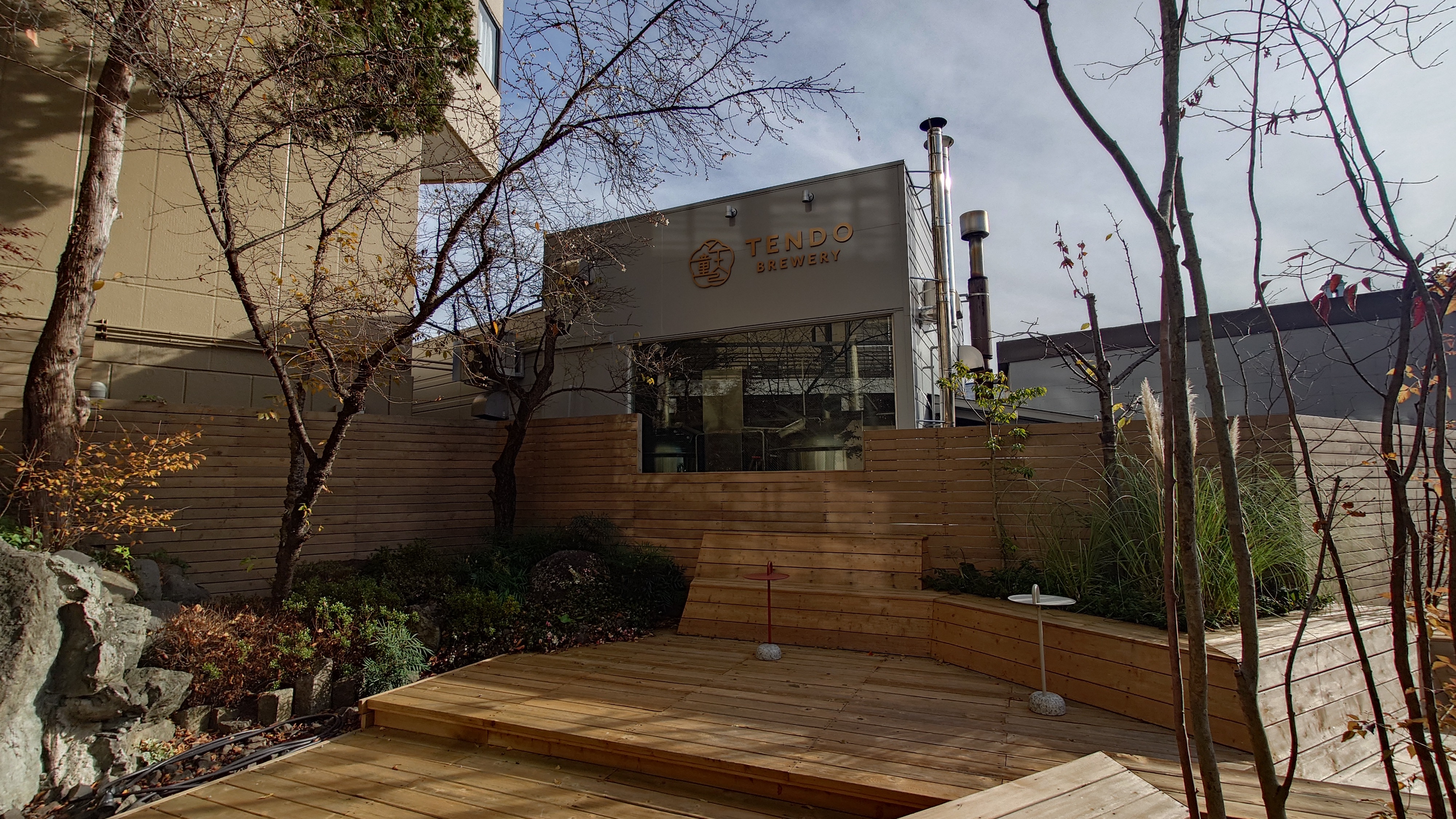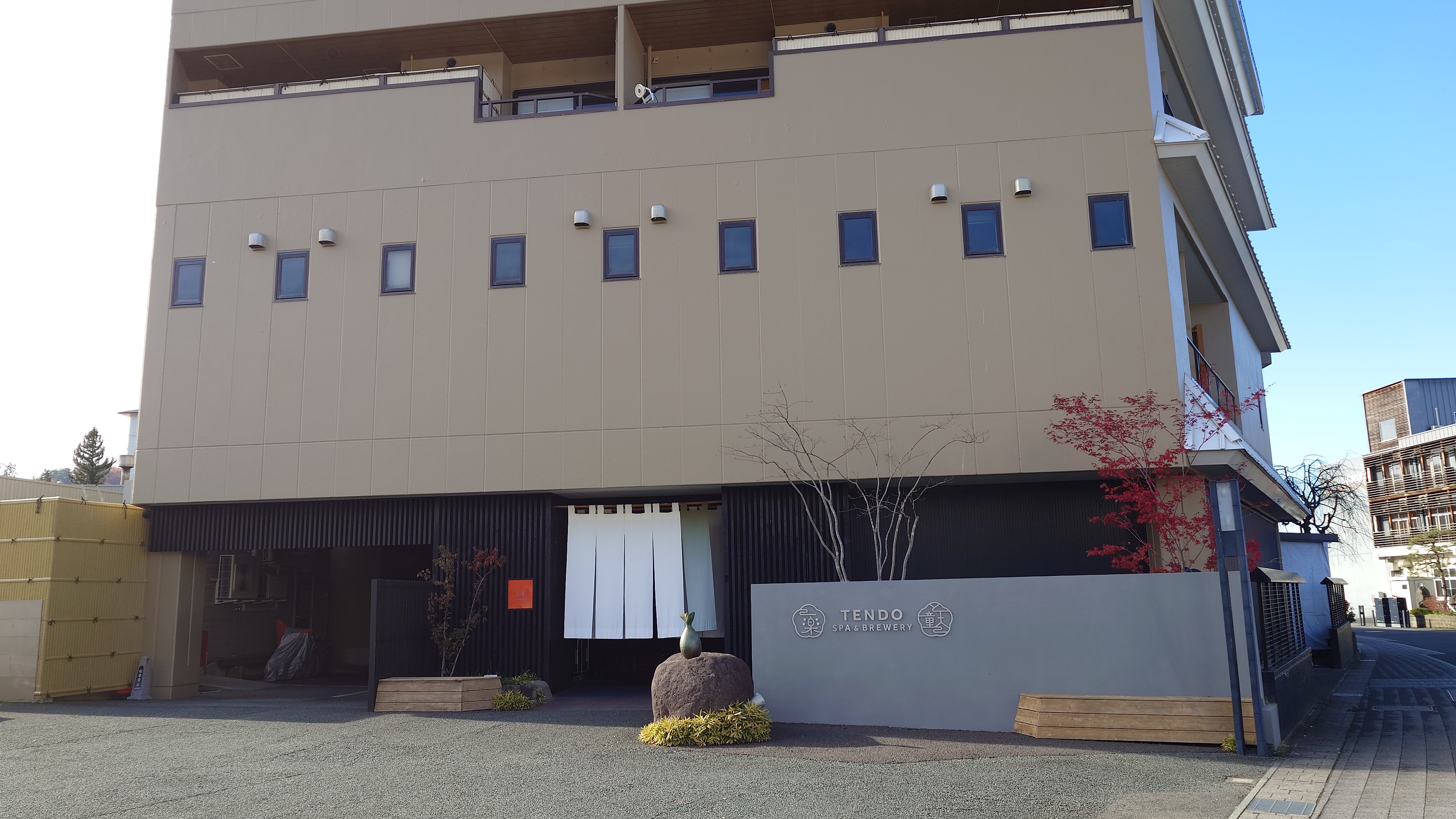 ホテルの中庭に醸造所。温泉に行く間に建っています