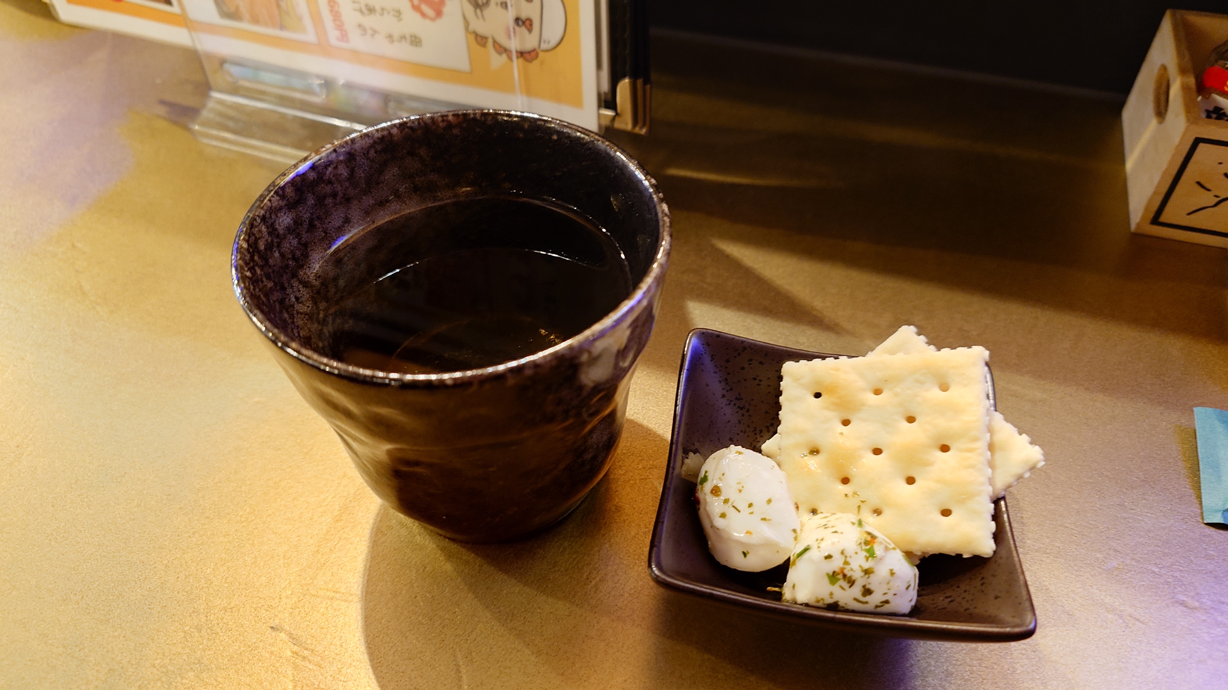 帰り道、前回も入ったほっとなる横丁をのぞくと、沖縄そばと焼き鳥のお店があったので、軽くのつもりでハブソバ。角のお湯割りからのまさひろの泡盛水割り。
