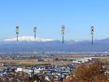 西側の展望台まで来たら、眼前は月山。きれいに冠雪しています。春まで開かないスキー場ですが。