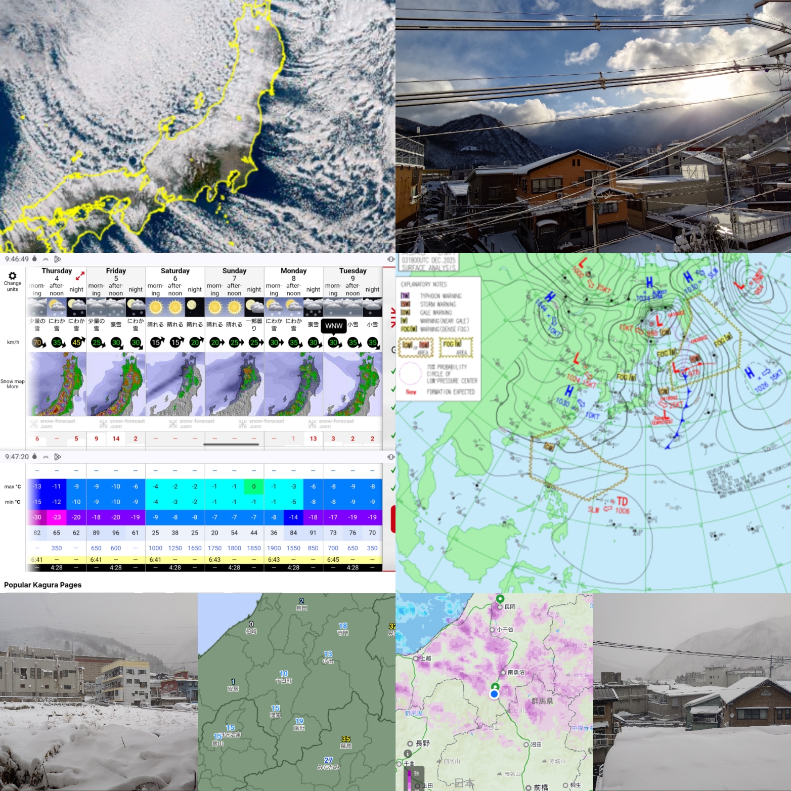 さて、一瞬晴れ間が見えた湯沢でしたが、土曜朝までは断続的に降り続きそうです。この時期、重い雪で日本海沿岸部にドカッと落ちることがニュースになりますが、風も強くて谷川を越えて降ったようです。と言うことは、山の上はパウ? 来週も積もりそうな予報。