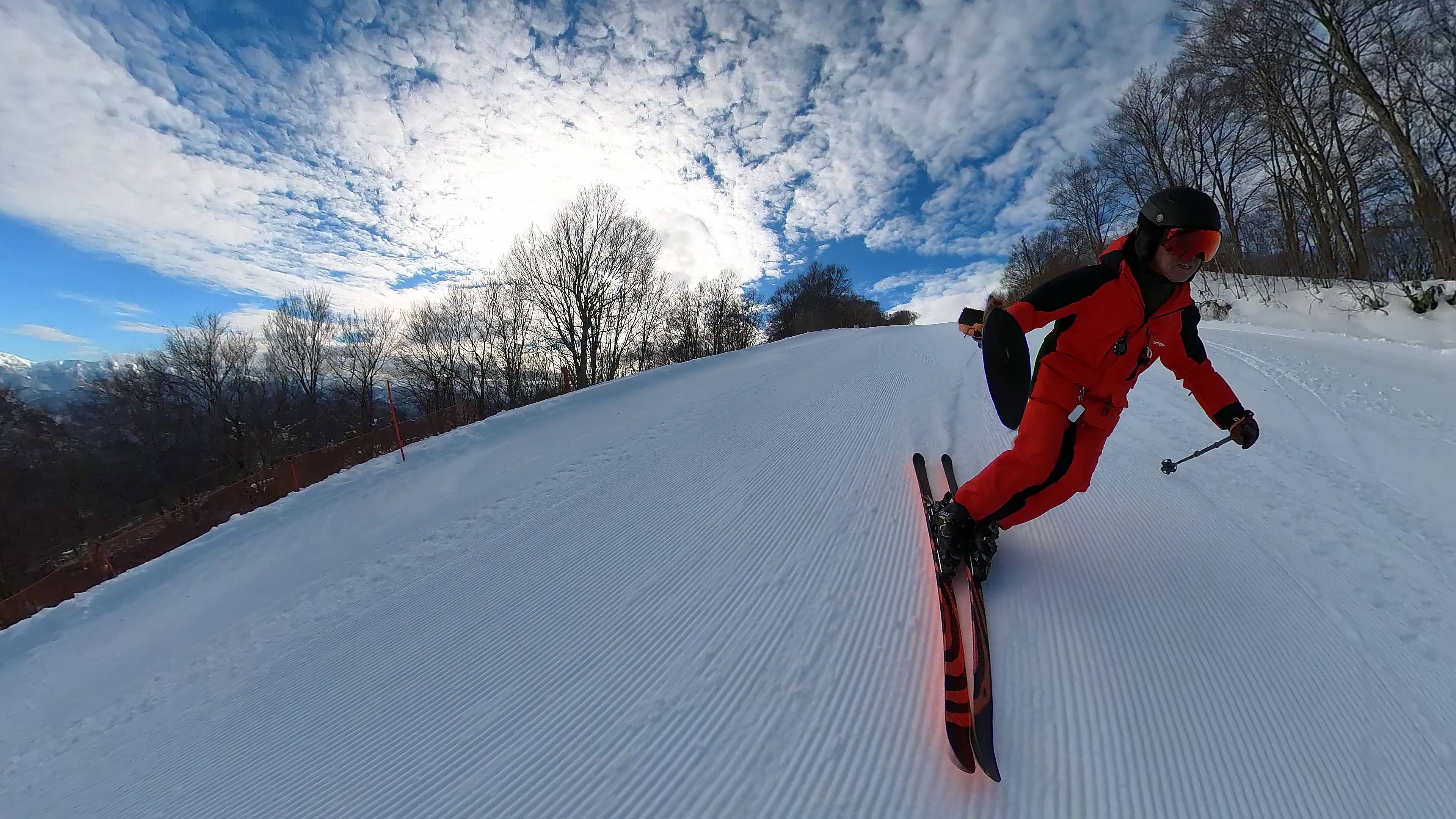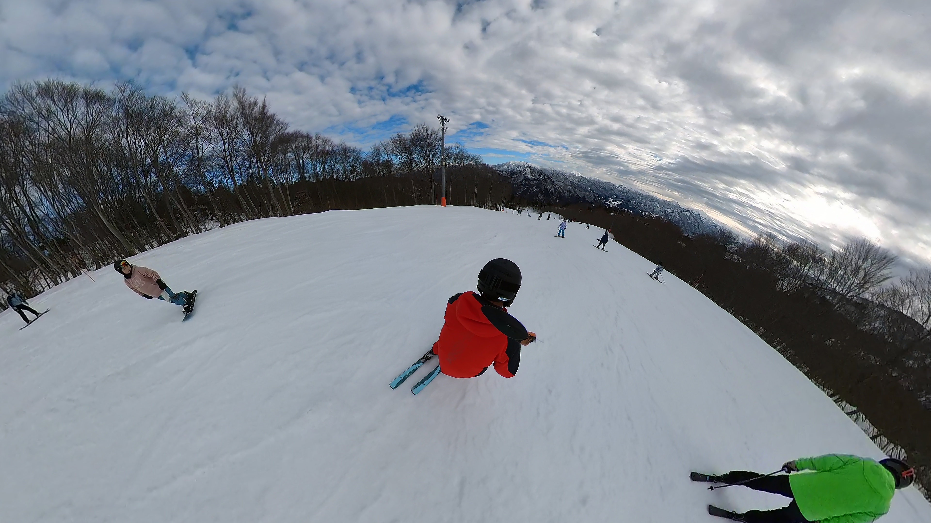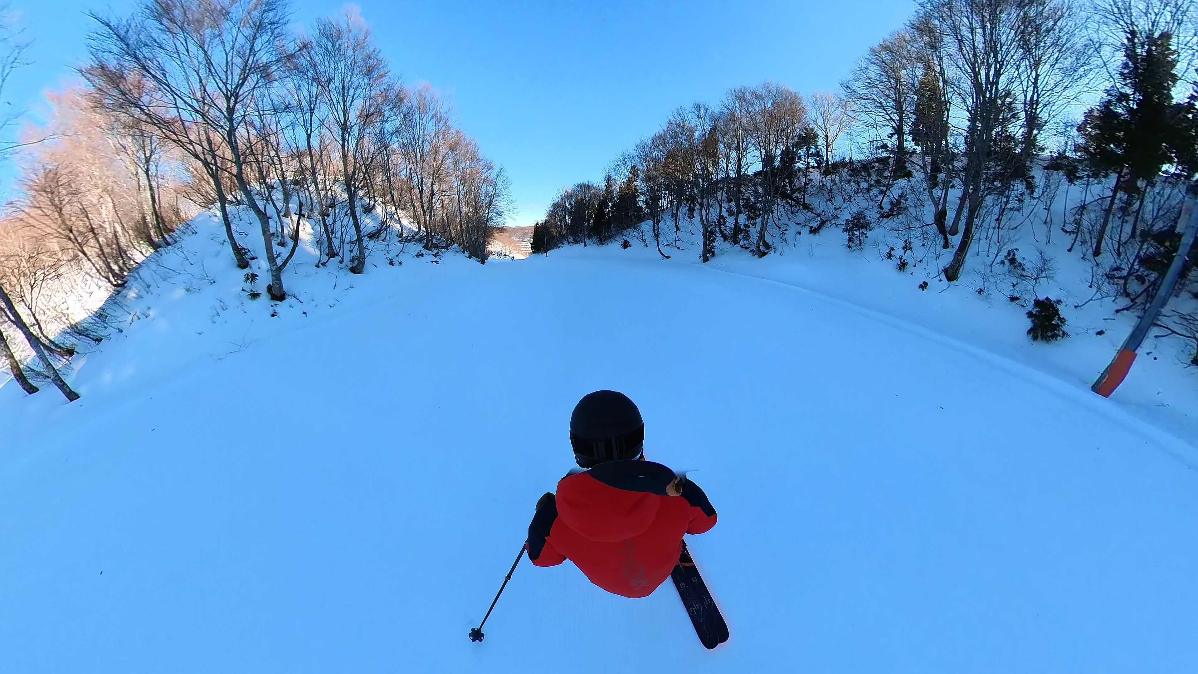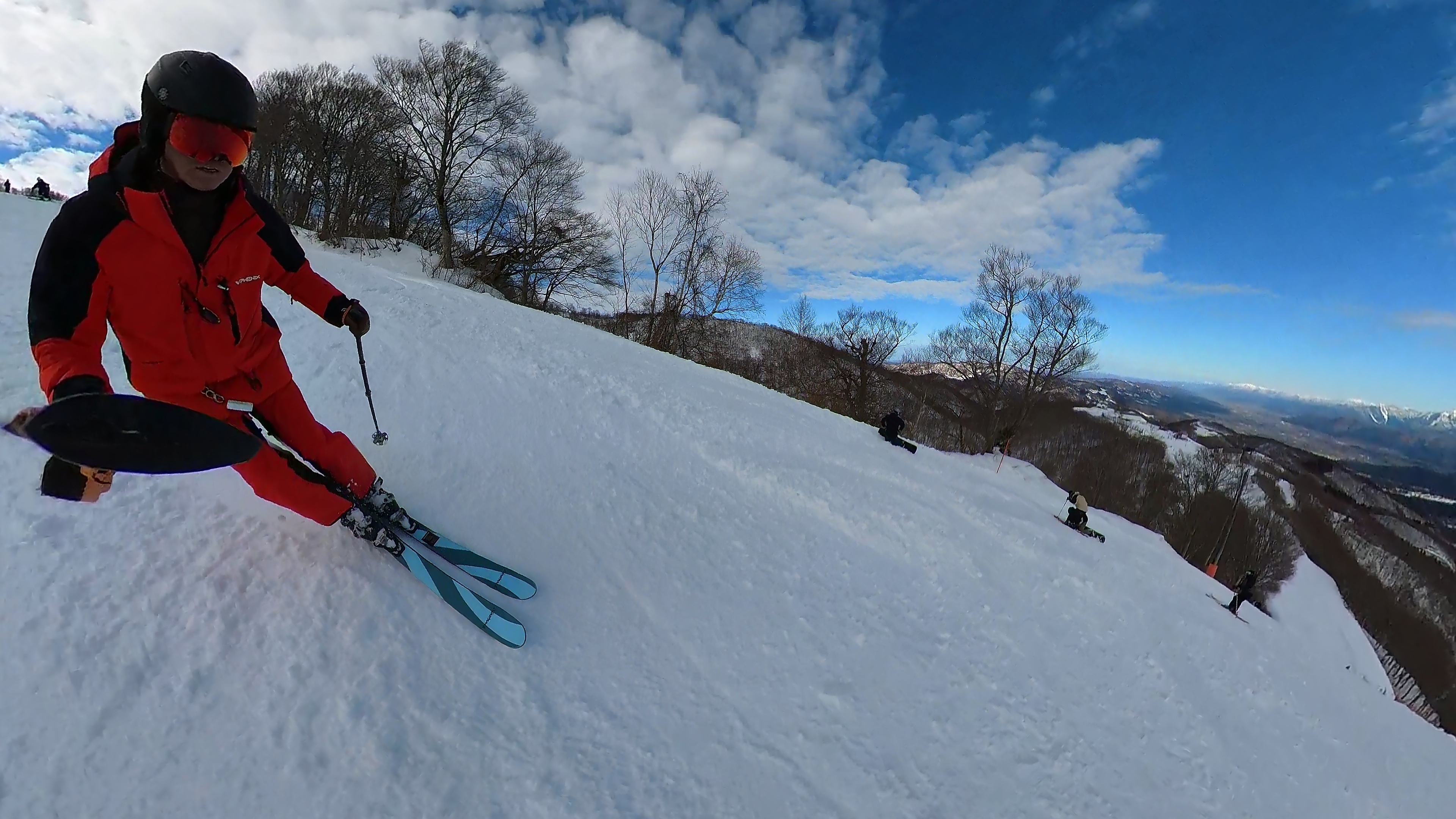 山頂まで行って2本。回しやすっ。でも、ボコボコ面になると、さきっちょがのめり込む感じ。人の板は慣れないです。