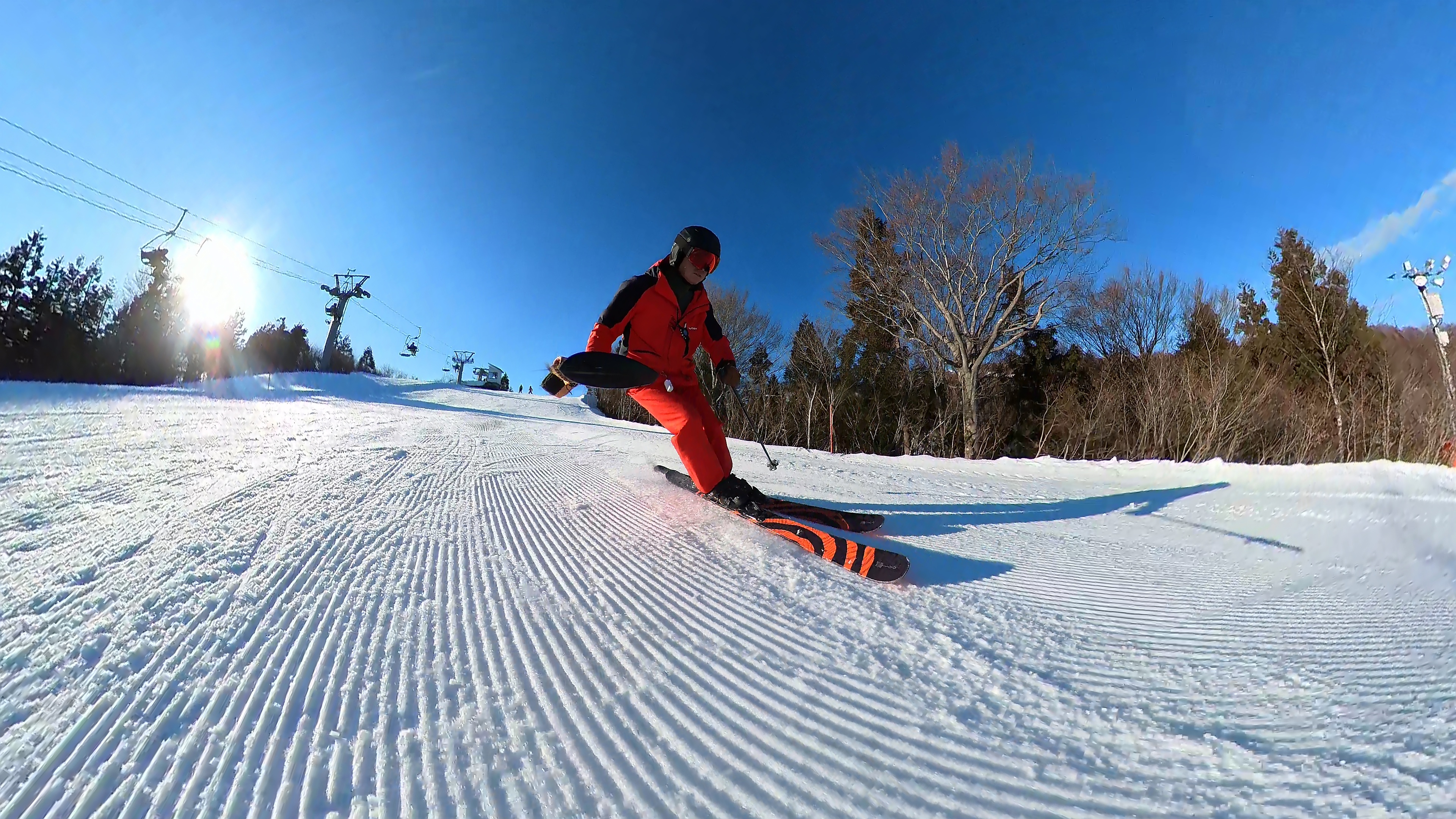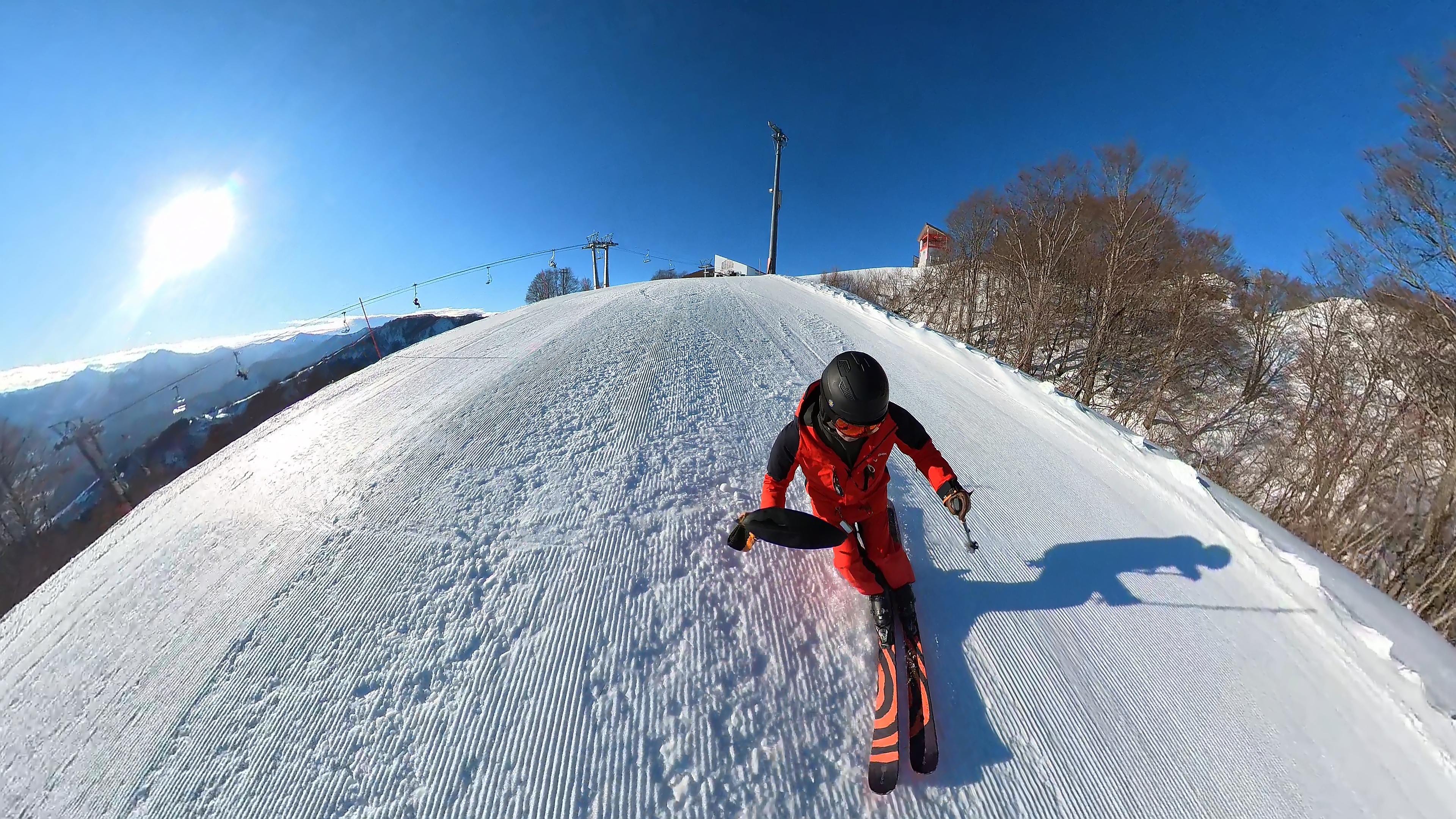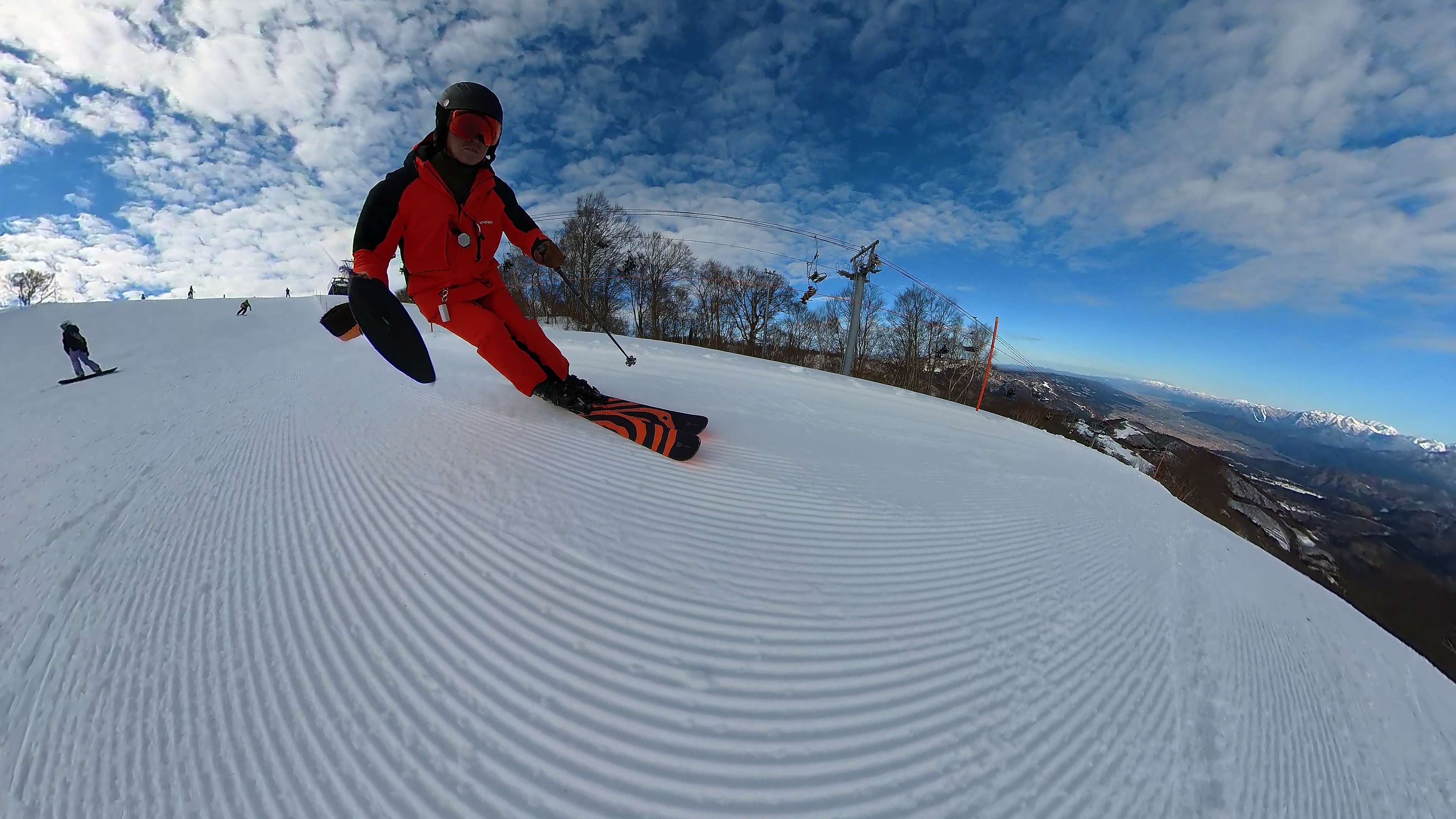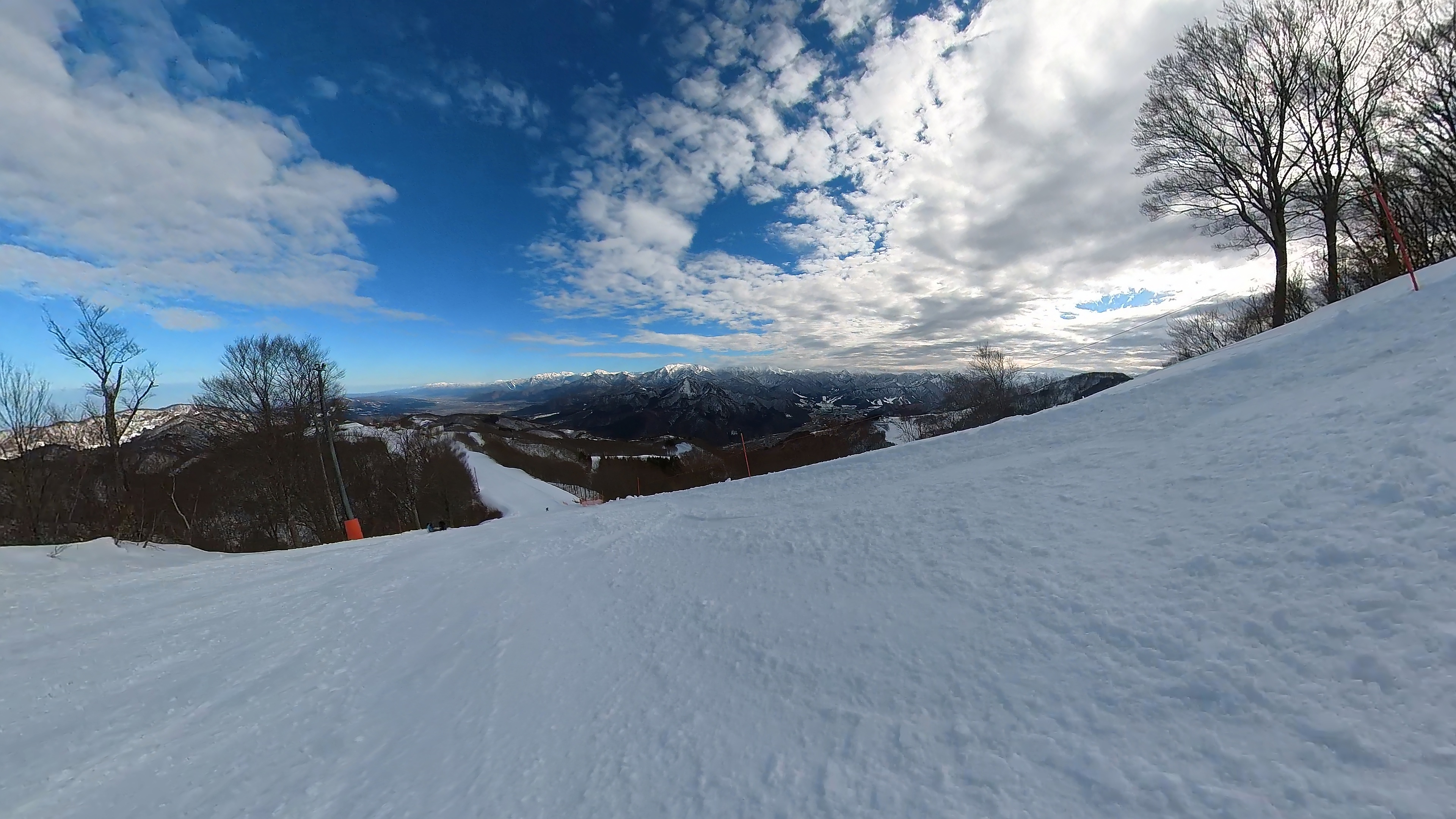 山頂まで行って2本。回しやすっ。でも、ボコボコ面になると、さきっちょがのめり込む感じ。人の板は慣れないです。