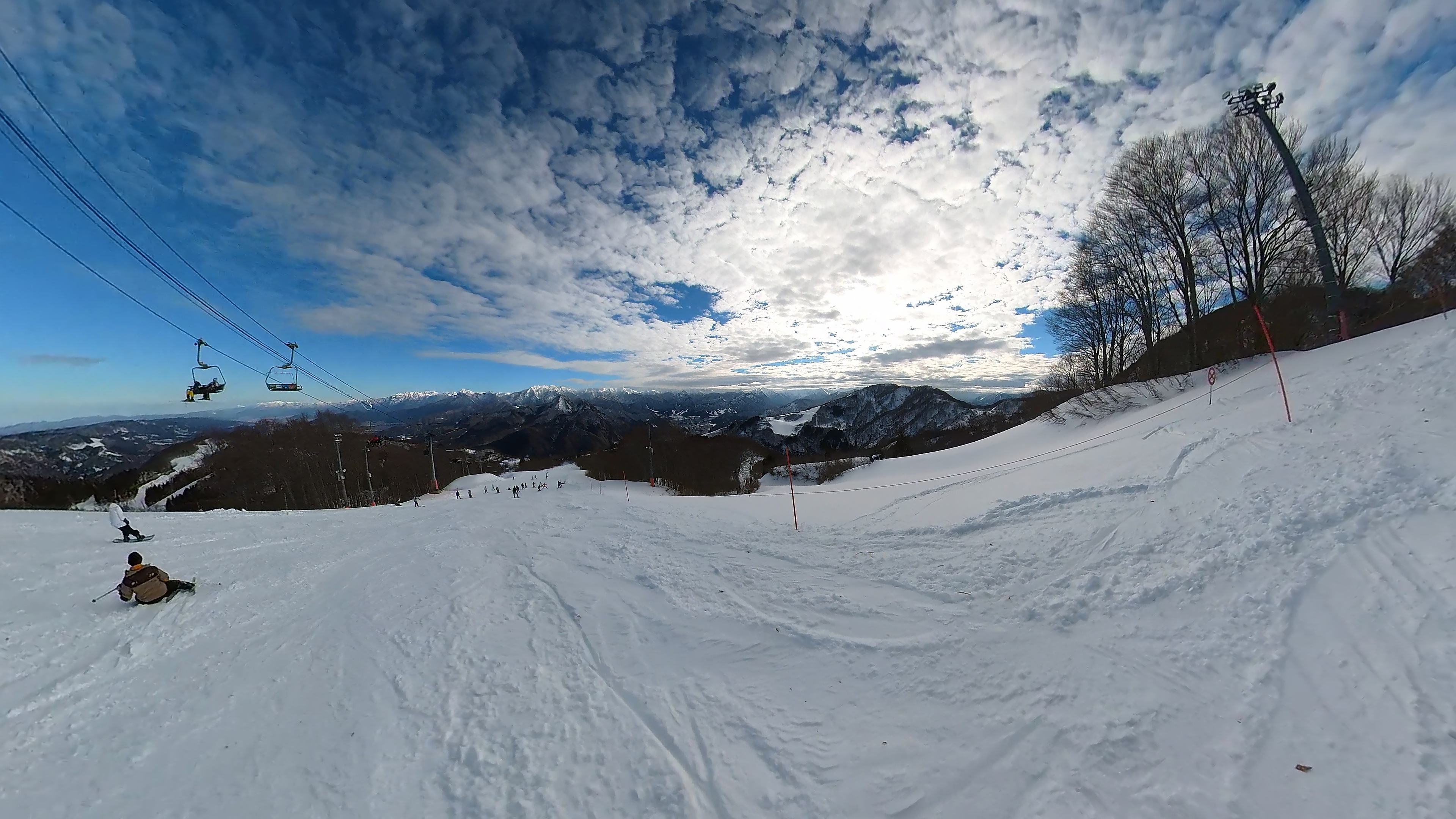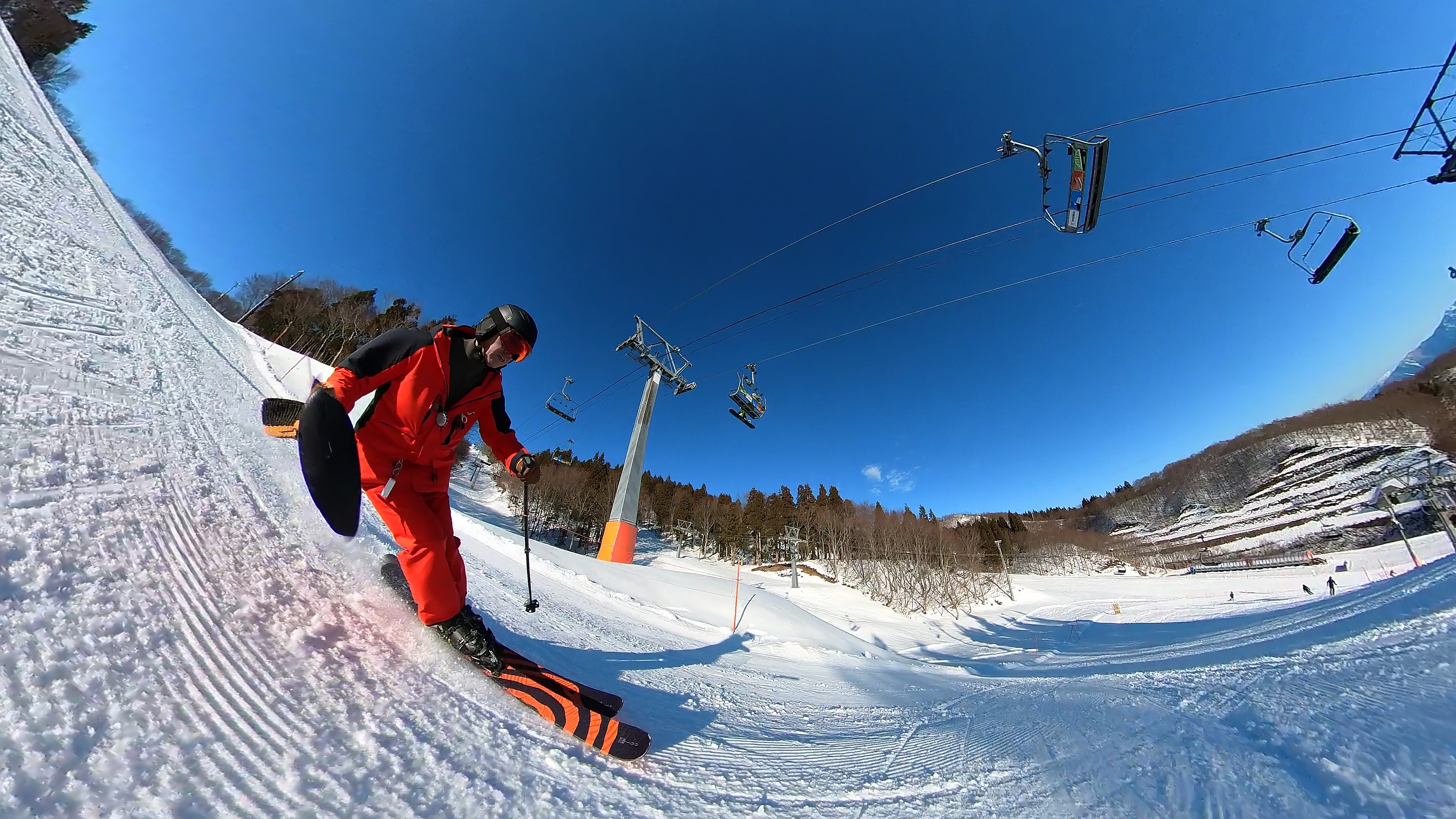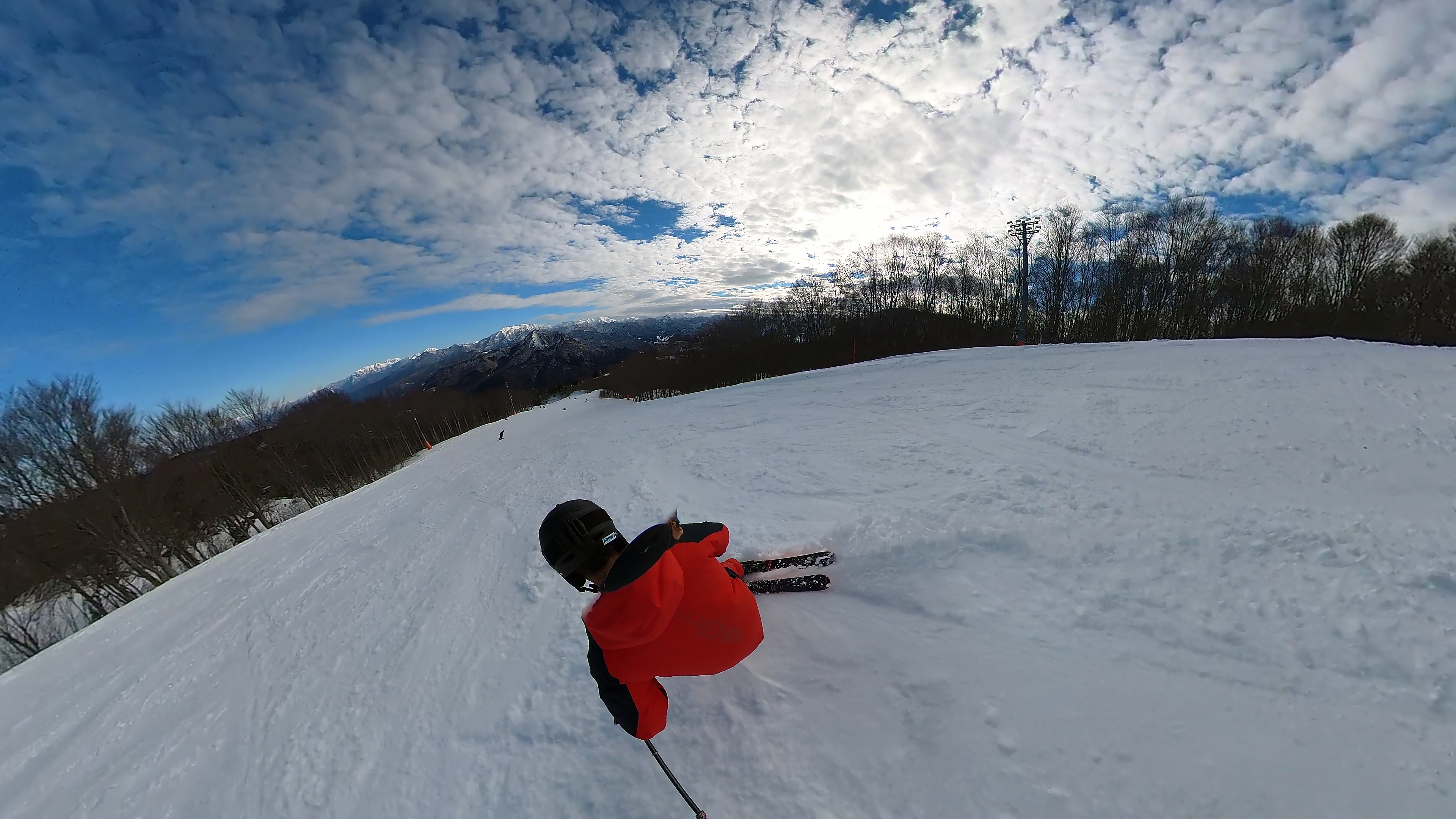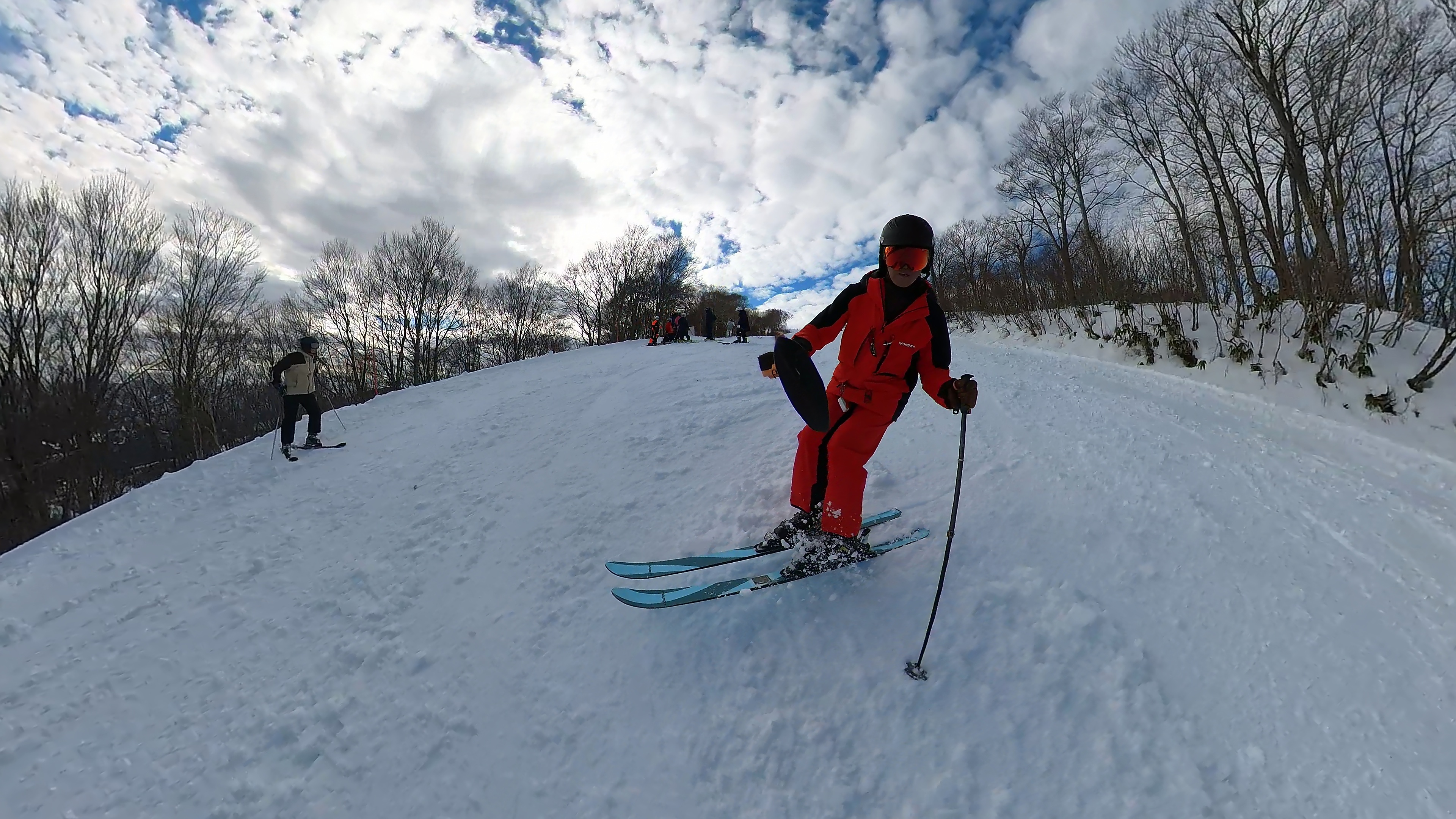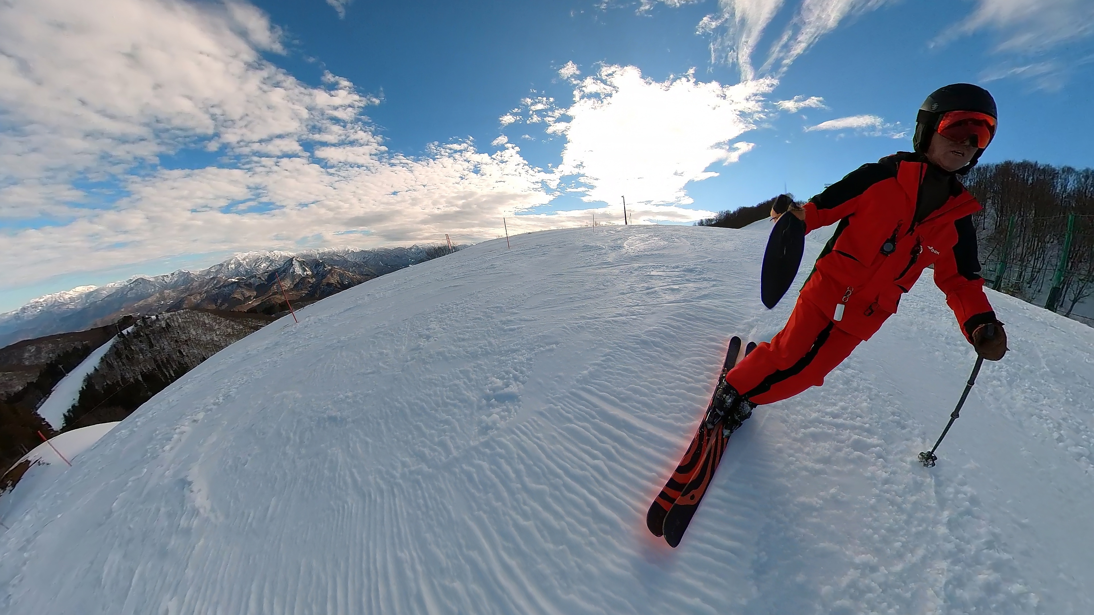 山頂まで行って2本。回しやすっ。でも、ボコボコ面になると、さきっちょがのめり込む感じ。人の板は慣れないです。