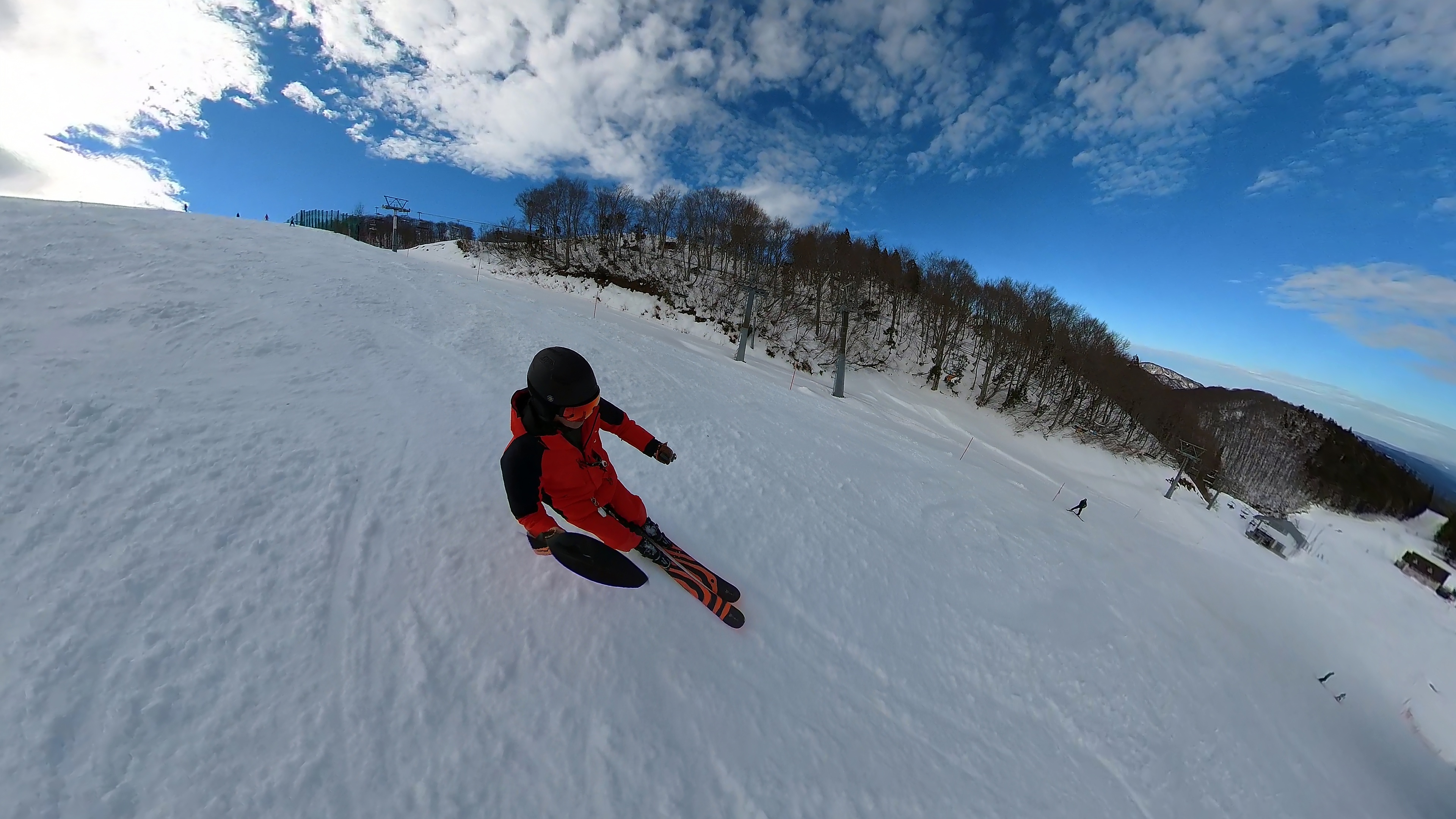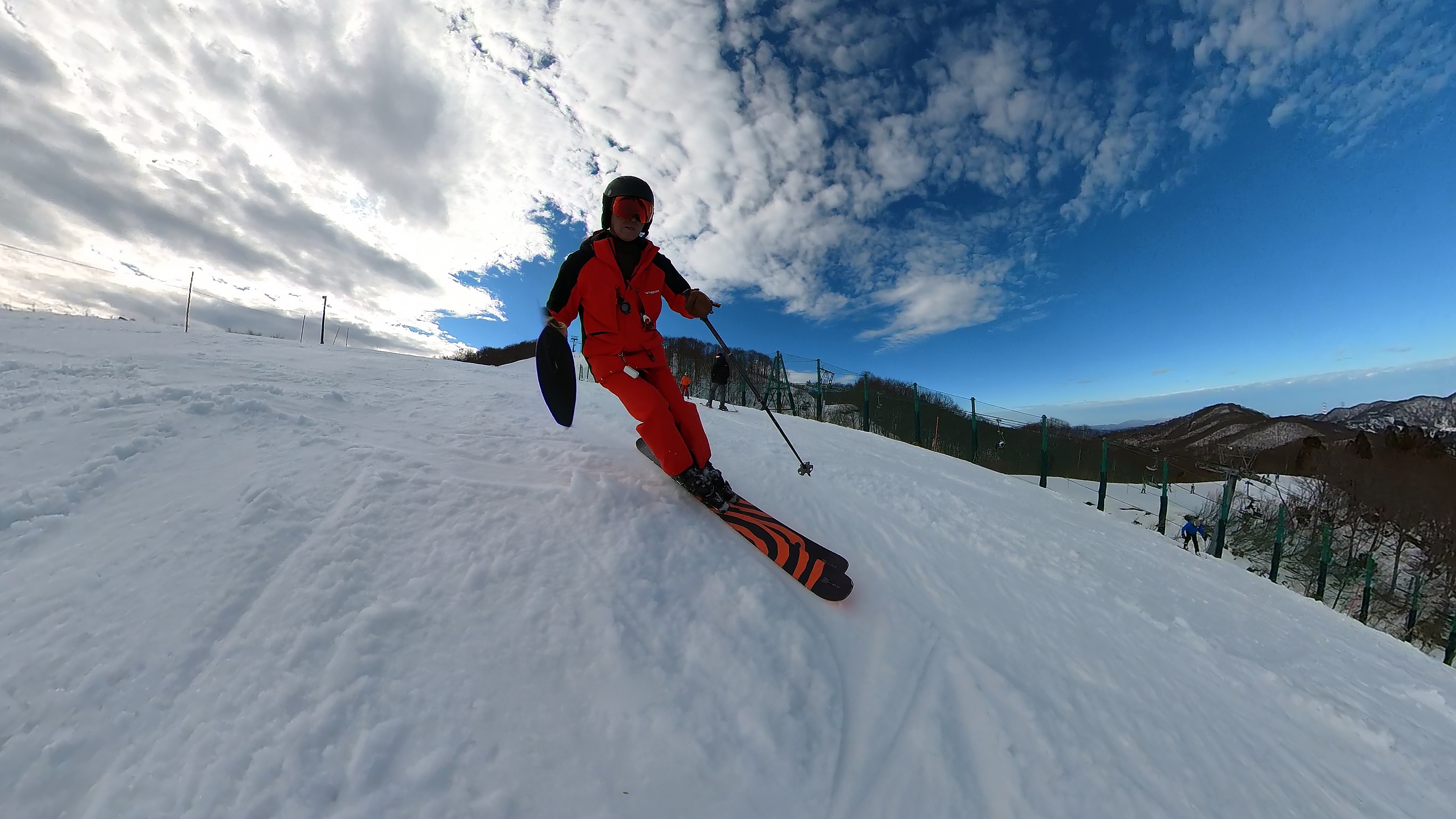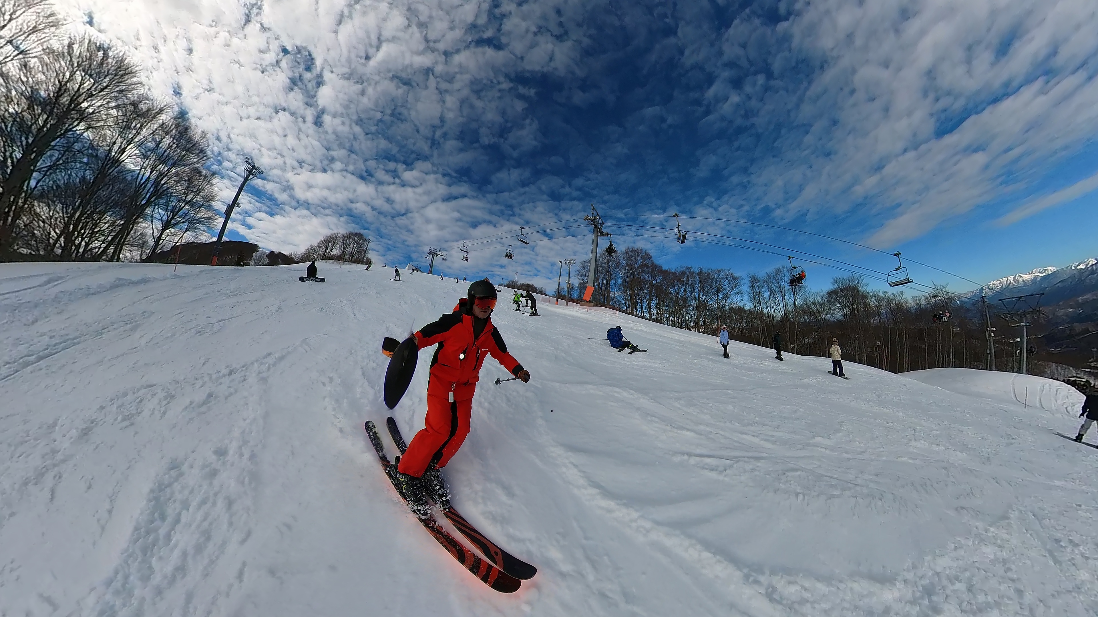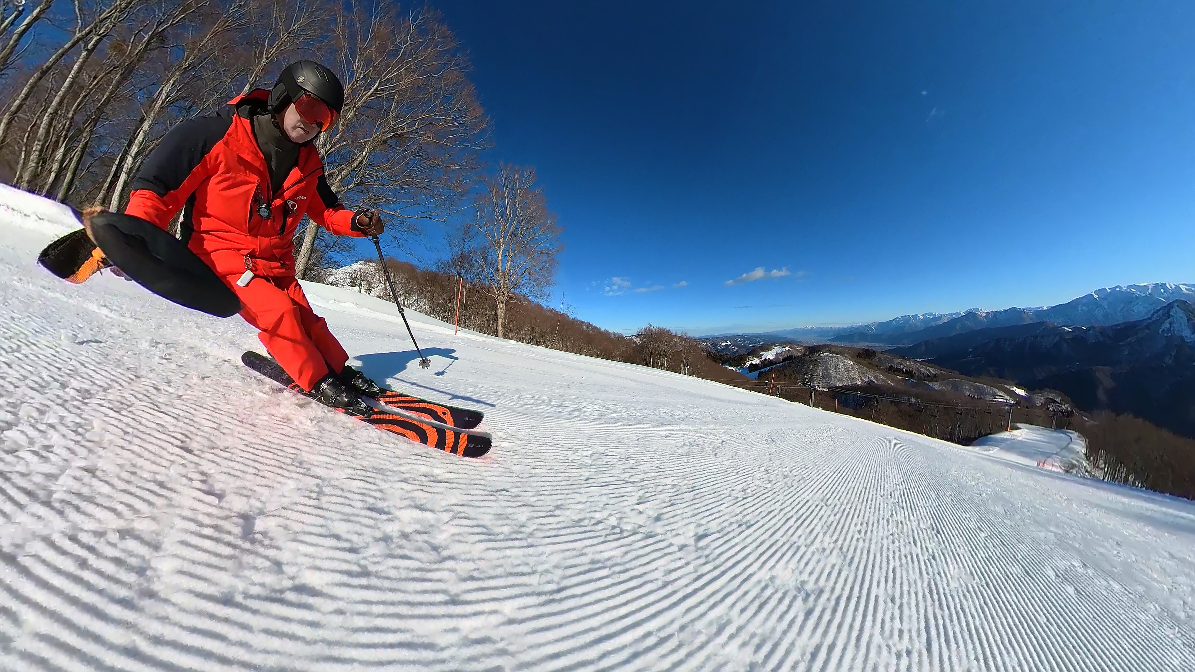 山頂まで行って2本。回しやすっ。でも、ボコボコ面になると、さきっちょがのめり込む感じ。人の板は慣れないです。