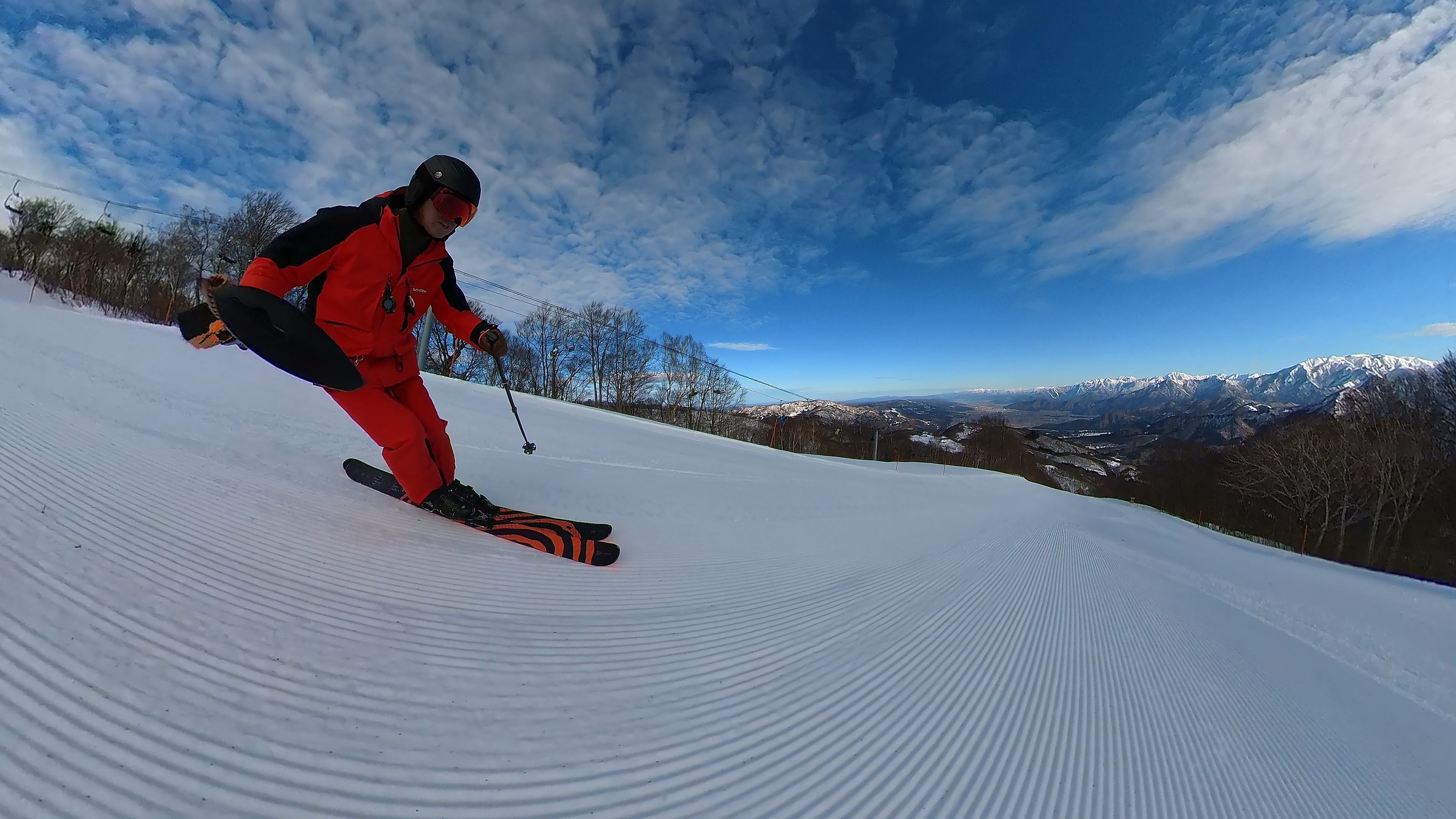 カリっカリなピステンバーンでエッジを取られちゃいます。