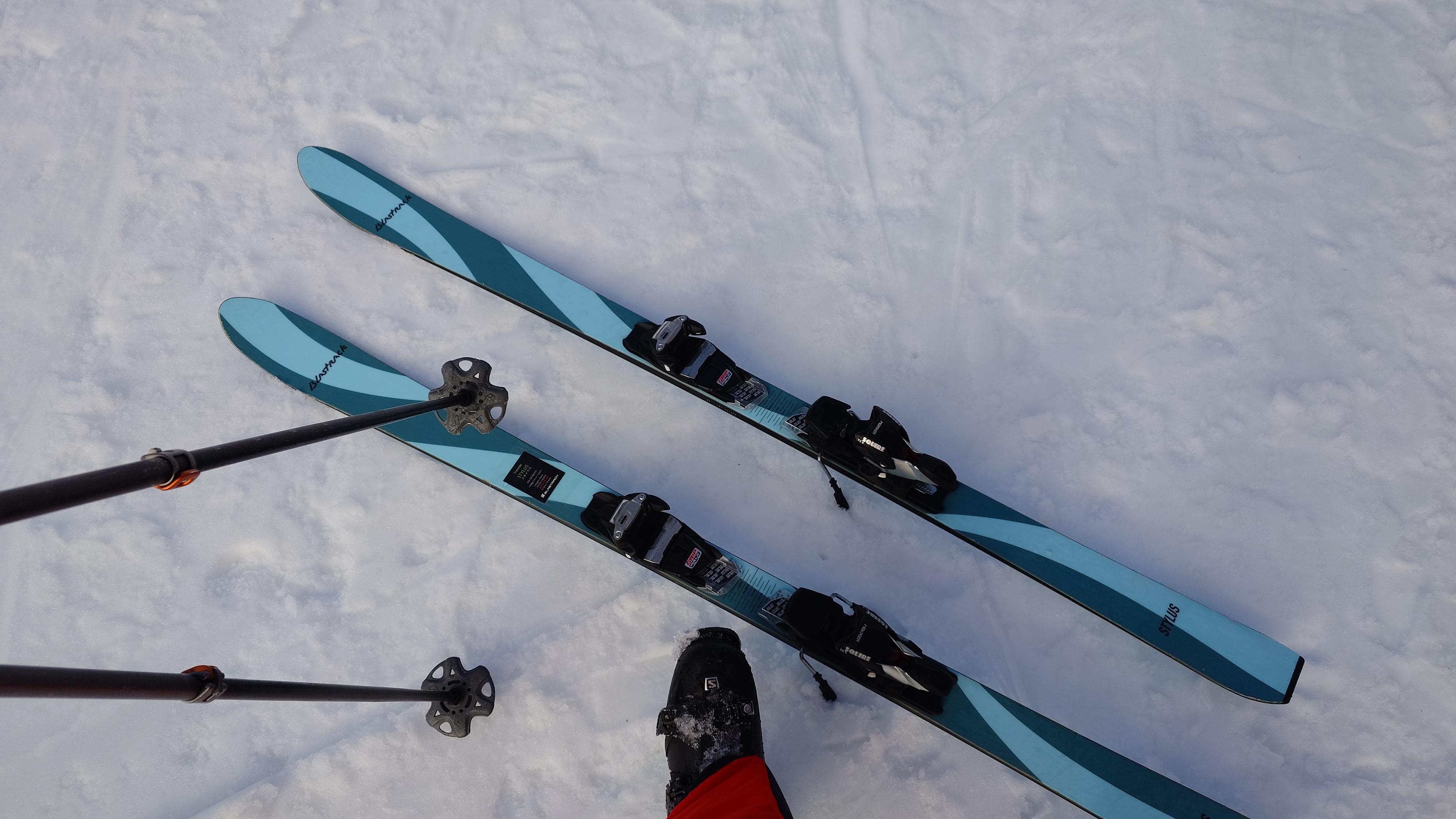 今日はサロモン履いてますが、K2も太めな板。細い板は20年とかぶりです。