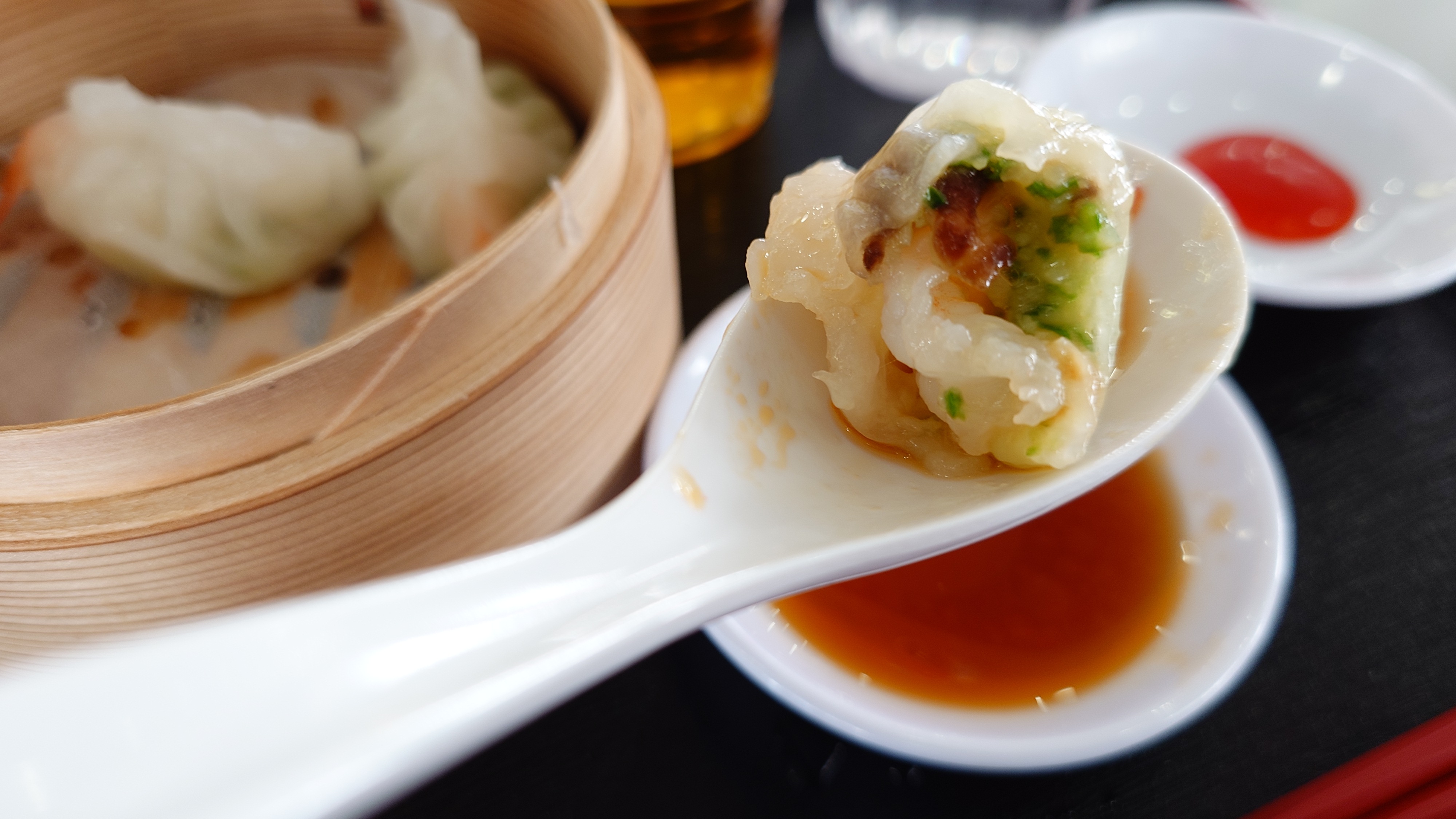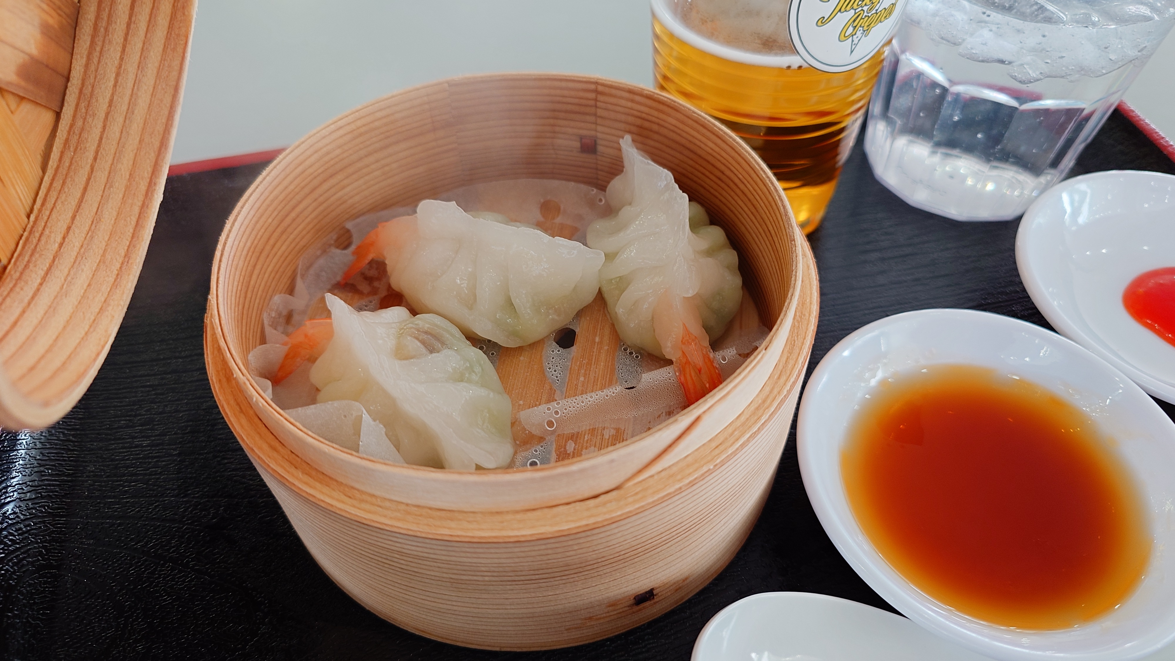 ビールと餃子。ぴったりです。スイートチリソースでも美味しいです。