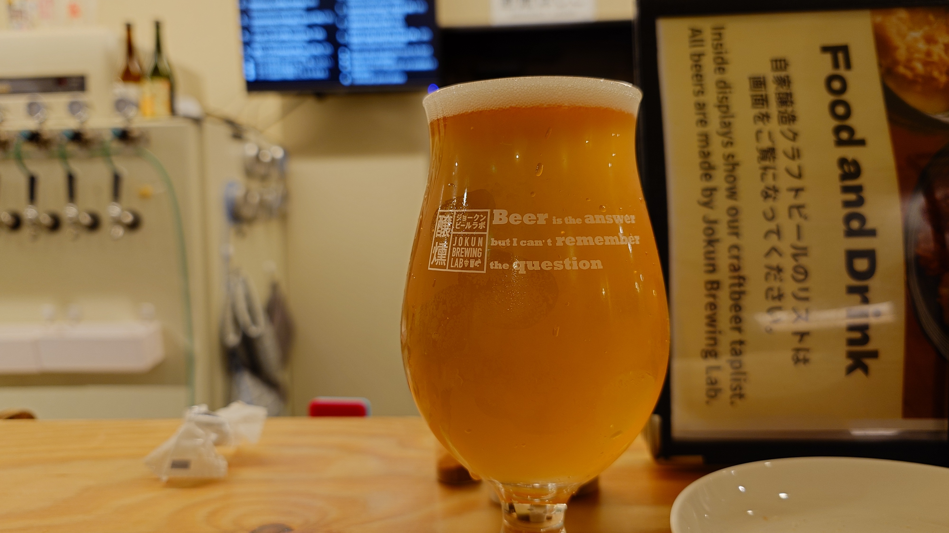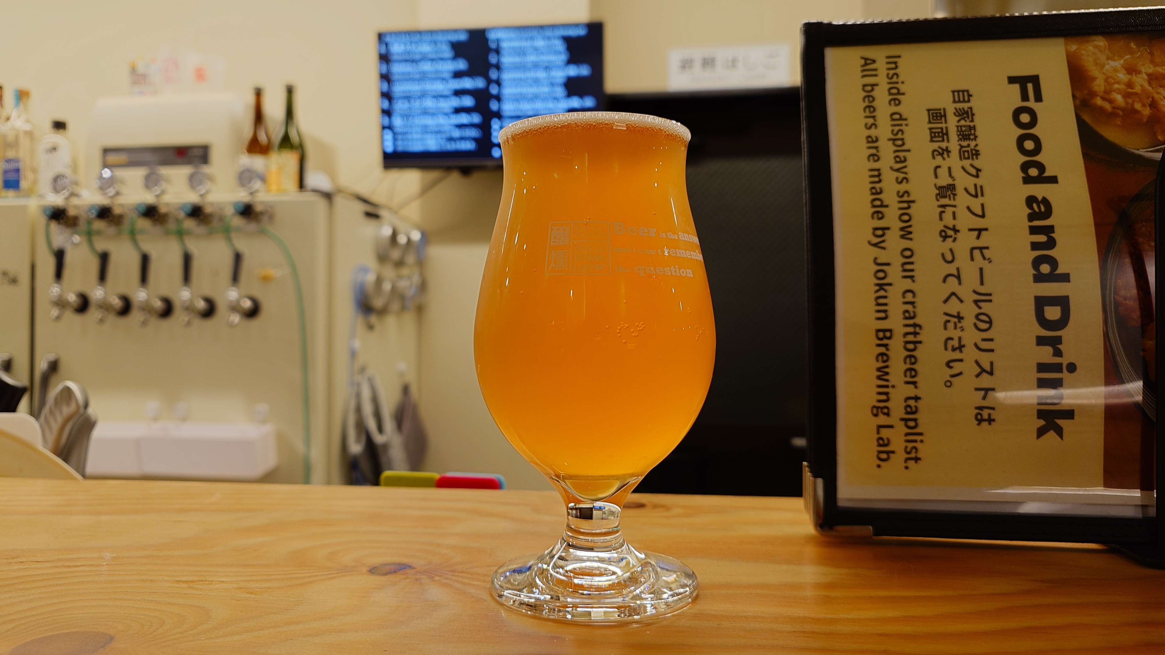 夜はジョークンへ。まずはお気に入りのルミナスオレンジ。オレンジピールの香りと苦味が爽やかな一杯。