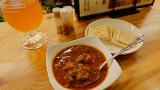 今夜はスペシャルカレーがあって、牛すじとポークビンダルー。ポークビンダルーの豚肉は、本来酢漬けを煮込むそうなのですが、やらかく美味しいです。