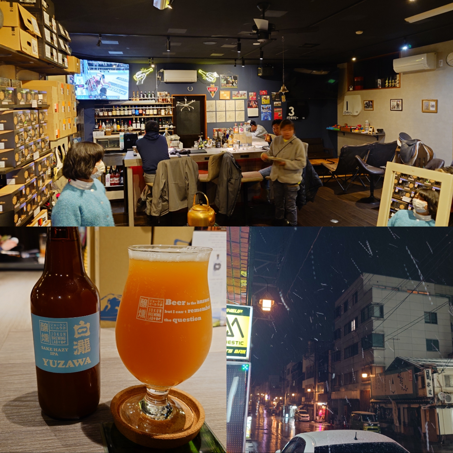 大晦日の挨拶まわり2軒目は、ジョークンの1階マジェスティックです。ここではジョークンでは飲めない、湯沢町限定のSAKE HAZY湯沢を生樽TAPで。横には白瀧ボトルを添えました。