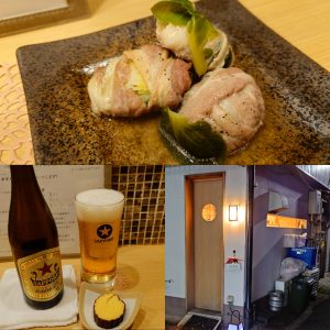 お通しの後は、芽キャベツの肉巻き煮。おー芽キャベツを巻きますか。当然美味しい。