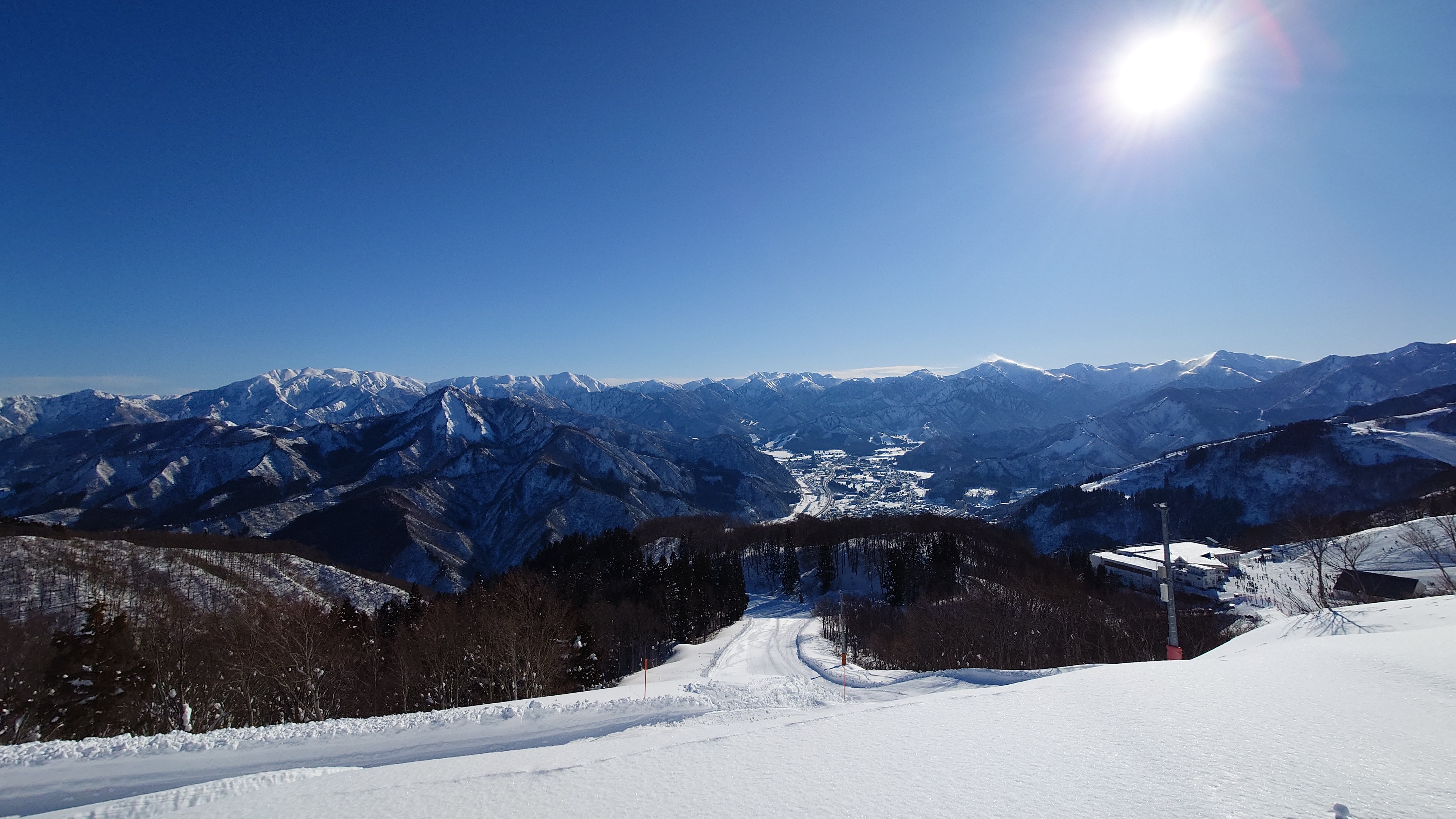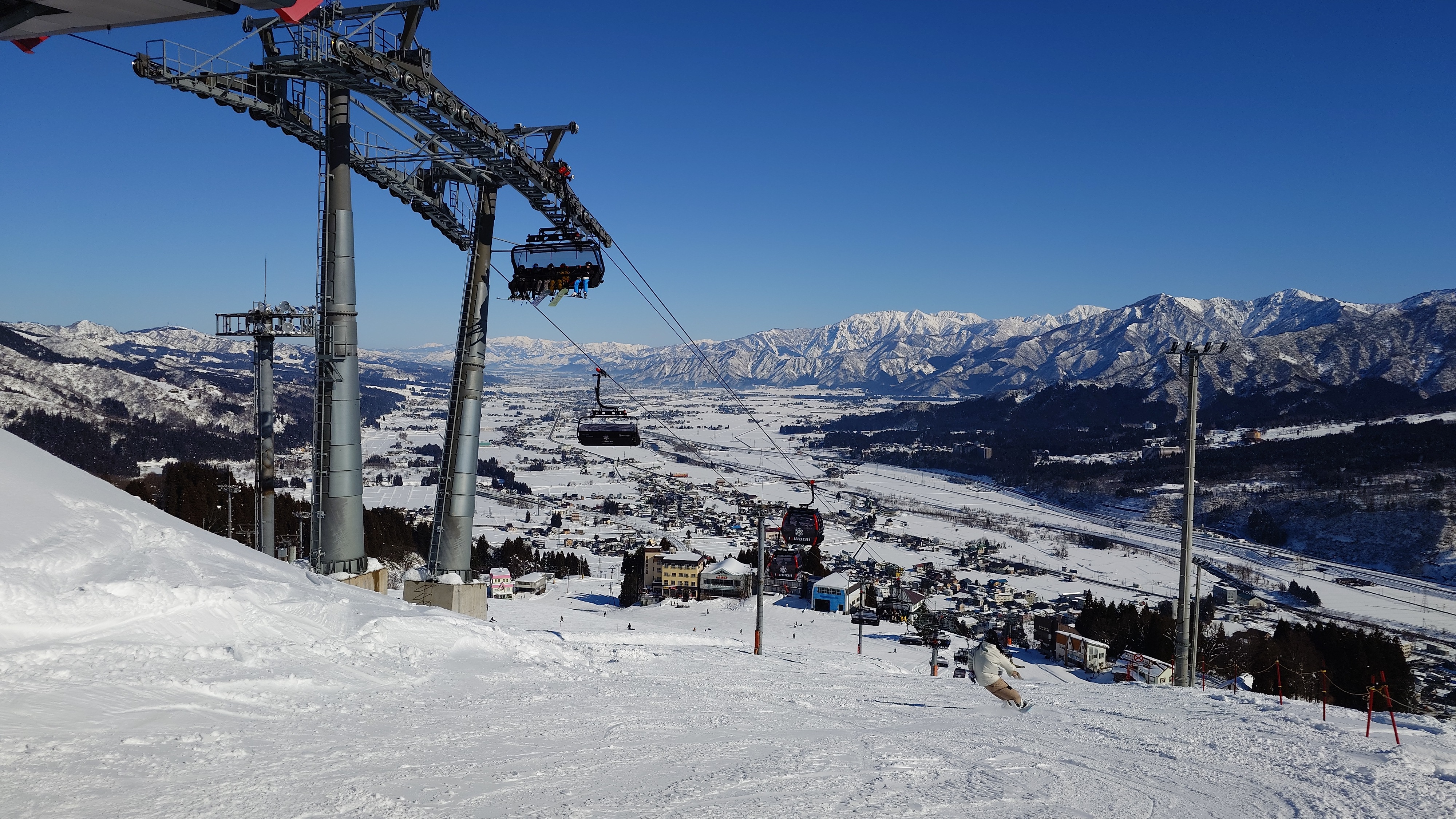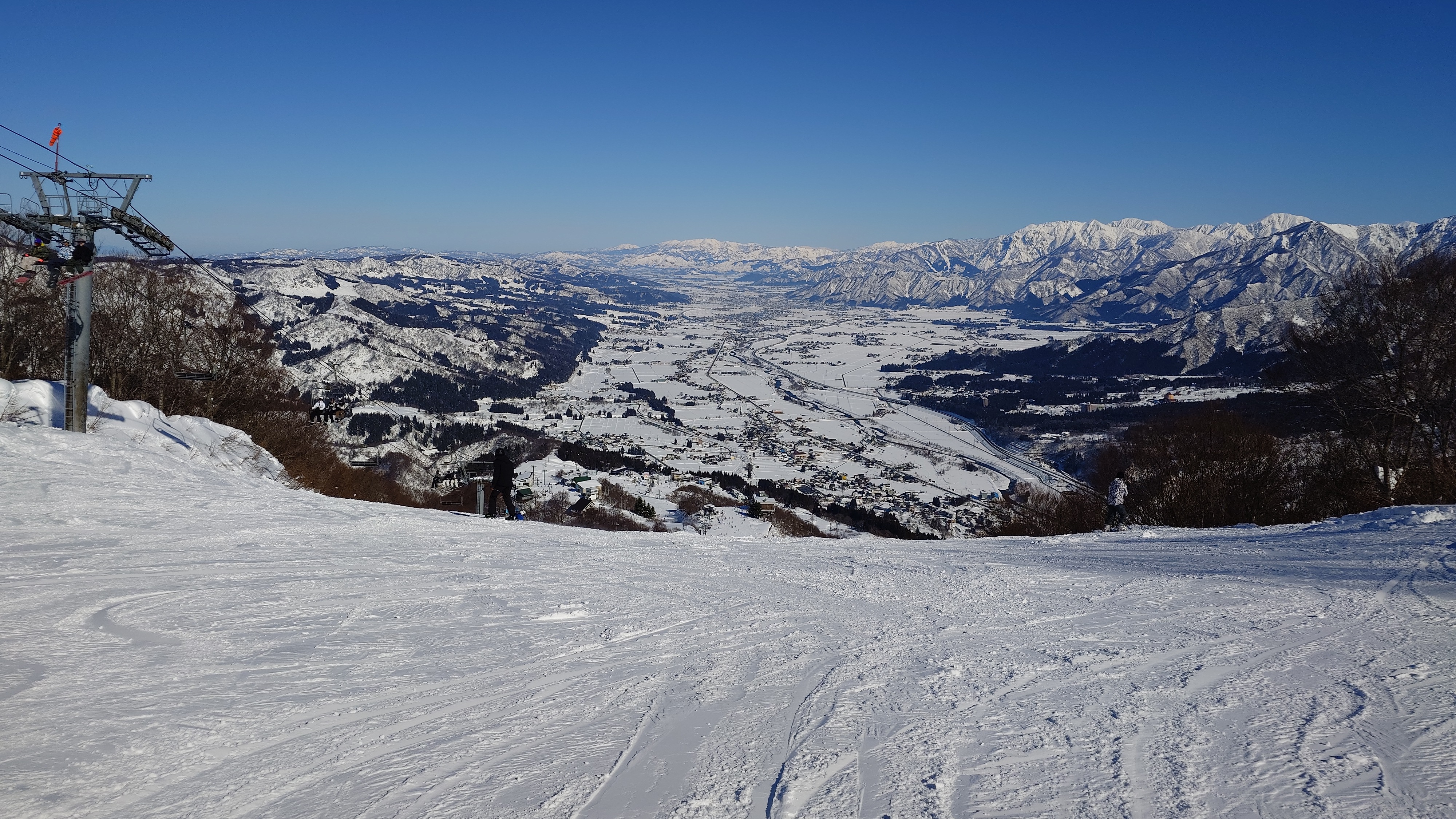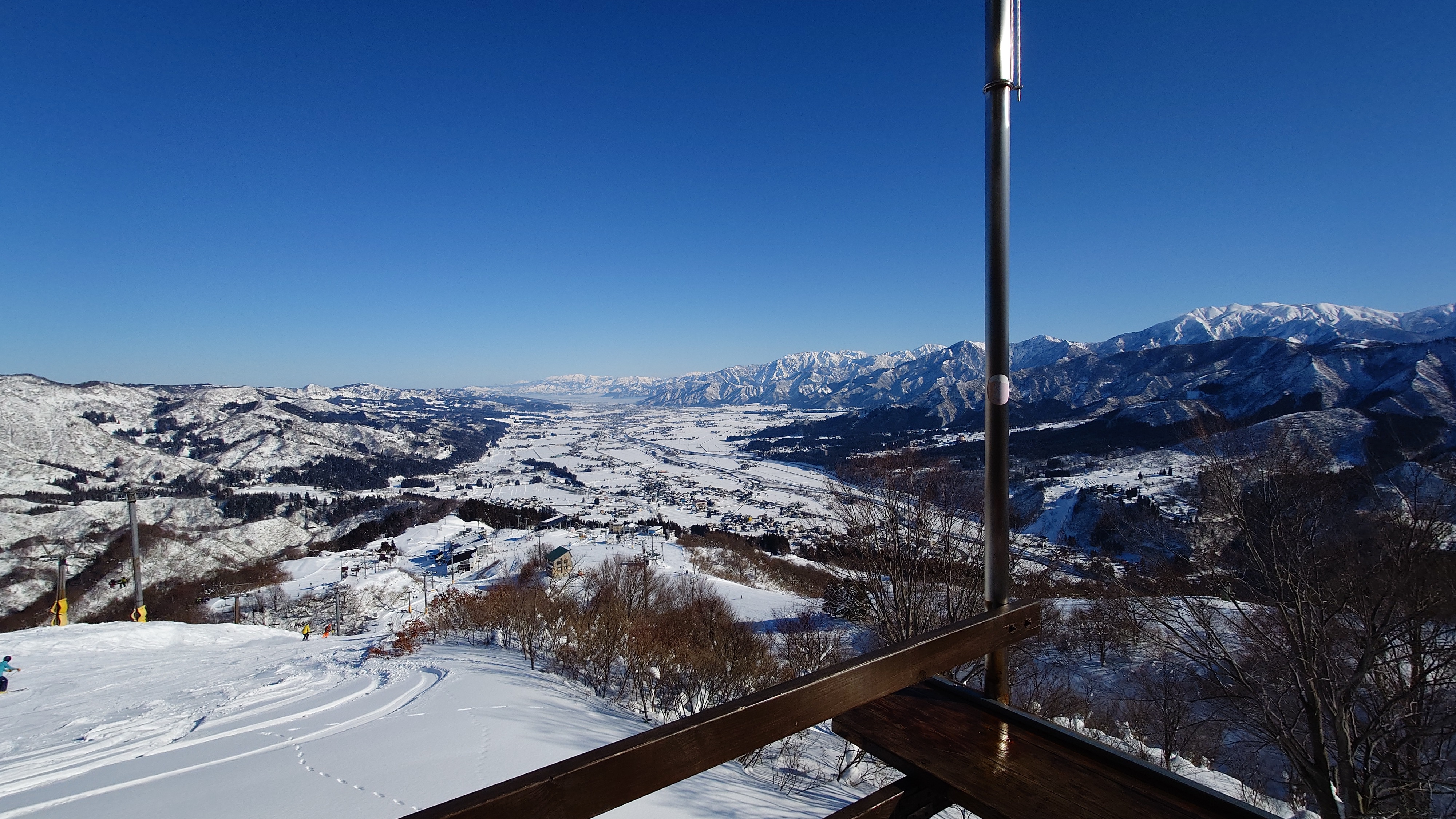 リフト山頂駅から眺める湯沢は絶景ですが、まだファルコンはオープンしません。
