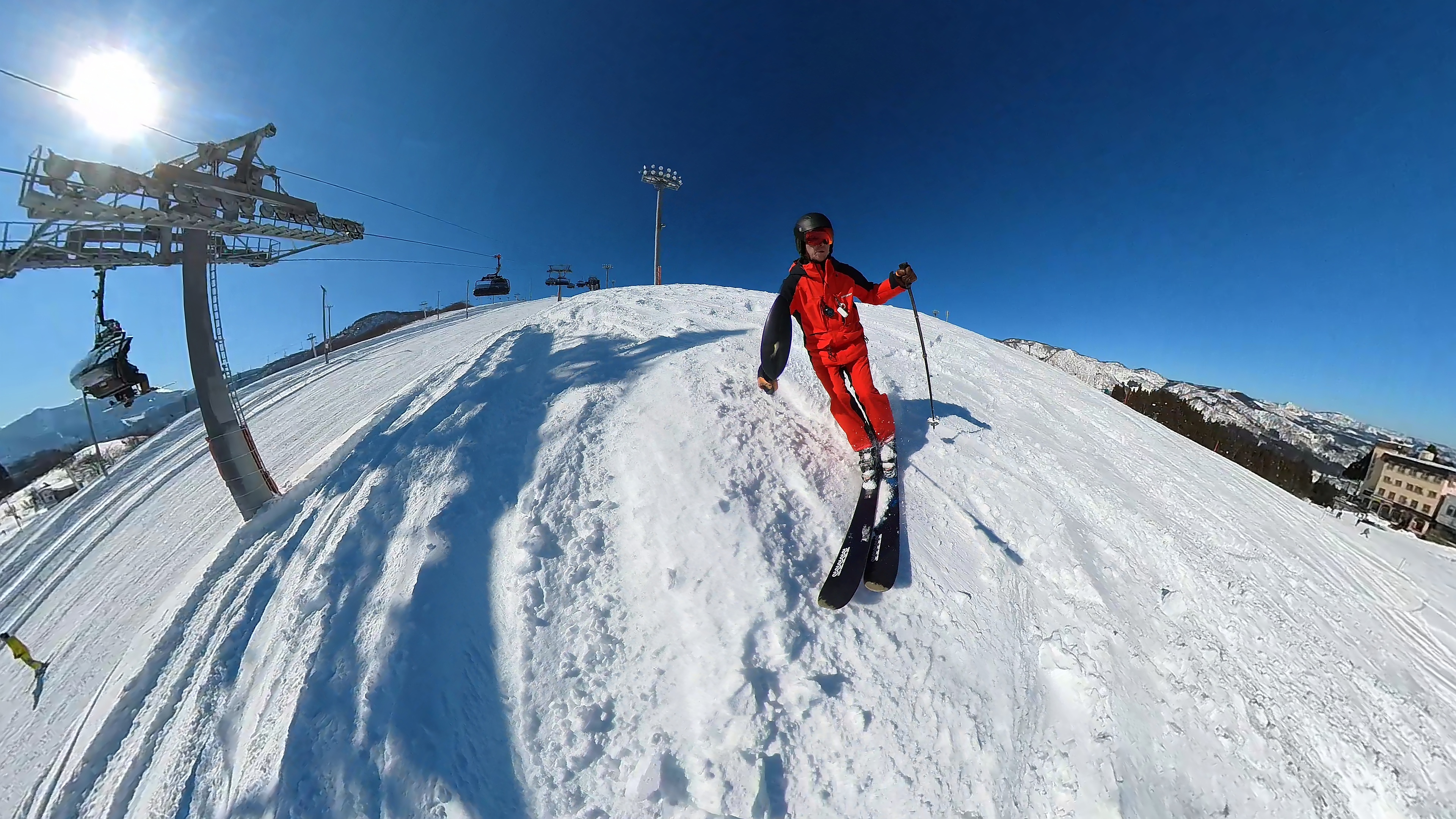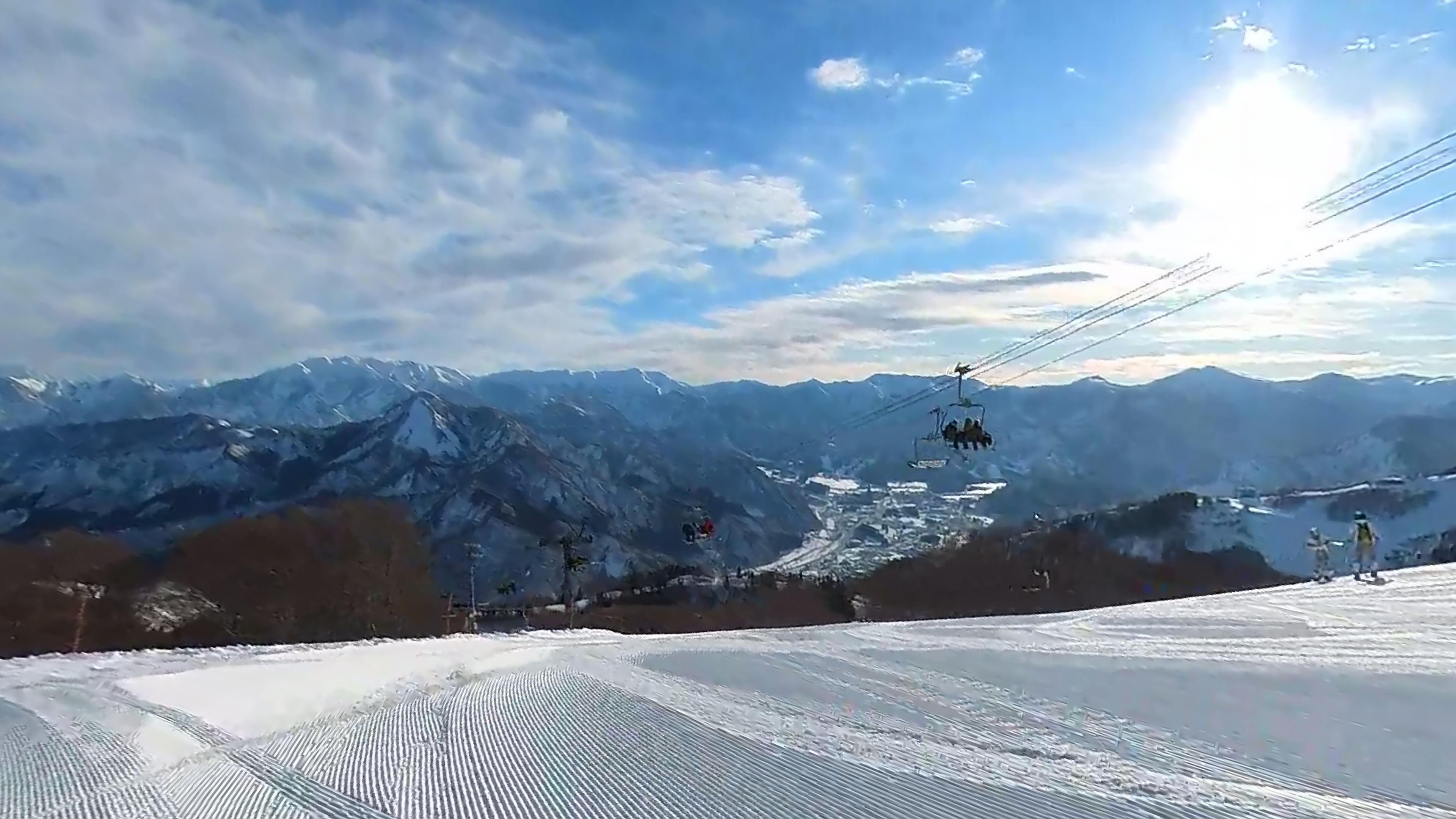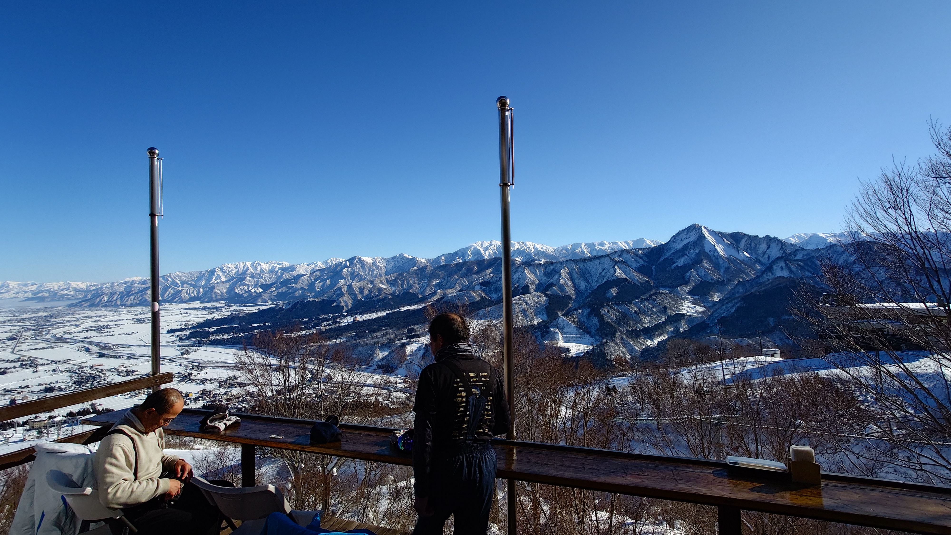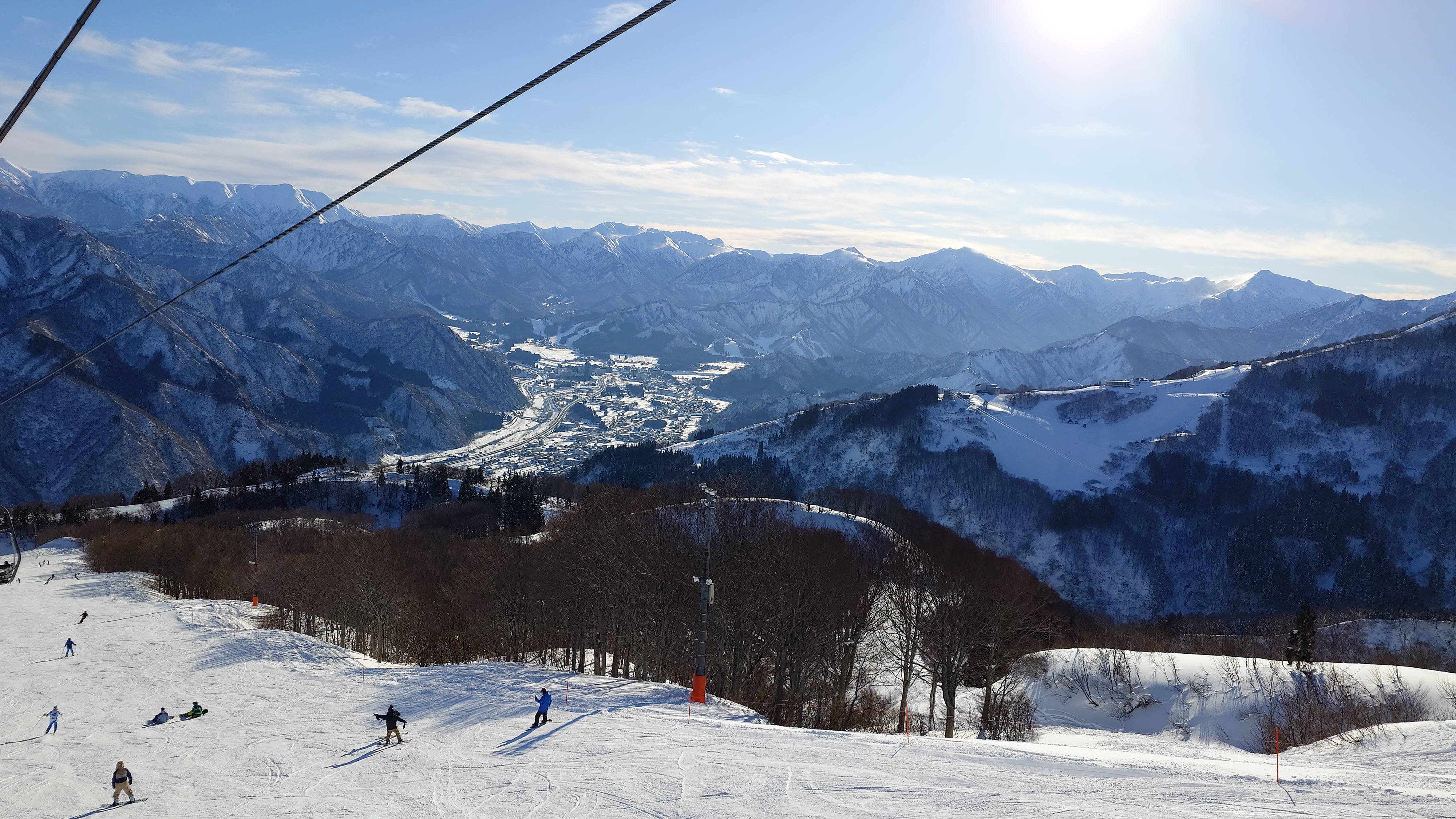 リフト山頂駅から眺める湯沢は絶景ですが、まだファルコンはオープンしません。
