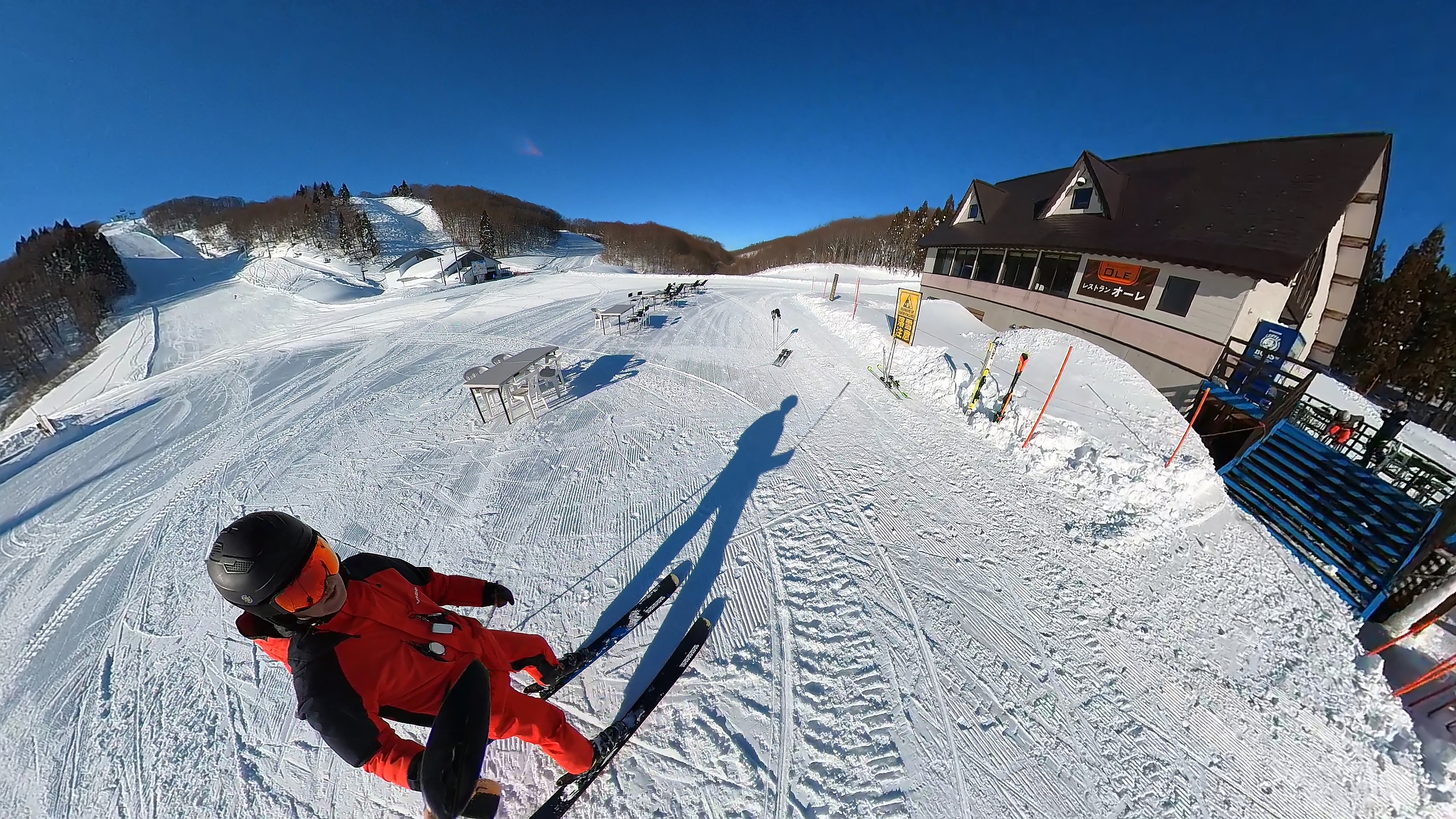 10時前。石打丸山スキー場に入りました。まっ、朝飯食べようかと、中腹エリアに下ります。