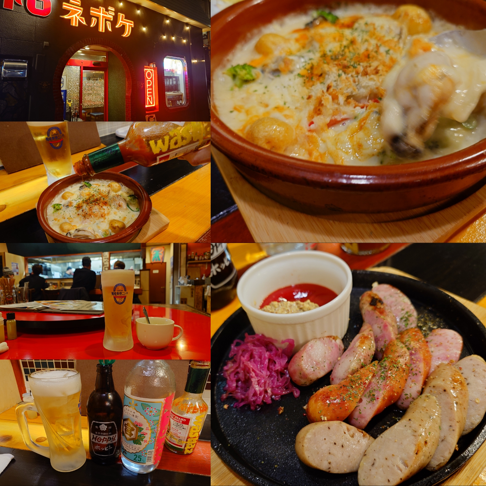 先ずはカキと子ジャガなどのグラタン。プリプリカキがベシャメルソースに絡んで旨い。そして、ソーセージ。ビールにもホッピーでもピッタリ。お腹いっぱい。