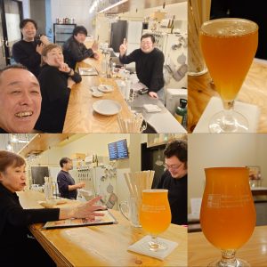 ルミナスオレンジがつながってました。オレンジピールの香りが秀逸。酒トリプル、ルミナス!馬車馬ラガーと進みますが、鼎のママ登場。今夜は樋口さん兄もいるので記念撮影。