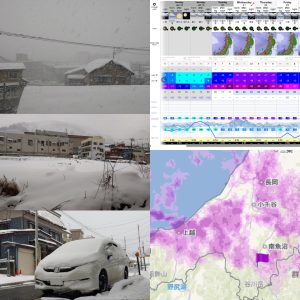 朝起きたら小雪で、路上駐車の車に15cmほどの積雪だったのですが、9時前から勢いが上がってきました。明日朝までの最大降雪100cm。さてどこまで?