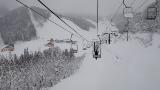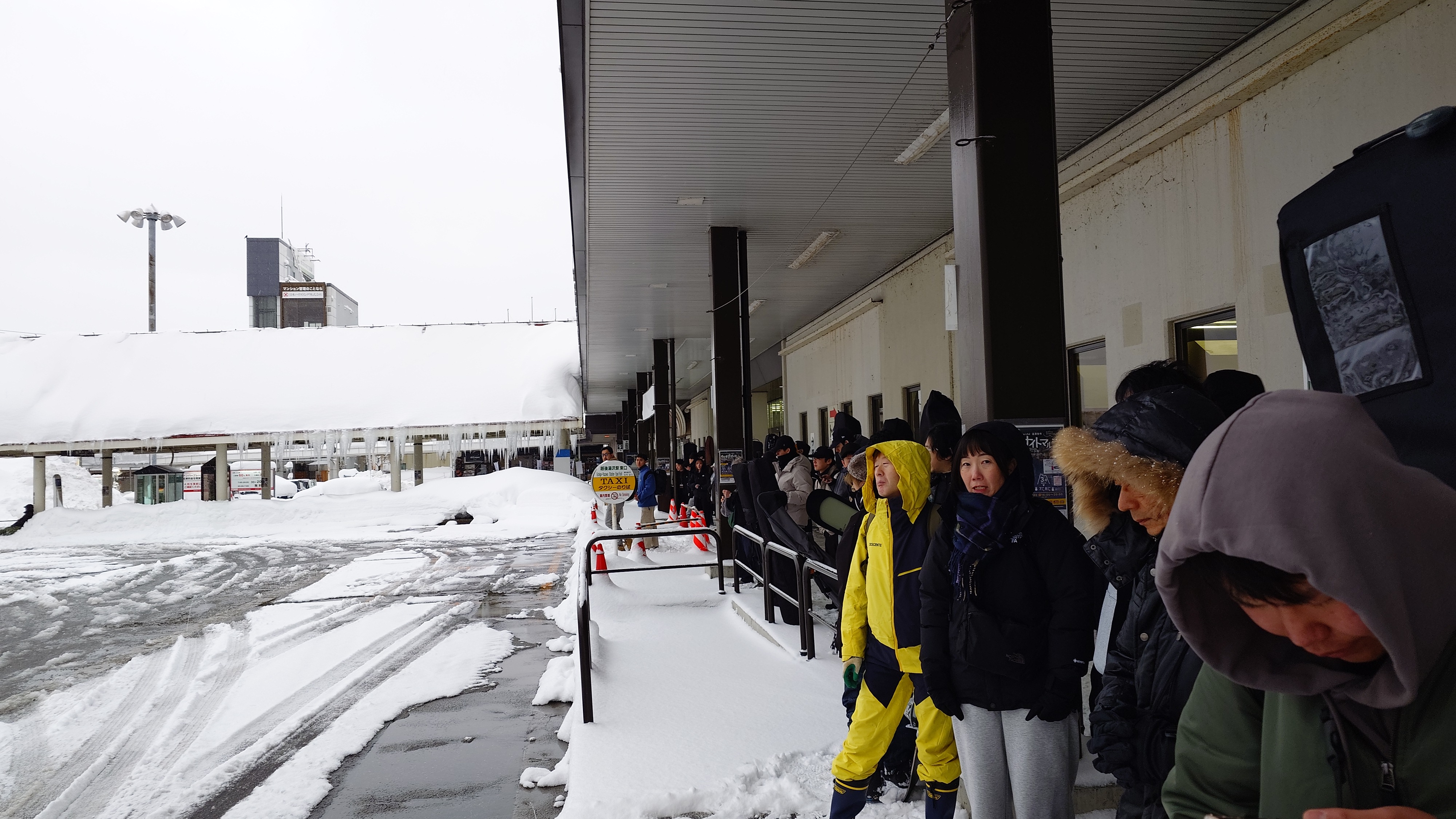 8時20分くらいのAリフト乗場で、今Bリフトのみですって。えーー。C・Eリフト大雪で遅延? そこまででは無い感じですが。トラブル?