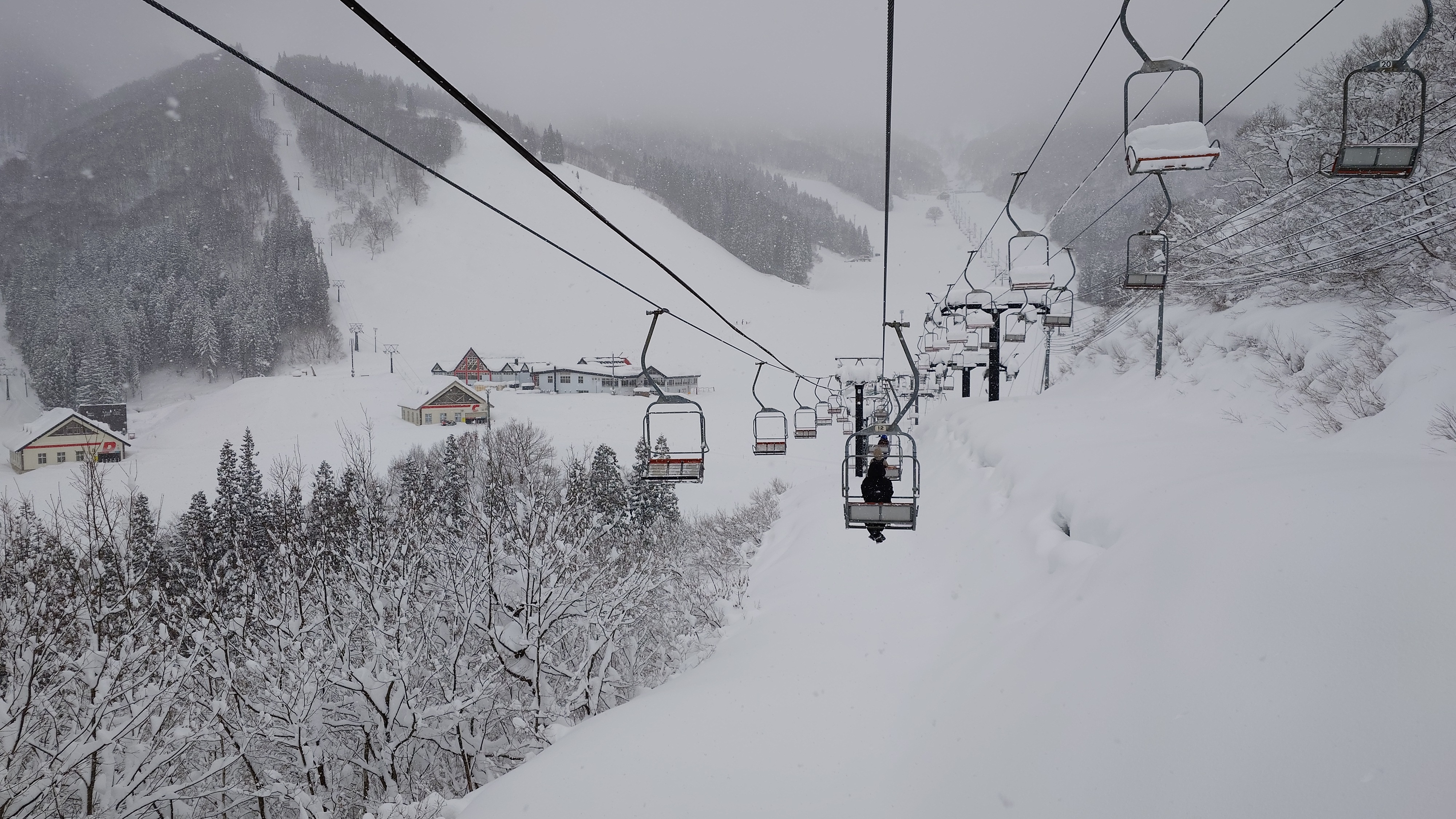 2本目のスーパーオリオンからそのまま下山コースまでぶっ飛ばして、10時10分グランドベースに到着。帰宅後には会議、間に合った。目の前にパウダーが残っているのに惜しい。スクールも始まる時間なので、Aリフトも行列。