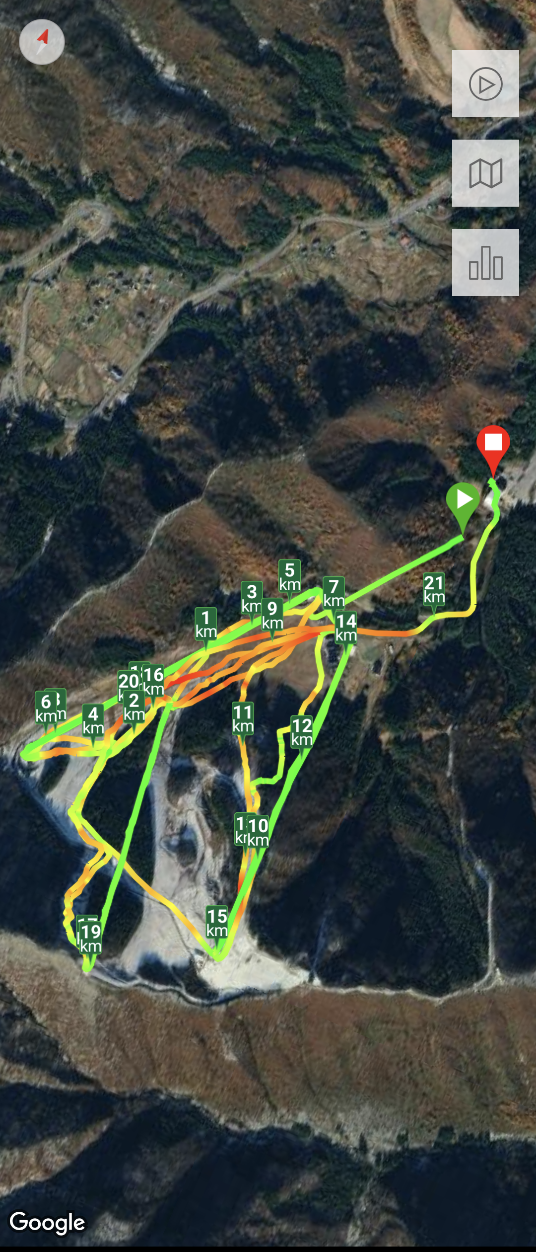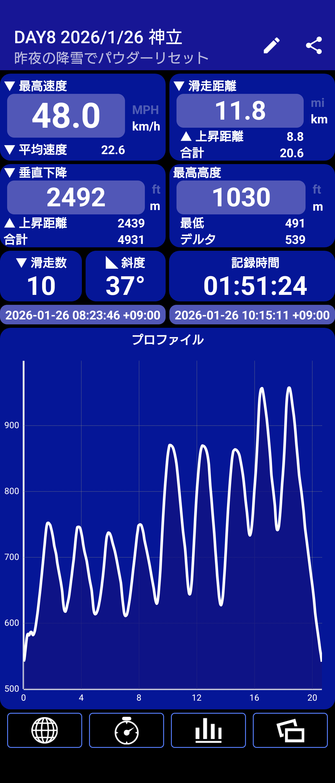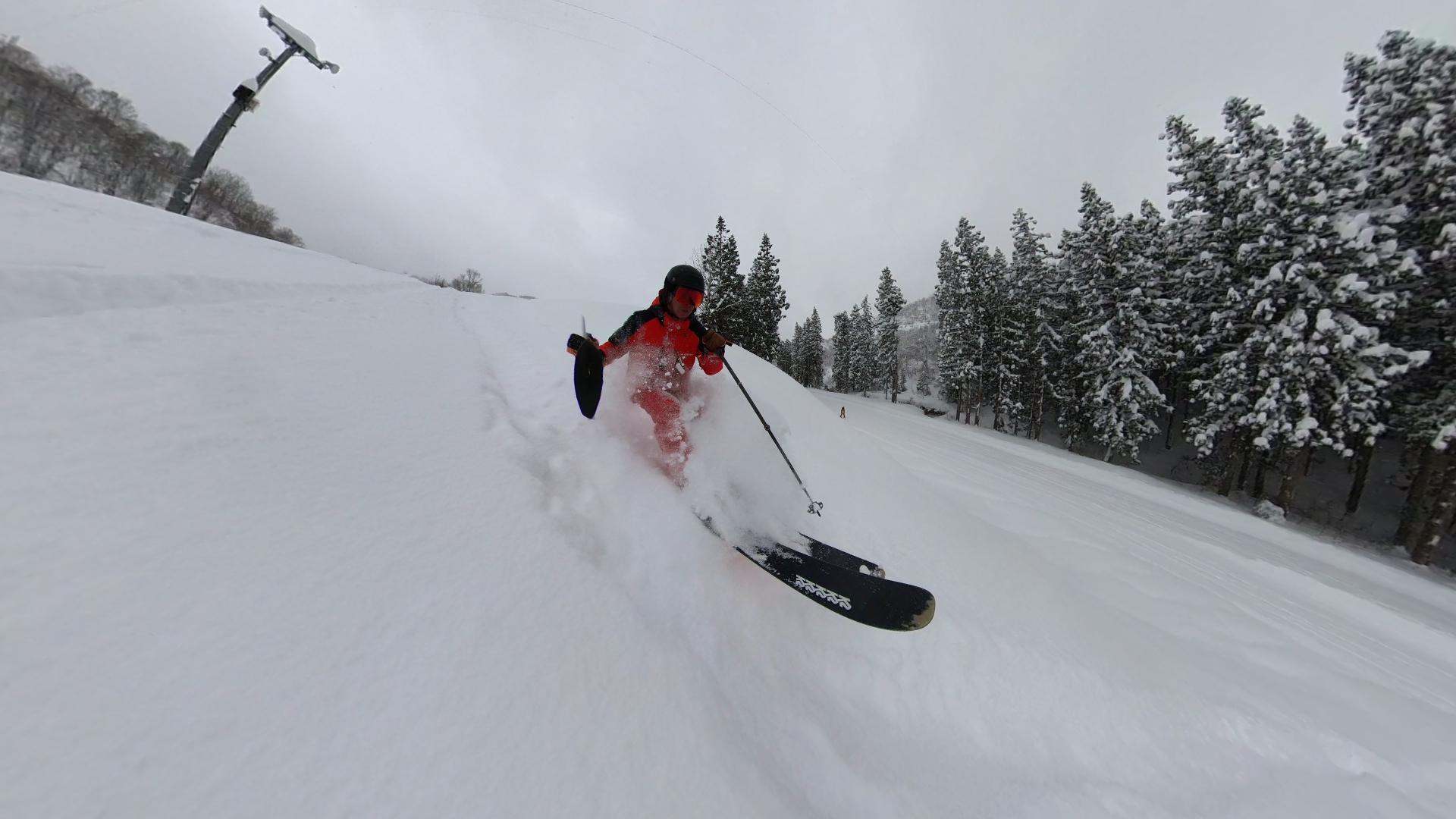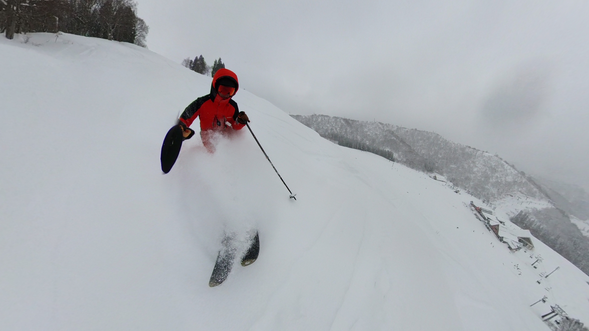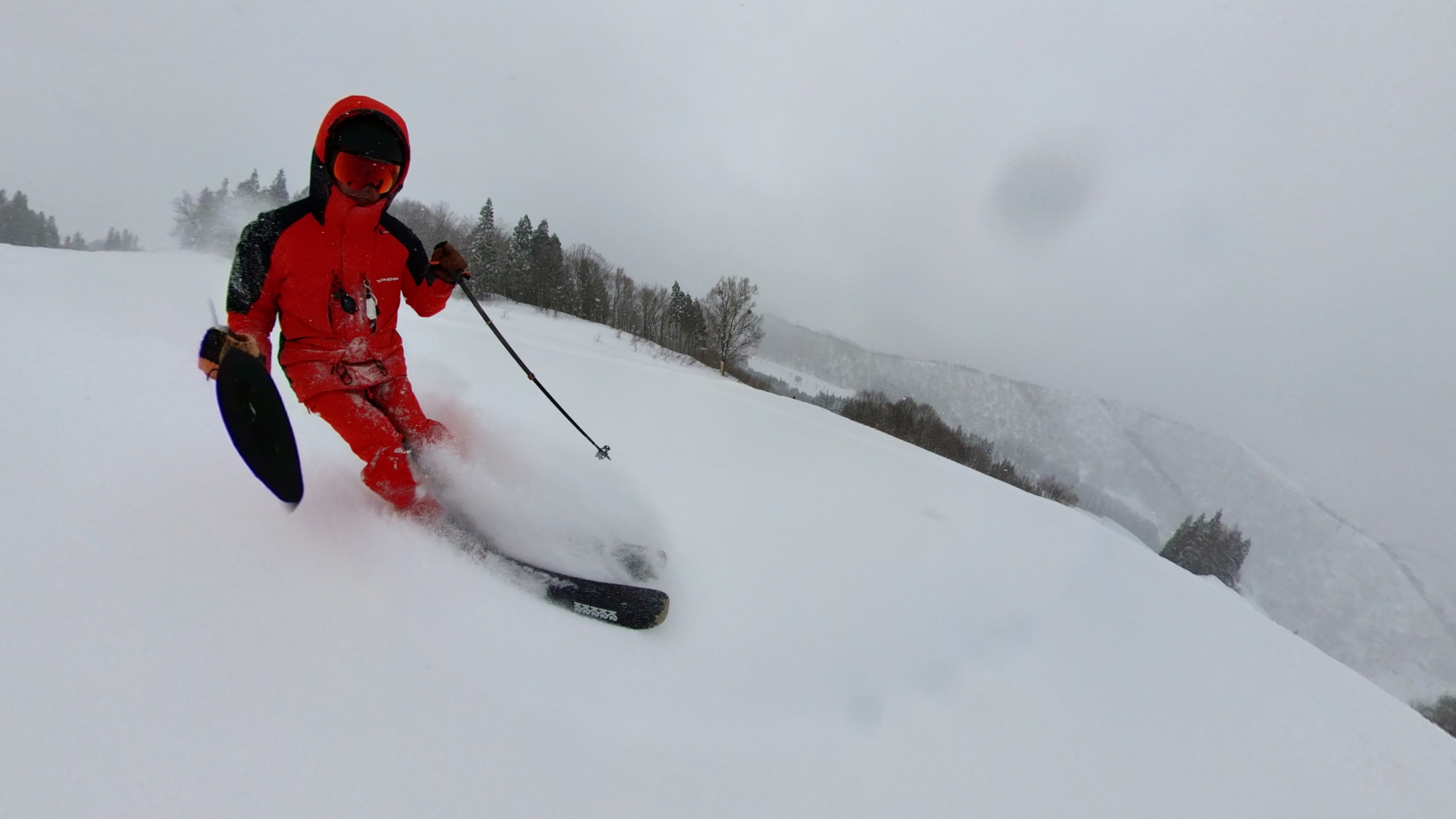 朝飯前のパウダー食べてもお腹いっぱいとまではいきませんが、1時間半は滑れてよかった。山頂Eリフトが開いた結果、獲得標高2,492mで10本でした。