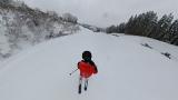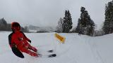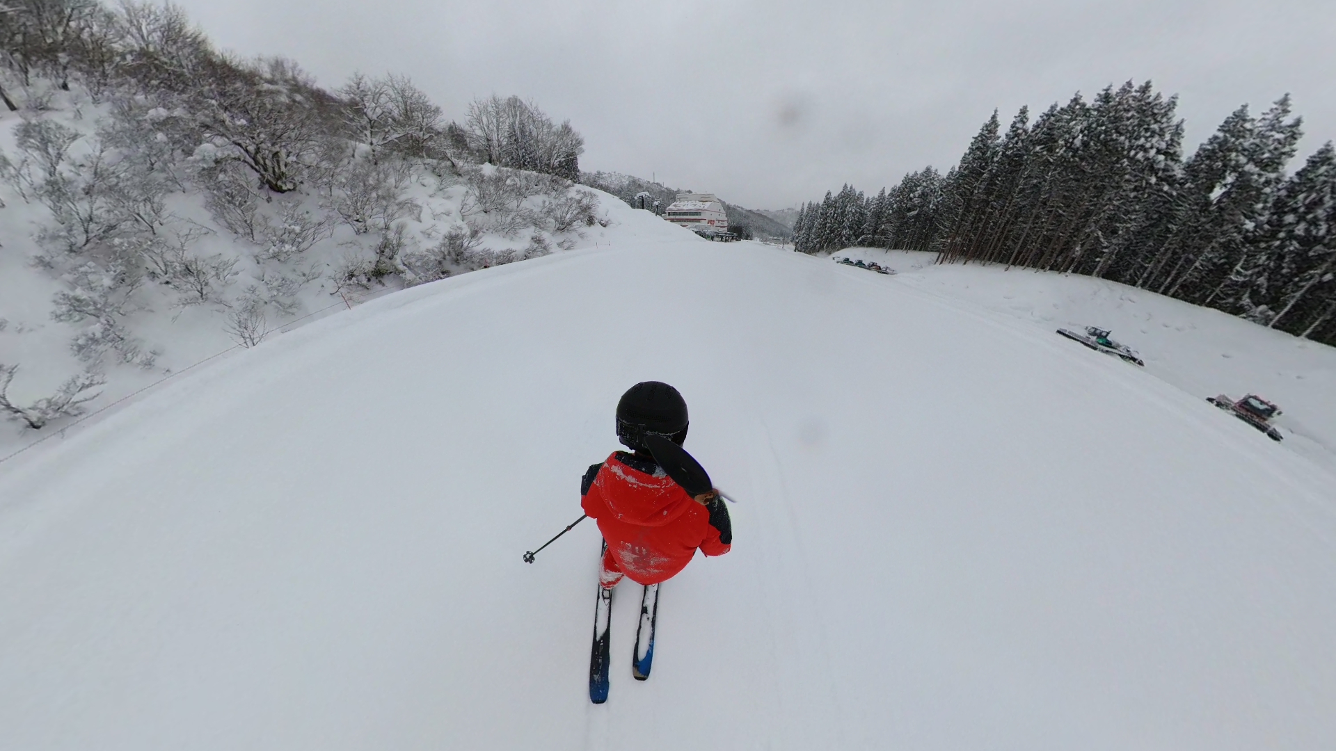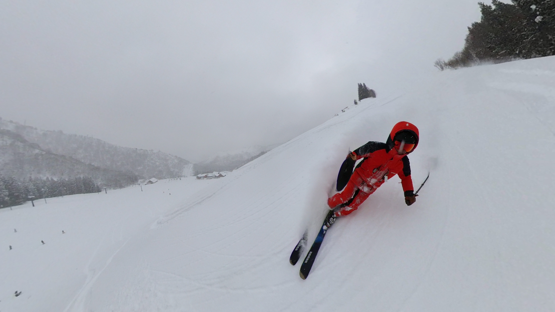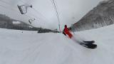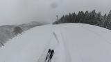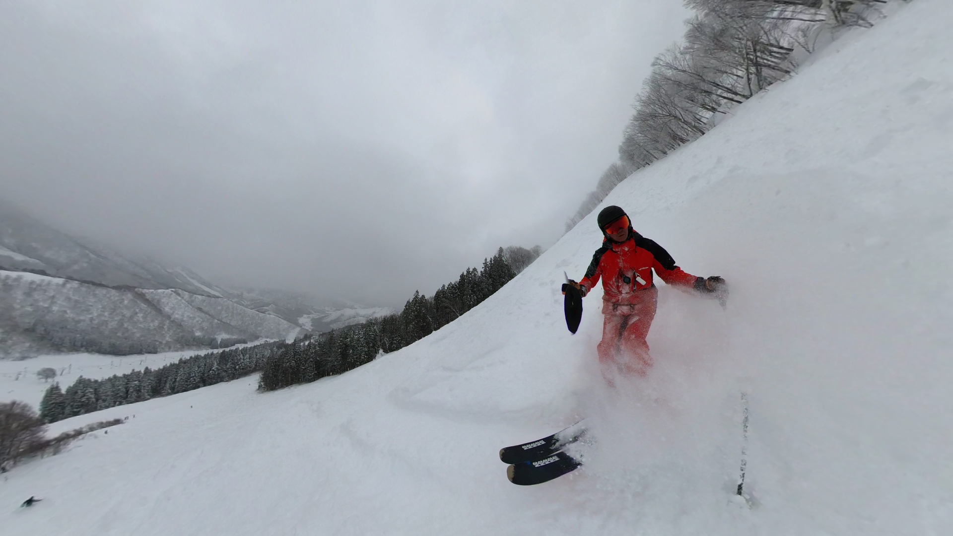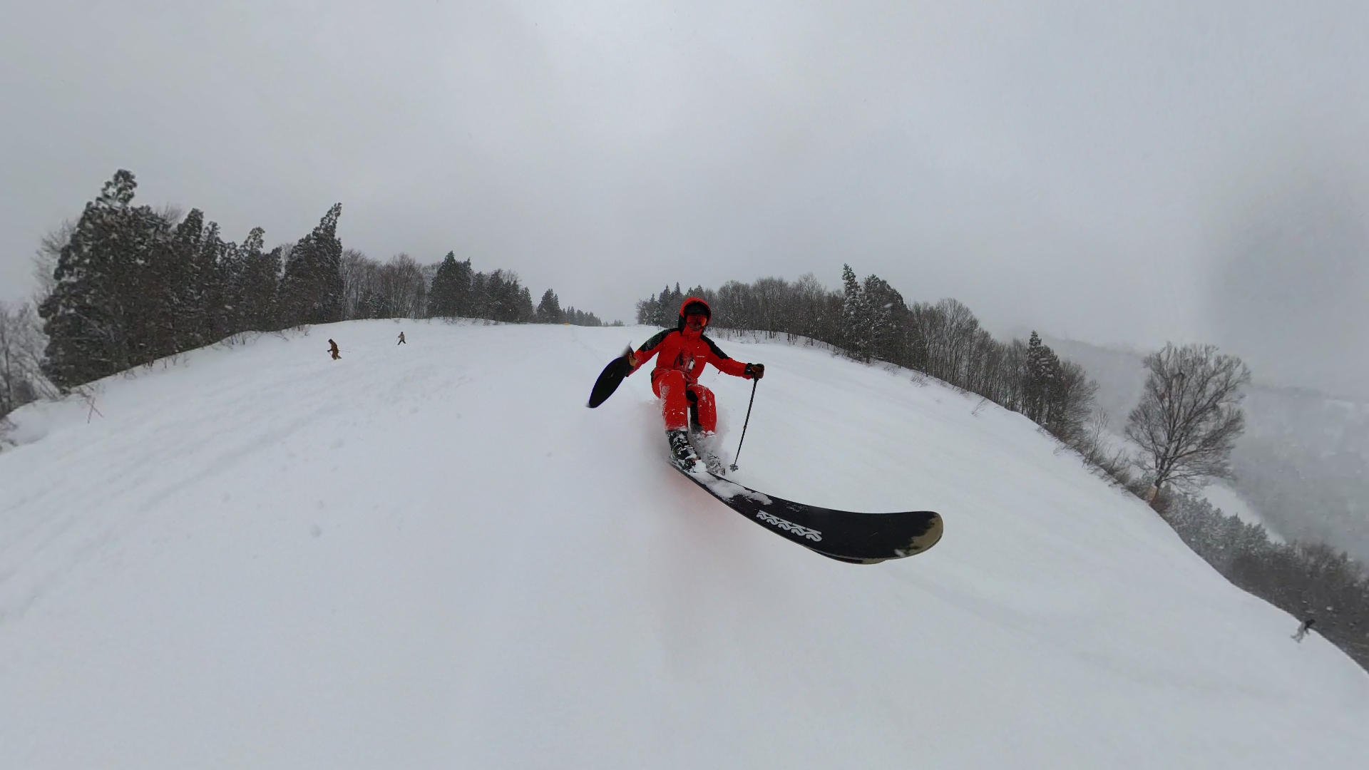 かぐら5ロマ付近に比べると、回すのに力がいる雪の重さではありますが、それでも軽い。段々畑の段差が不意打ちするので飛び跳ねちゃいます。
