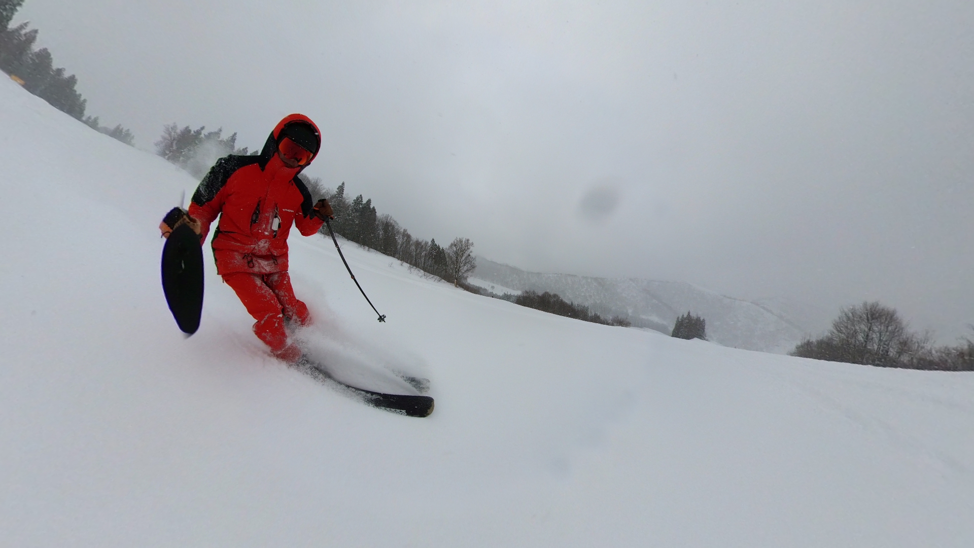 もちろん1本目はヘラクレス狙いです。既にトラックがいくつも入っていますが、未滑走部分を見つけてはそこへ。