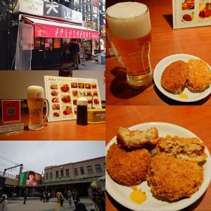 新幹線までまだ時間があるので肉の大山です。やみつきメンチにやみつきコロッケ。そして、スーパードライ。