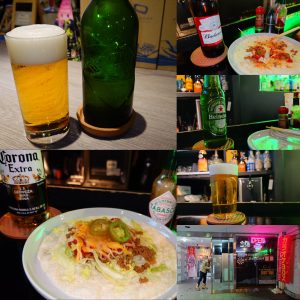 そのあと、cab9でタコス。沖縄系タコスです。このひき肉シーズニングがうまい。タコスならライトなビール。コロナ、バド、最後は生ビール。