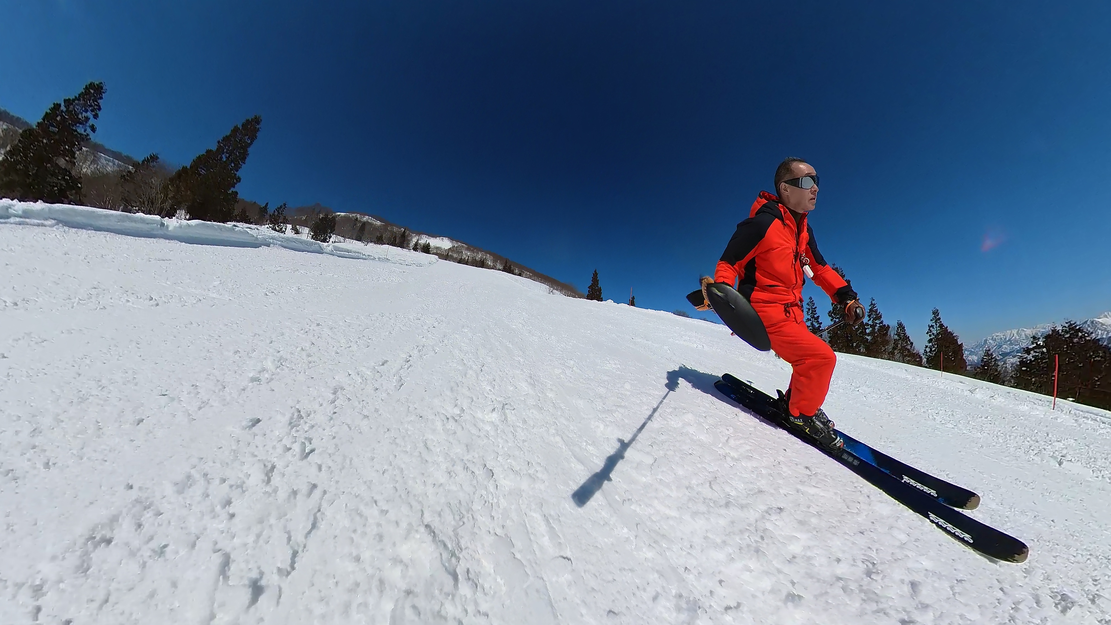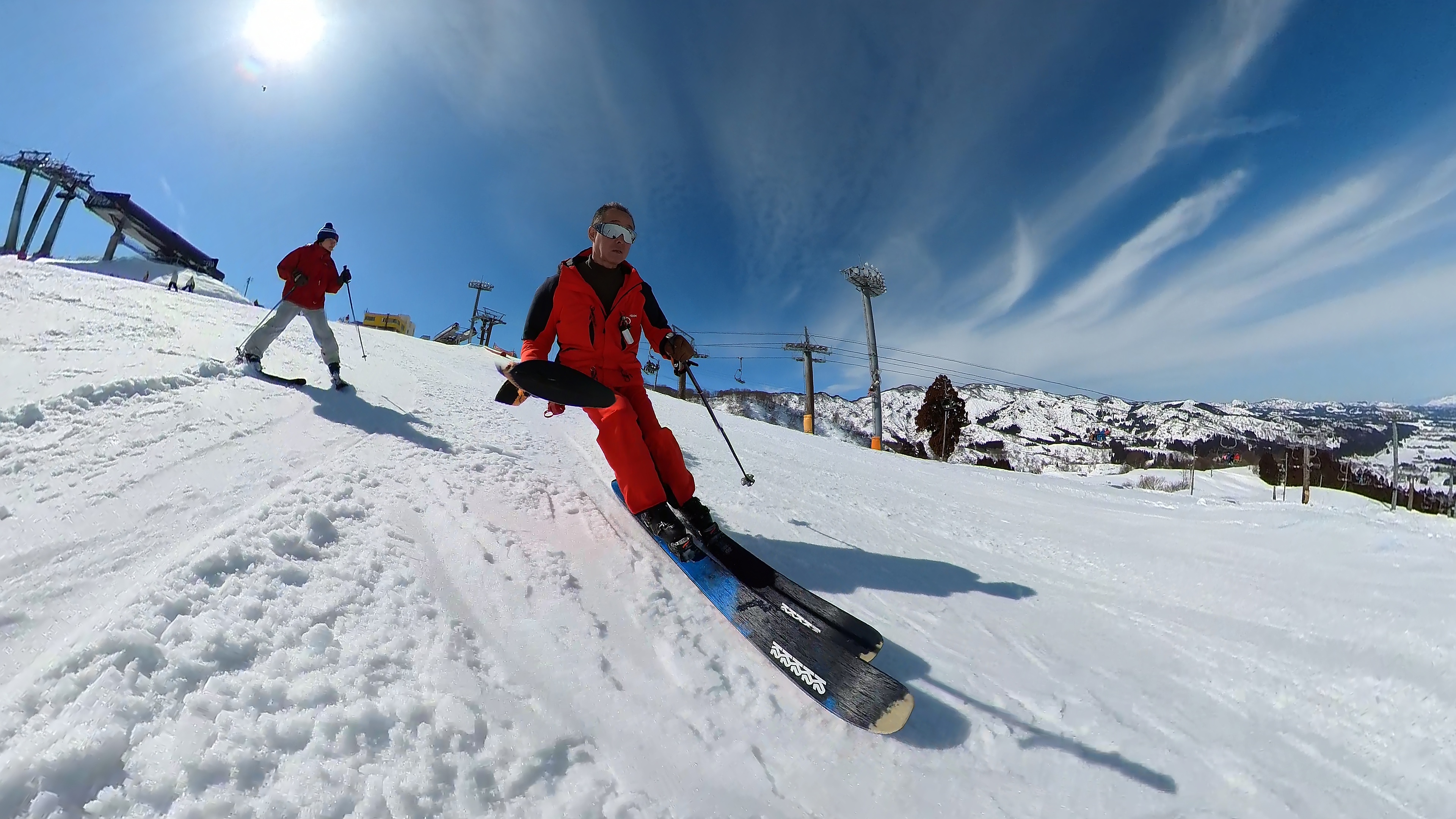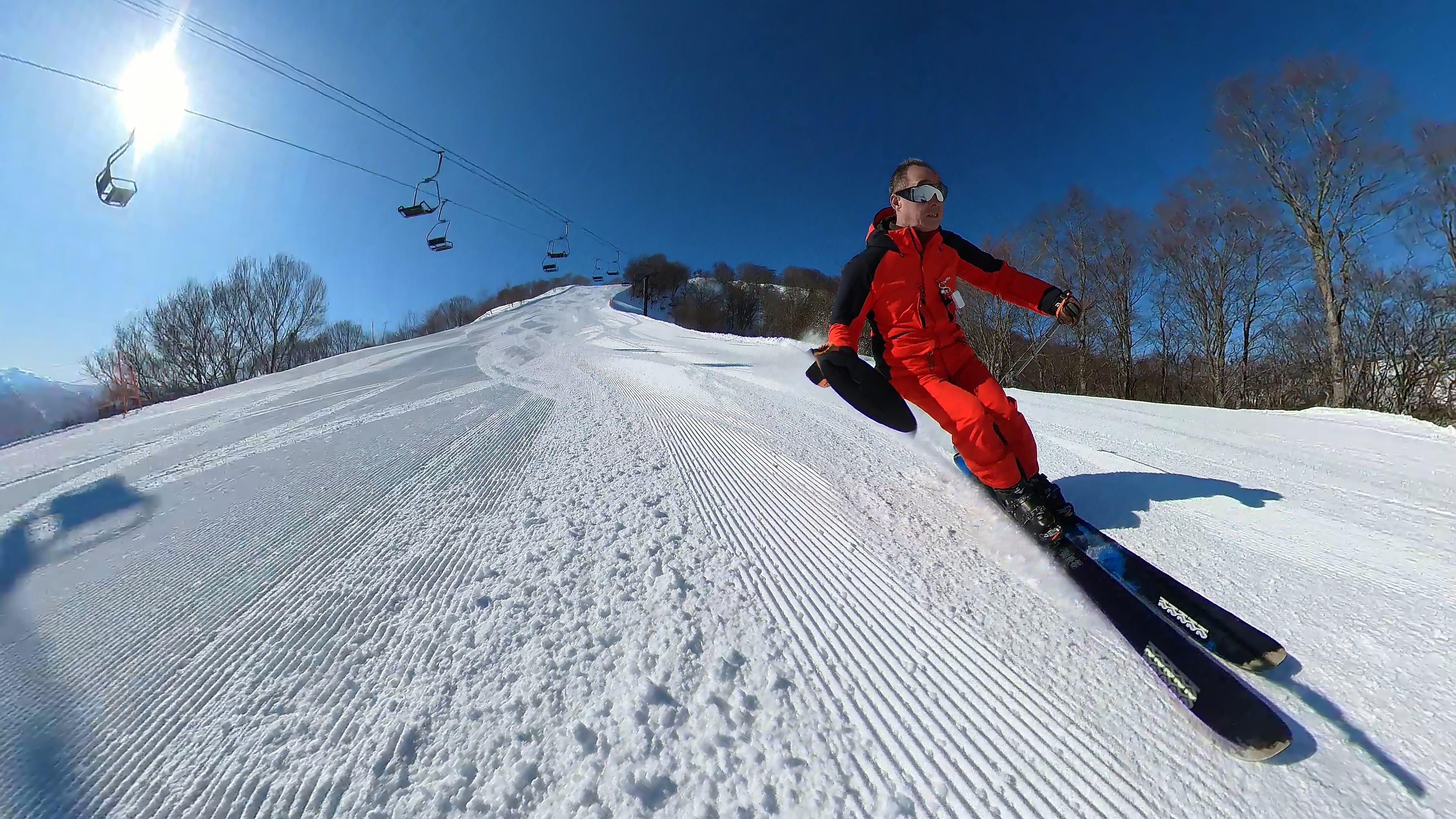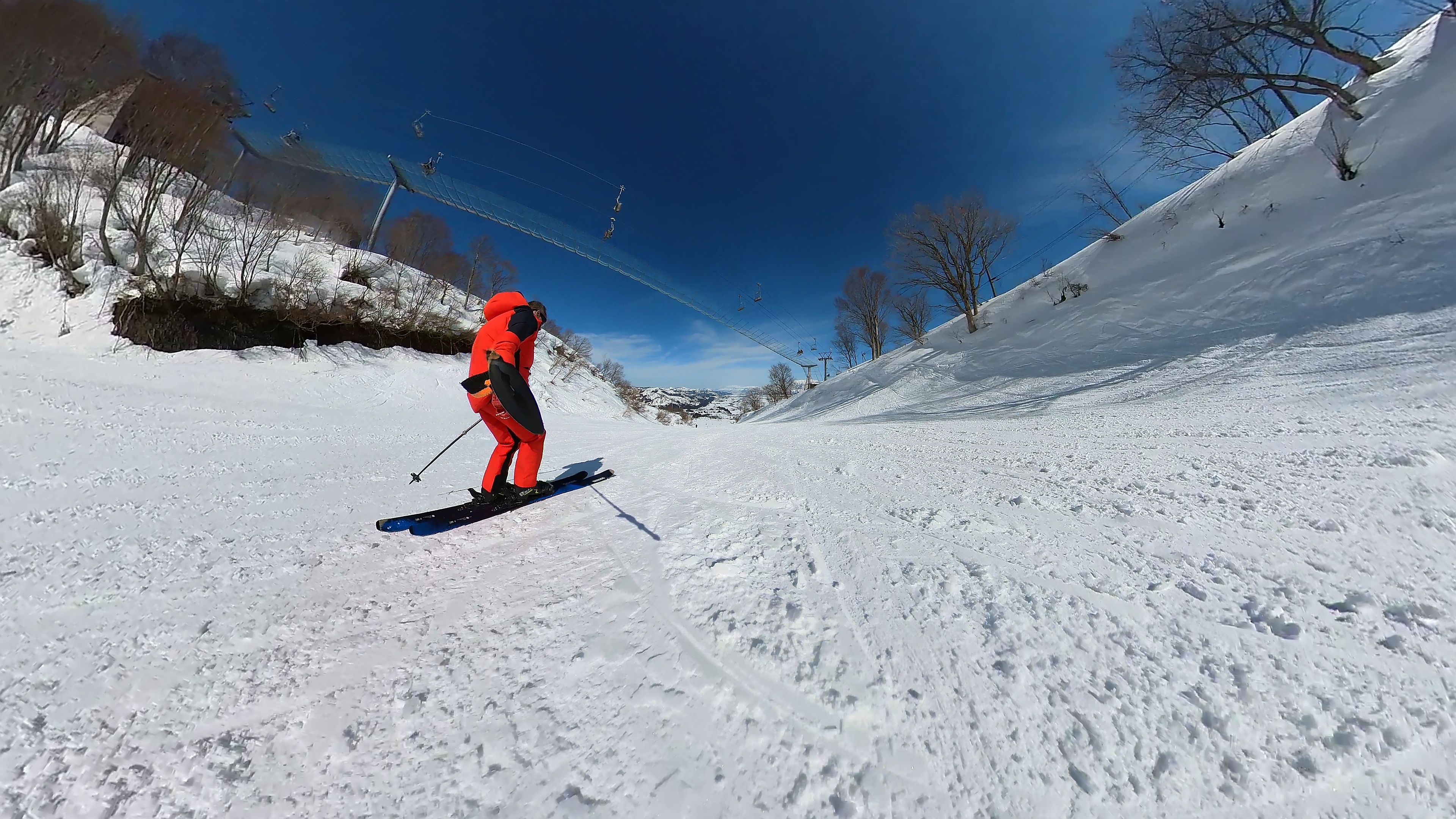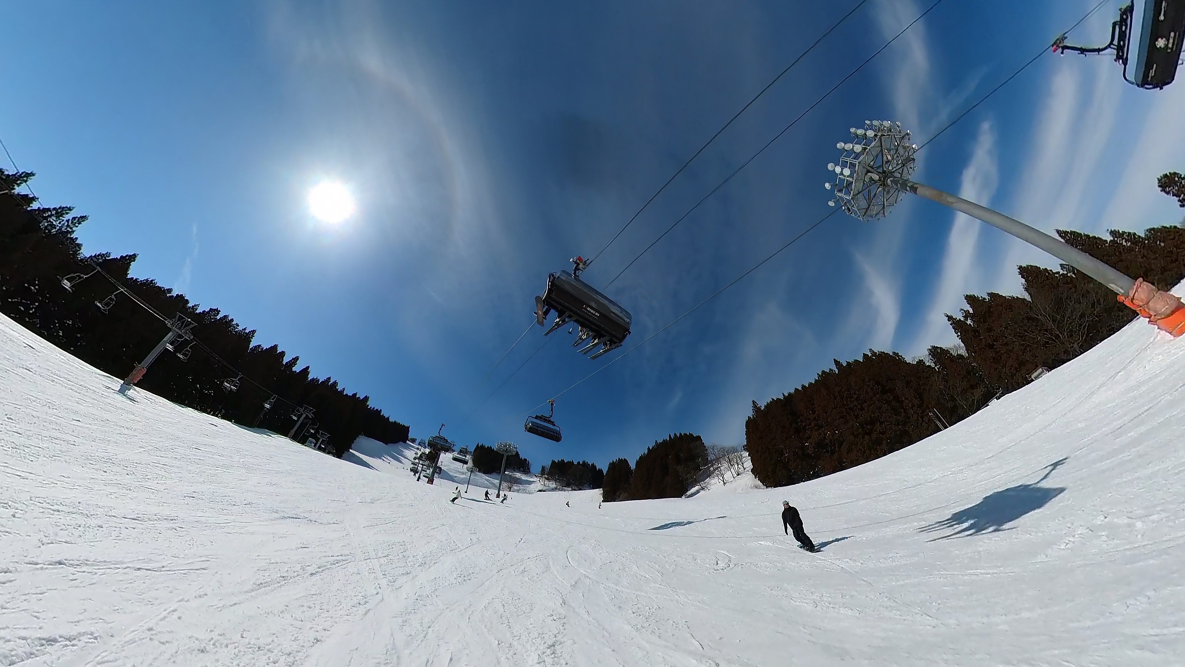 山頂からキスゲコース突っ切って高原エクスプレス。気温は5℃超え、でもまだバーンは硬いです。